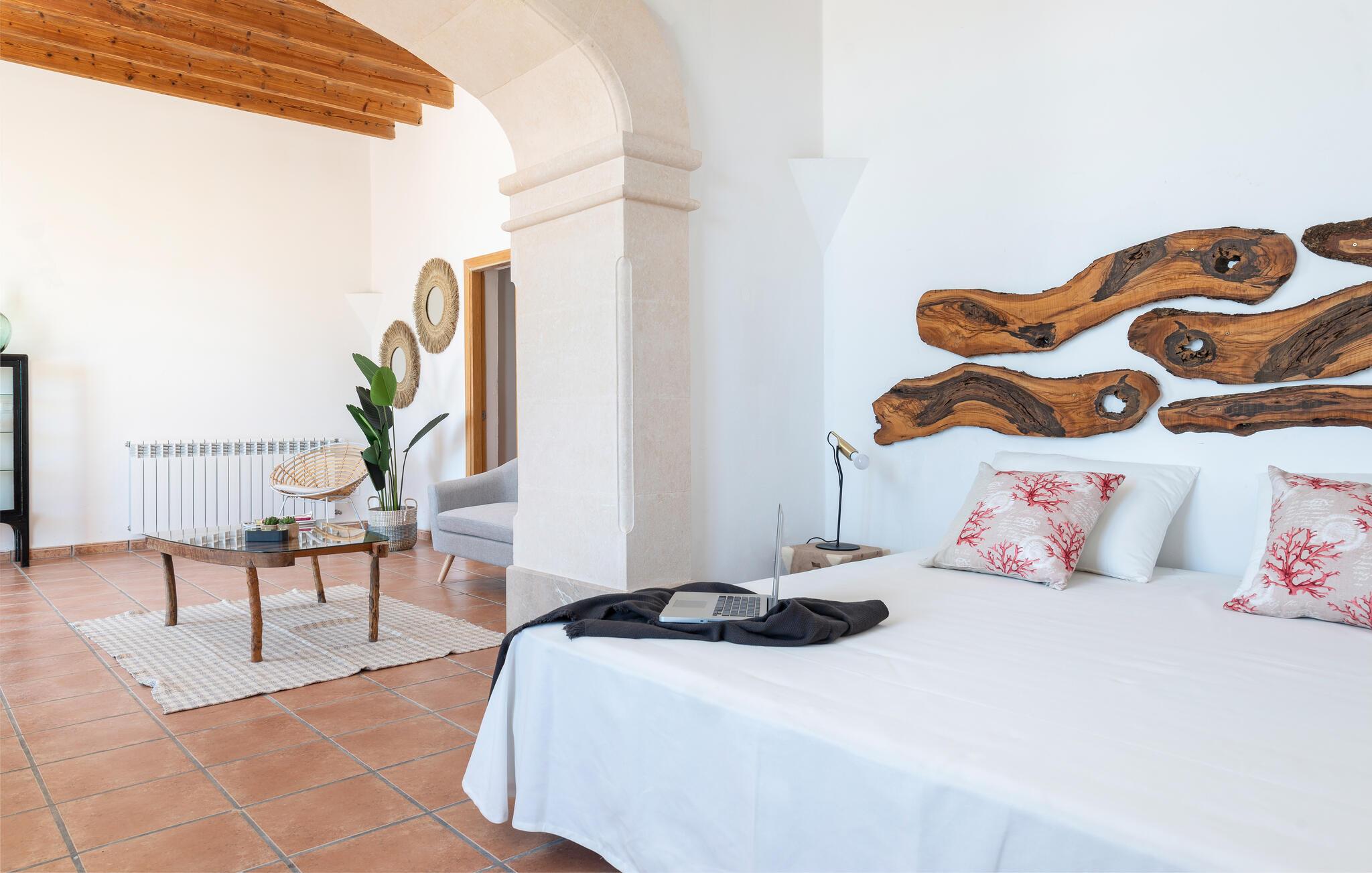 Denne familievenlige mallorcanske finca, ikke langt fra de turkisblå badebugter på sydøstkysten, forkæler jer med en vellykket blanding af traditionelle elementer og moderne komfort. Pisk lækre middelhavsretter op i det velindrettede landhuskøkken og find jer godt til rette i den hyggelige stue med pejs om aftenen.