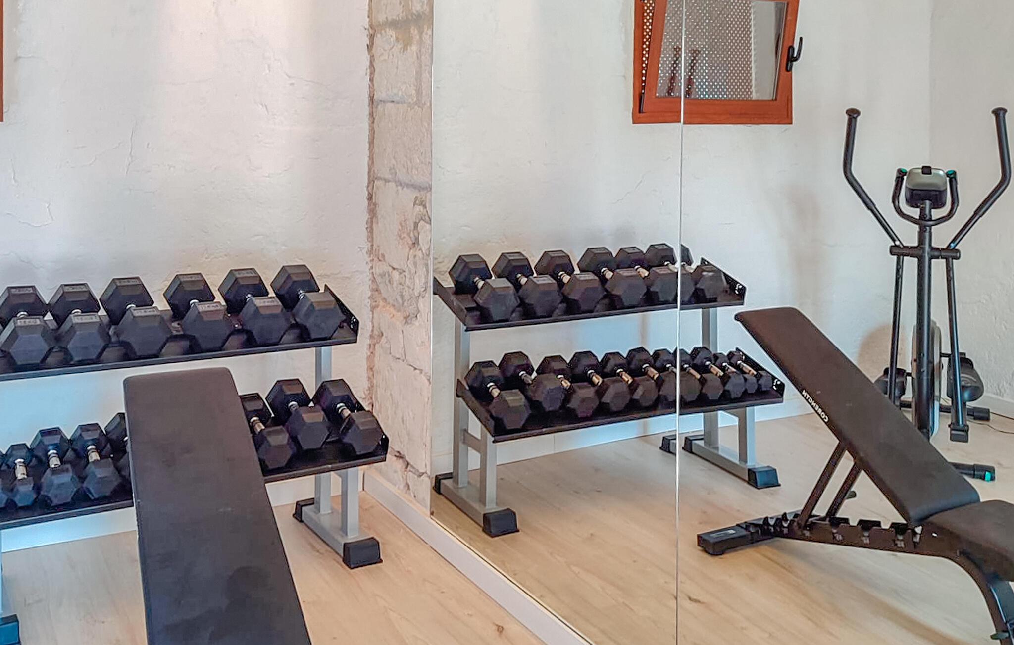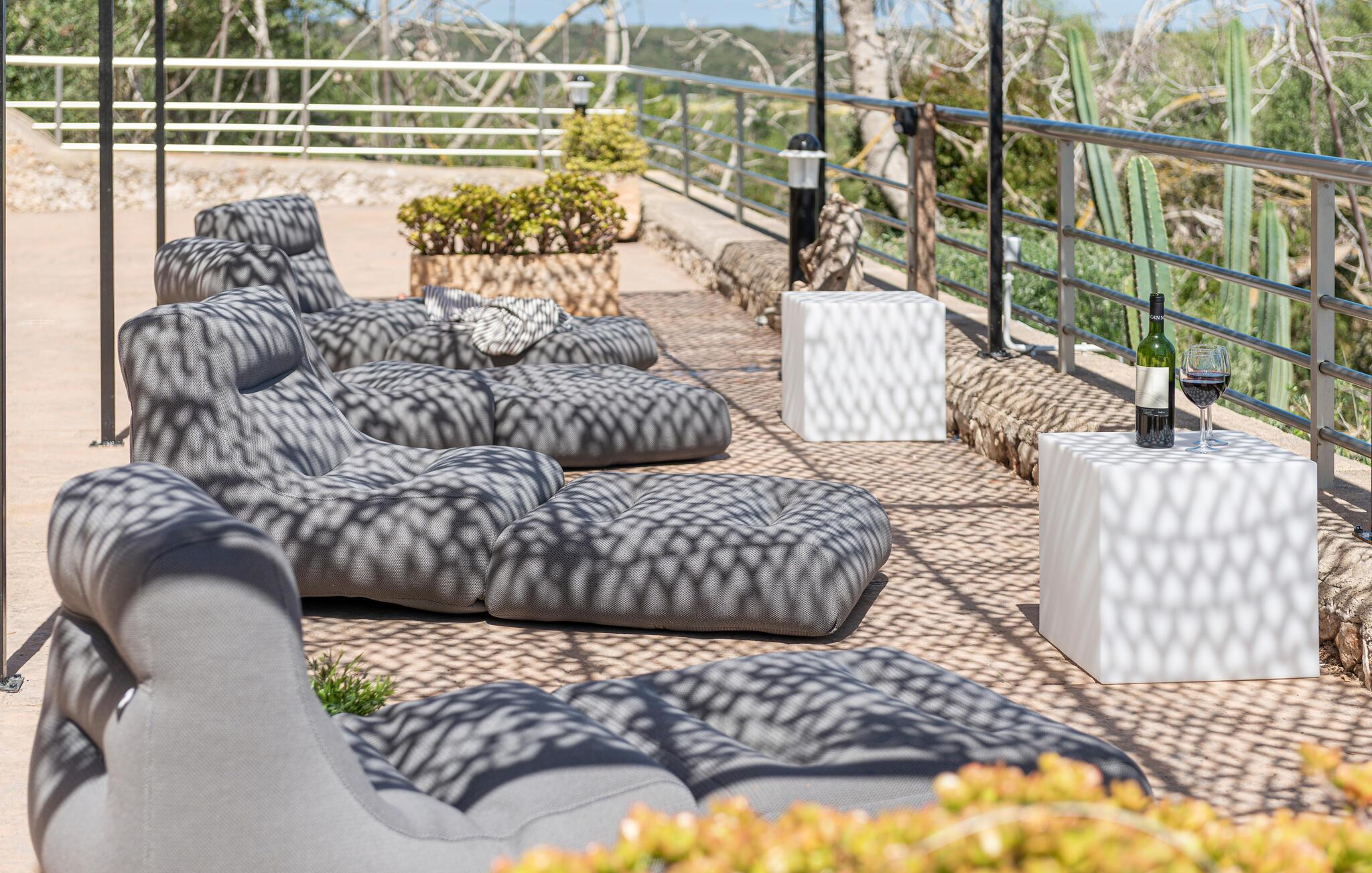 En oase af fred venter jer udenfor. Solbad på de komfortable liggestole ved den funklende pool eller nyd skyggen under den overdækkede terrasse med traditionelle stenvægge. Arranger hyggelige grillaftener og lad Dette blik vandre over det maleriske landskab.