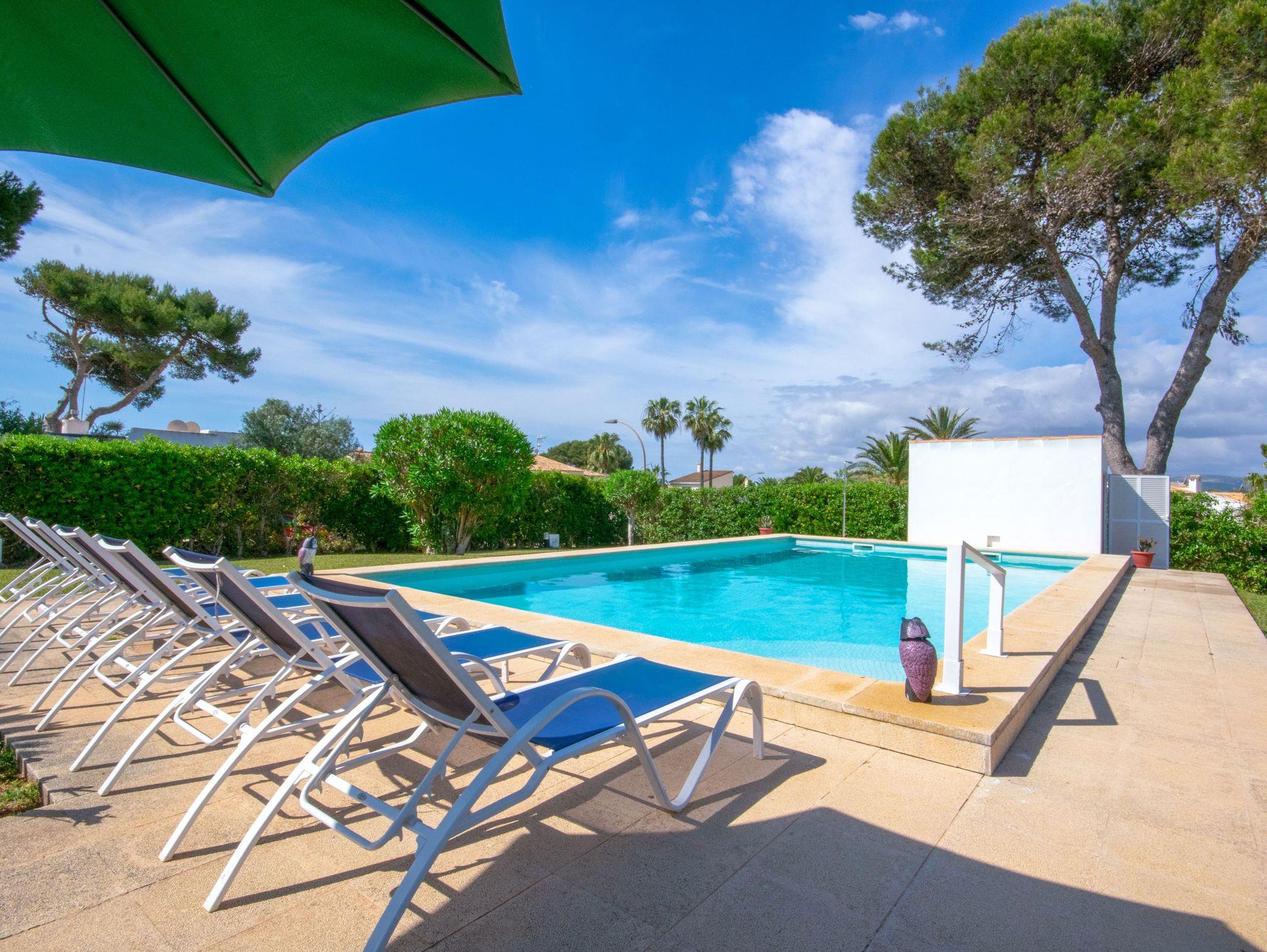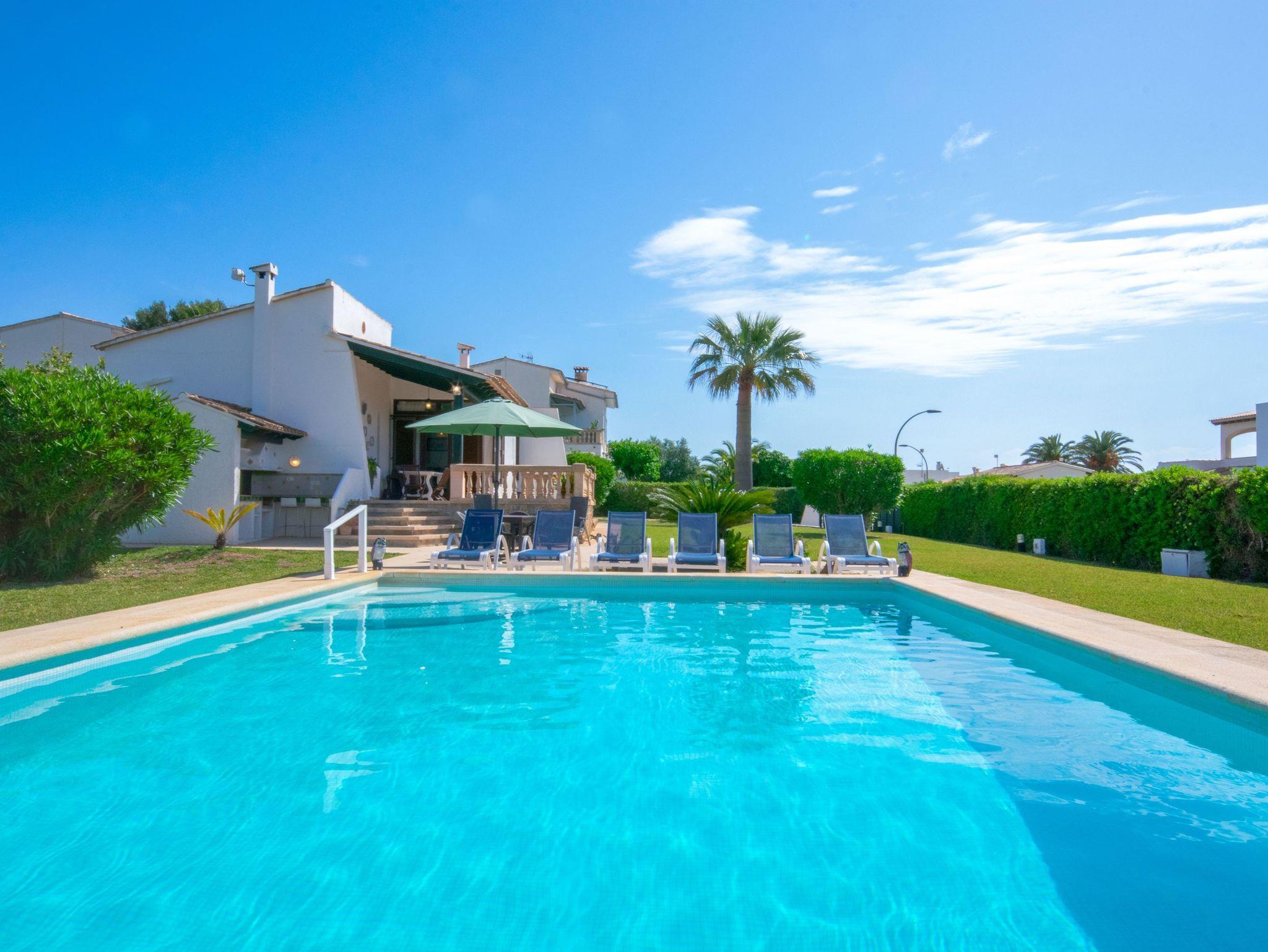 Dieses renovierte Ferienhaus Aurora liegt nur 200 Meter vom wunderschönen Sandstrand der Cala Anguila entfernt in einer ruhigen Wohnsiedlung ohne Durchgangsverkehr. Auf einer Fläche von 150 Quadratmetern bietet es 3 klimatisierte Doppelschlafzimmer, 2 Bäder, eine kleine mit Geschirrspüler ausgestattete Küche mit Durchreiche zum offenen Essbereich und einen etwas tiefer liegenden, ebenfalls klimatisierten Wohnbereich mit Sat Tv , Musikanlage und großen Glaselementen zur Terrasse, die ebenfalls mit einem Esstisch für 6 Personen ausgestattet ist. Neben der Terrasse gibt es einen gemauerten Grillplatz. Das eigentliche Highlight ist der 1200 Qm große Garten mit Palmen, Blumen, seiner sattgrünen Rasenfläche zum Spielen und dem kindersicher eingezäunten 10 x 5 Meter Pool mit Außendusche. In den Sommermonaten von Mai bis Oktober öffnet in 100 Meter Entfernung ein kleiner Supermarkt direkt neben einem kleinen Restaurant. Der nächste größere Ort ist Porto Cristo in nur 3 Kilometer Entfernung.