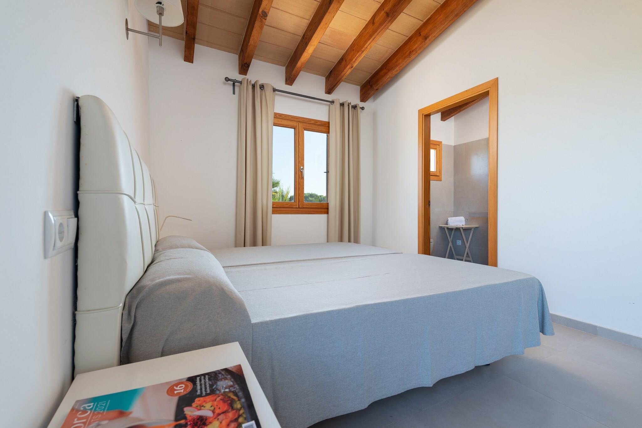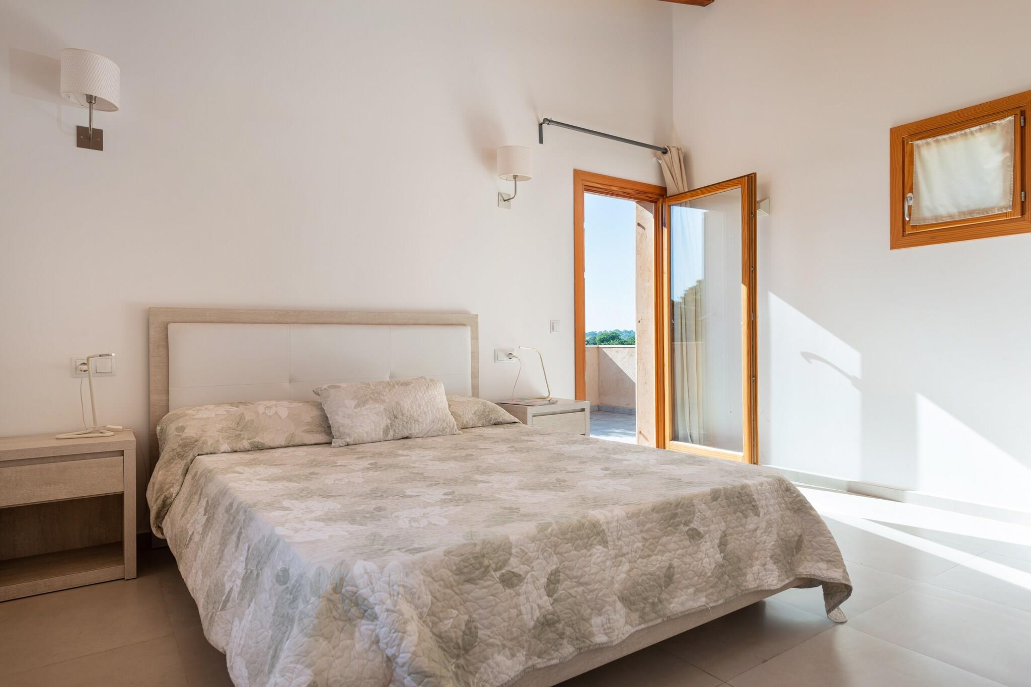 Denne charmerende villa i Porto Cristo er et perfekt tilflugtssted for familier eller grupper, der søger solbeskinnet afslapning og ø-eventyr. Udendørsområdet har en privat klorpool (10×4m, dybde 1,2–2,1m), omgivet af liggestole og en rummelig have, der er ideel for børn at lege frit. En skyggefuld veranda med en grill inviterer gæster til at samles til måltider og slappe af efter en dag med udforskning af Mallorca. Den indhegnede ejendom sikrer delvist privatliv, mens den bevarer en indbydende atmosfære. Indvendigt strækker villaen sig over to etager. I stueplan er der en hyggelig stue/spisestue med satellit-tv, et fuldt udstyret køkken med keramisk kogeplade, et soveværelse med dobbeltseng og et badeværelse med bruser. Ovenpå tilbyder yderligere to soveværelser komfort og bekvemmelighed - det ene med en dobbeltseng, en-suite brusebad og adgang til balkonen med en fantastisk udsigt; den anden med to enkeltsenge og en-suite badeværelse med badekar. Faciliteterne omfatter centrale ting som vaskemaskine, strygejern og babyudstyr (barneseng og høj stol). Villaen ligger kun 1,3 km fra hjertet af Porto Cristo og 1,7 km fra stranden, tæt på ikoniske attraktioner såsom Coves del Drach og Mondragó Naturpark. Med udvendig parkering til tre biler og nem adgang til transport, blander dette hjem ro med bekvemmelighed for en uforglemmelig flugt fra Mallorca.