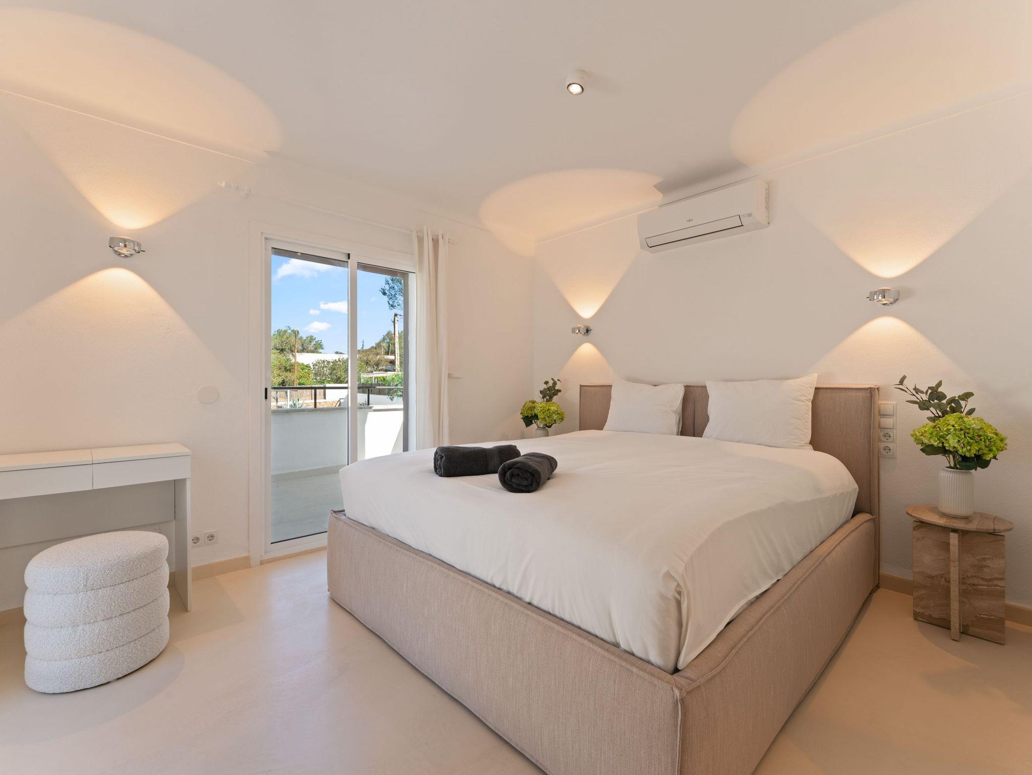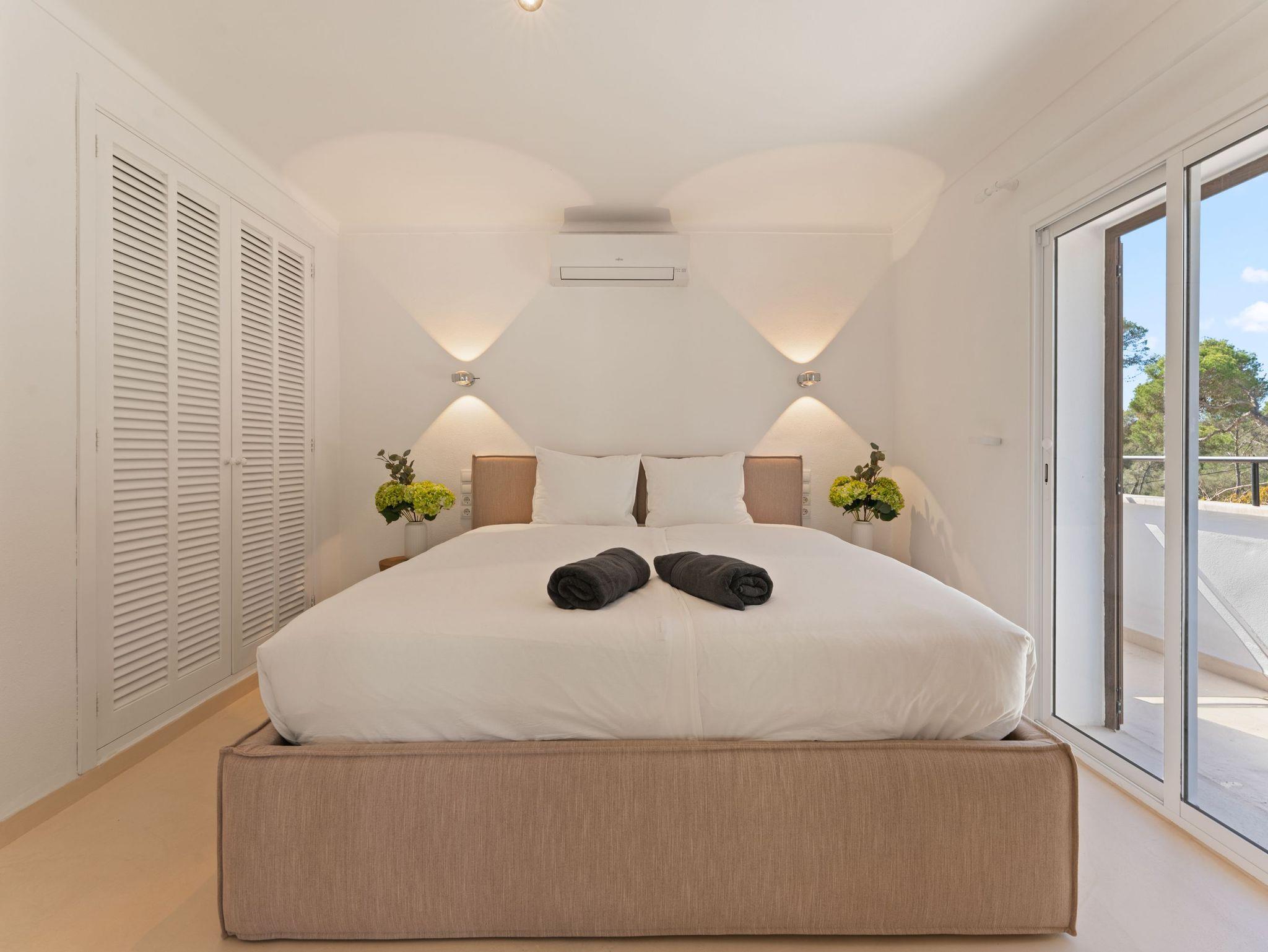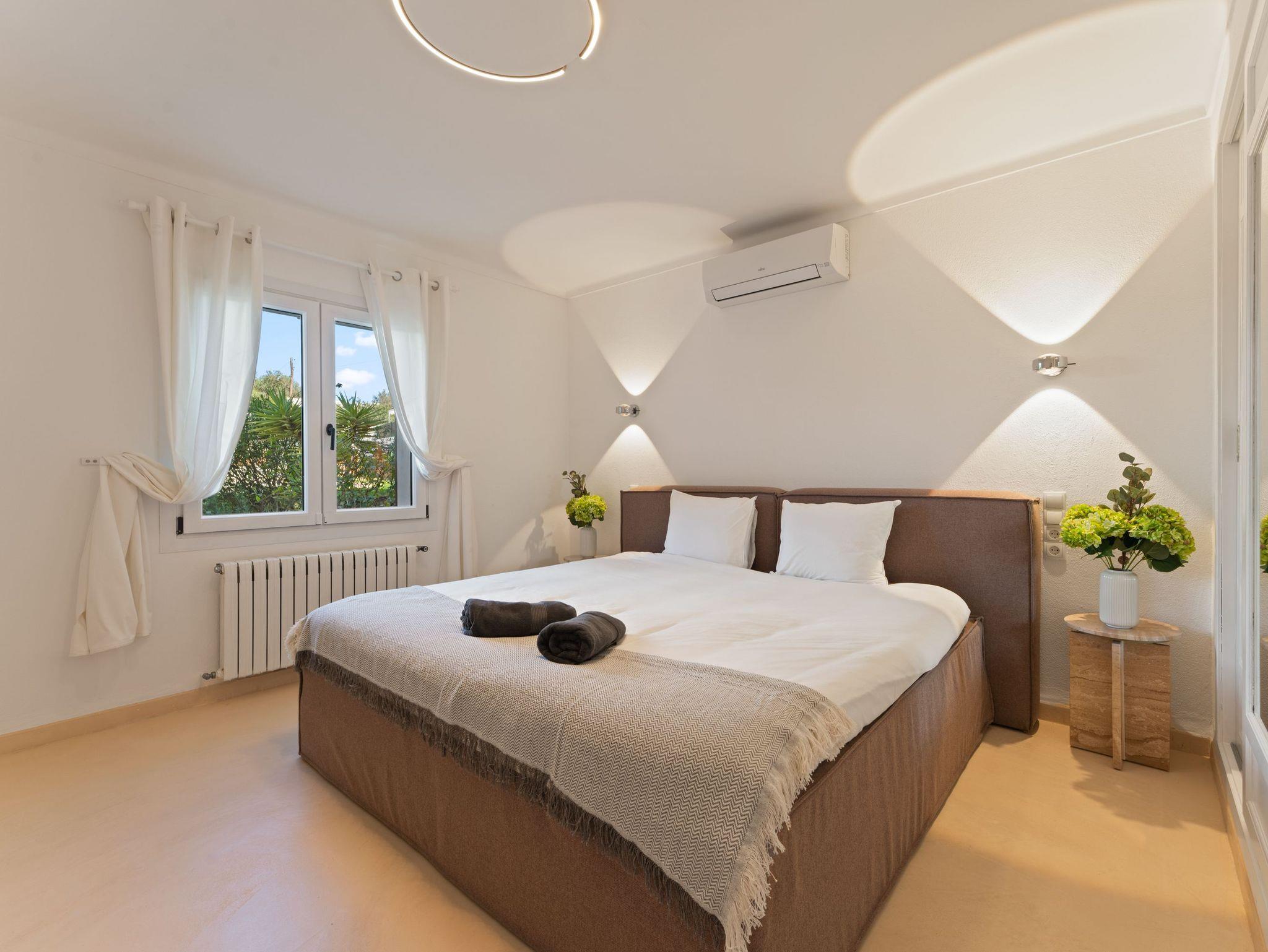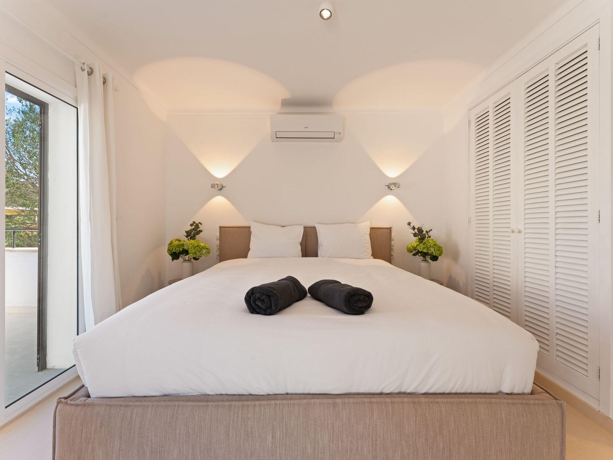 Sie verfügt über vier großzügige Schlafzimmer, liebevoll eingerichtet mit hochwertigen Boxspring- und Polsterbetten aus natürlichen Materialien, Einbauschränken sowie Klimaanlage in allen Zimmern. Zusätzlich ist eine Osmoseanlage für beste Wasserqualität installiert.