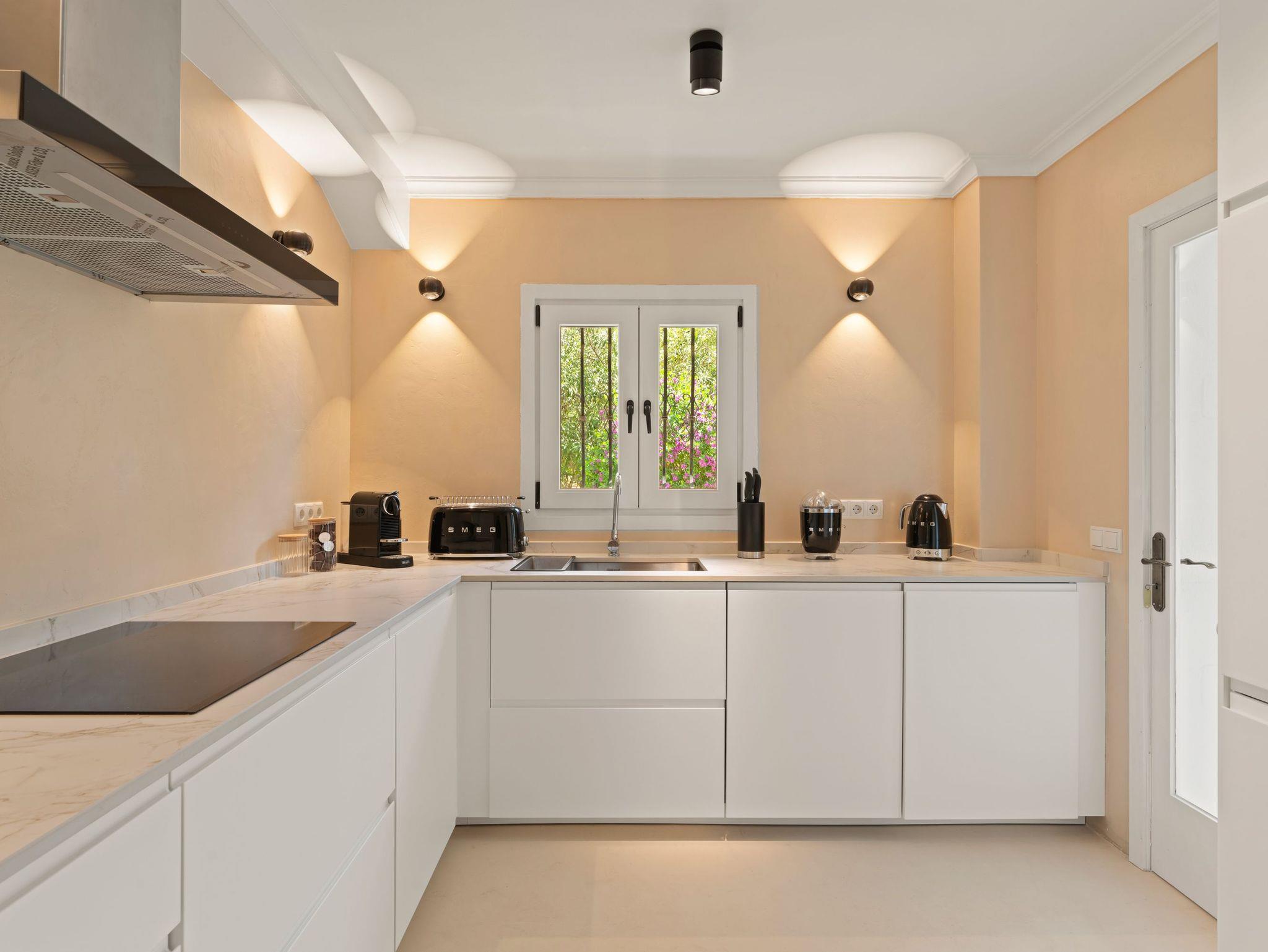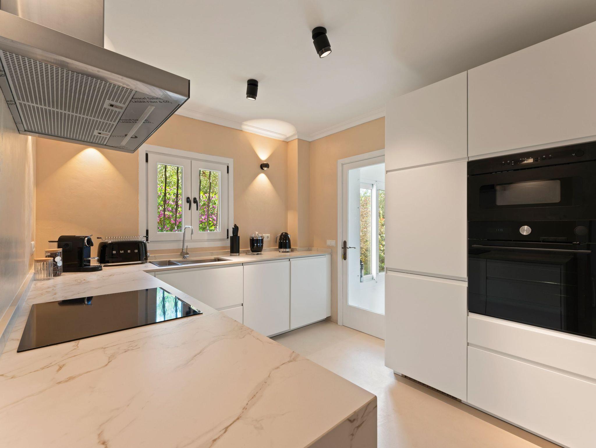 Die neue, voll ausgestattete Küche verfügt über hochwertige SMEG-Geräte, separate Kühl- und Gefrierschränke sowie eine elegante Steinarbeitsplatte ? ideal für kulinarische Erlebnisse.