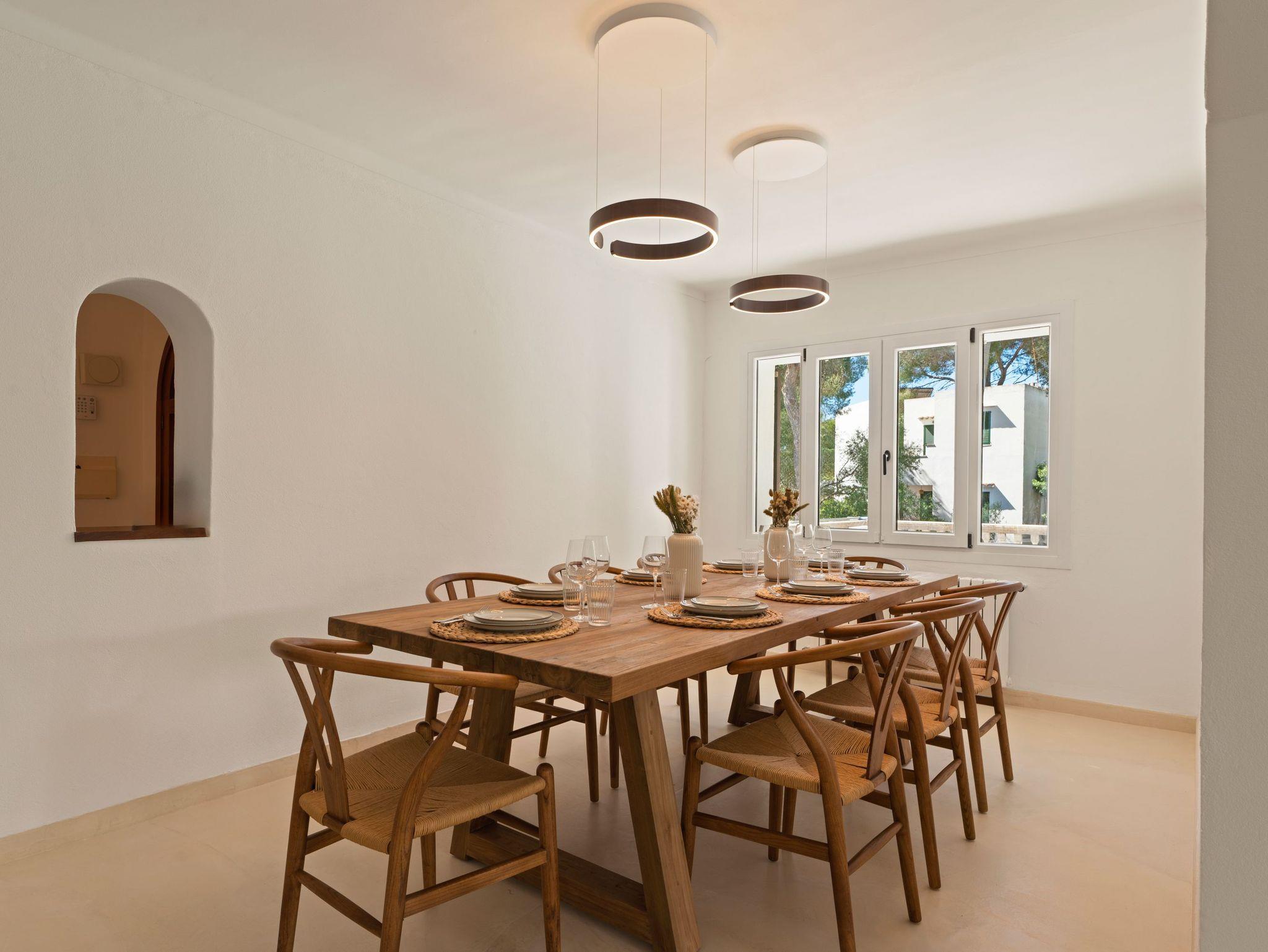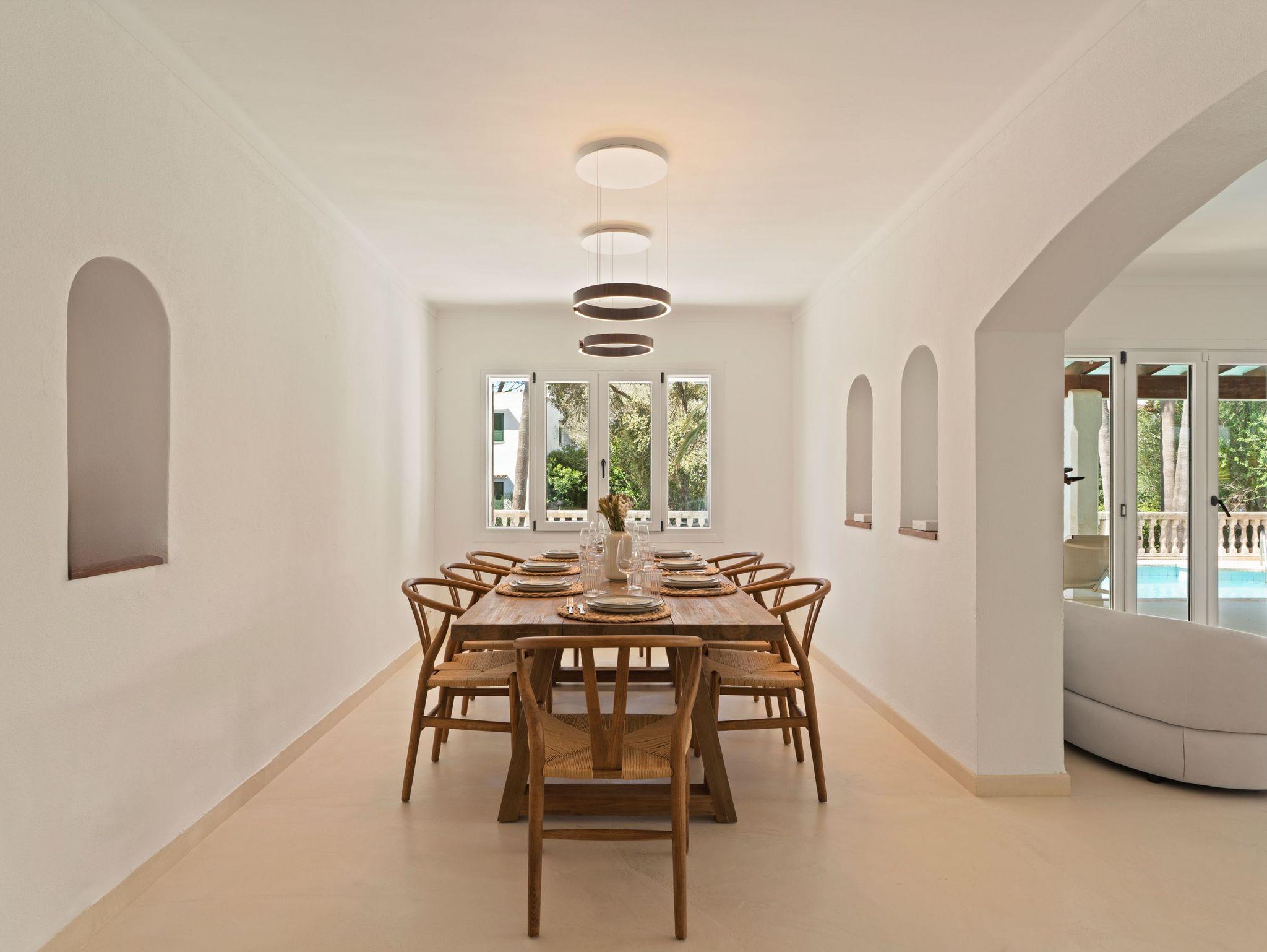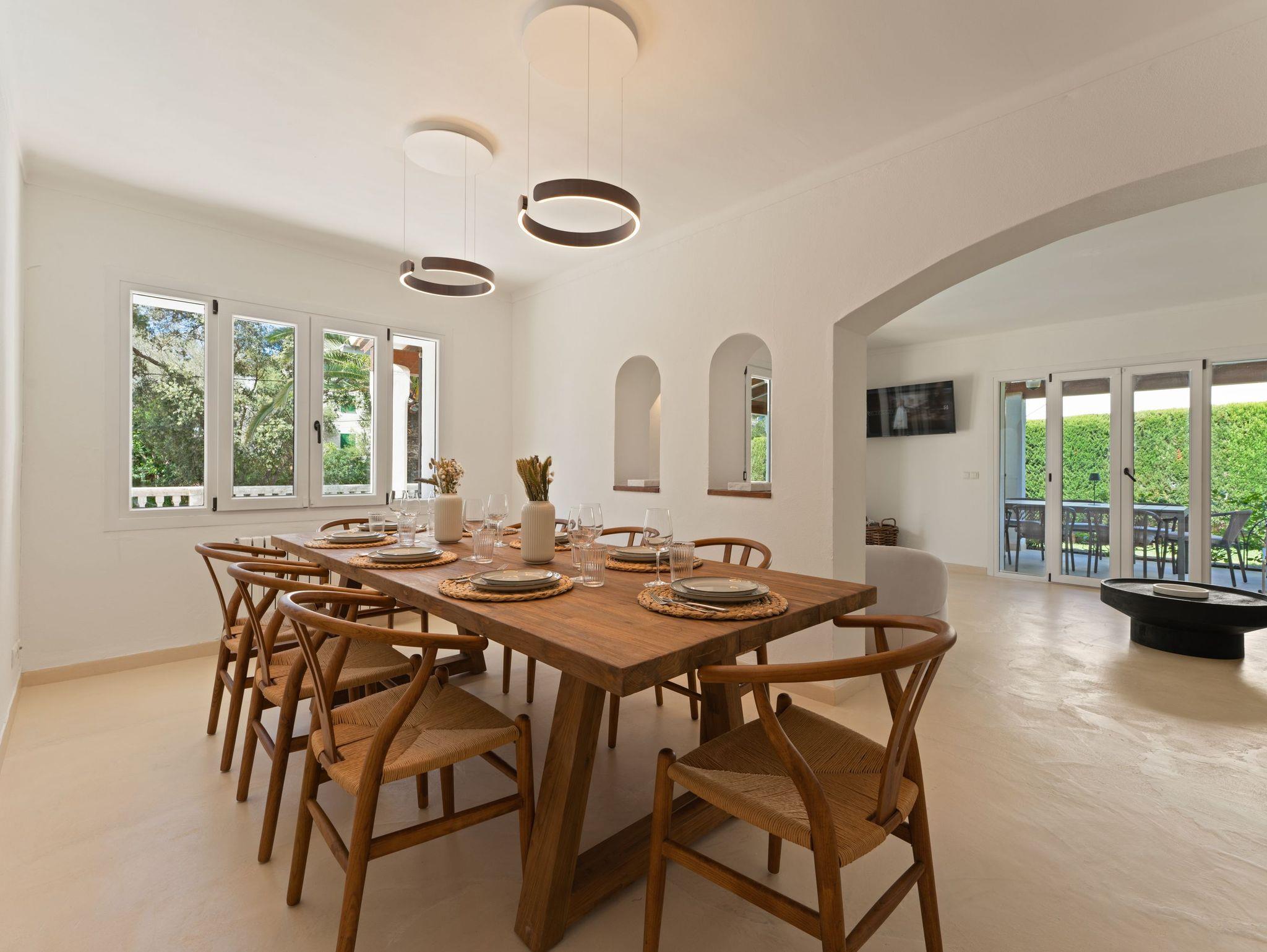 Der Außenbereich ist eine wahre Oase: eine geräumige Terrasse mit privatem Swimmingpool, umgeben von Grün, ideal zum Entspannen in der Sonne oder zum Essen im Freien. In einer ruhigen Umgebung, nahe am Meer gelegen, ist es der perfekte Rückzugsort für einen langsamen Urlaub auf Mallorca.