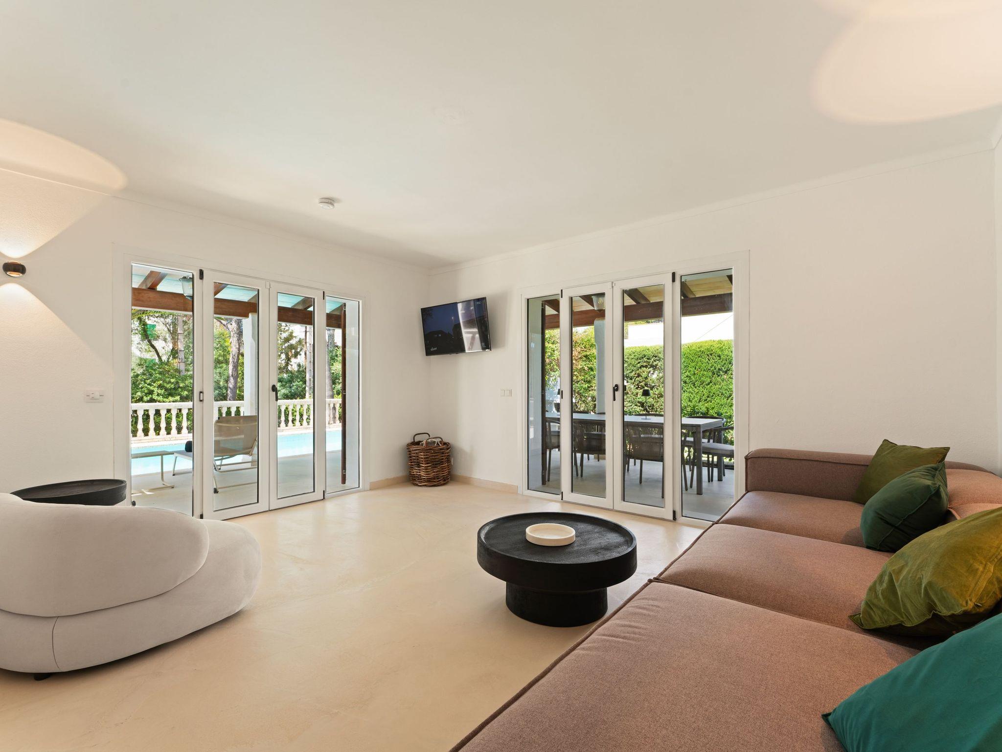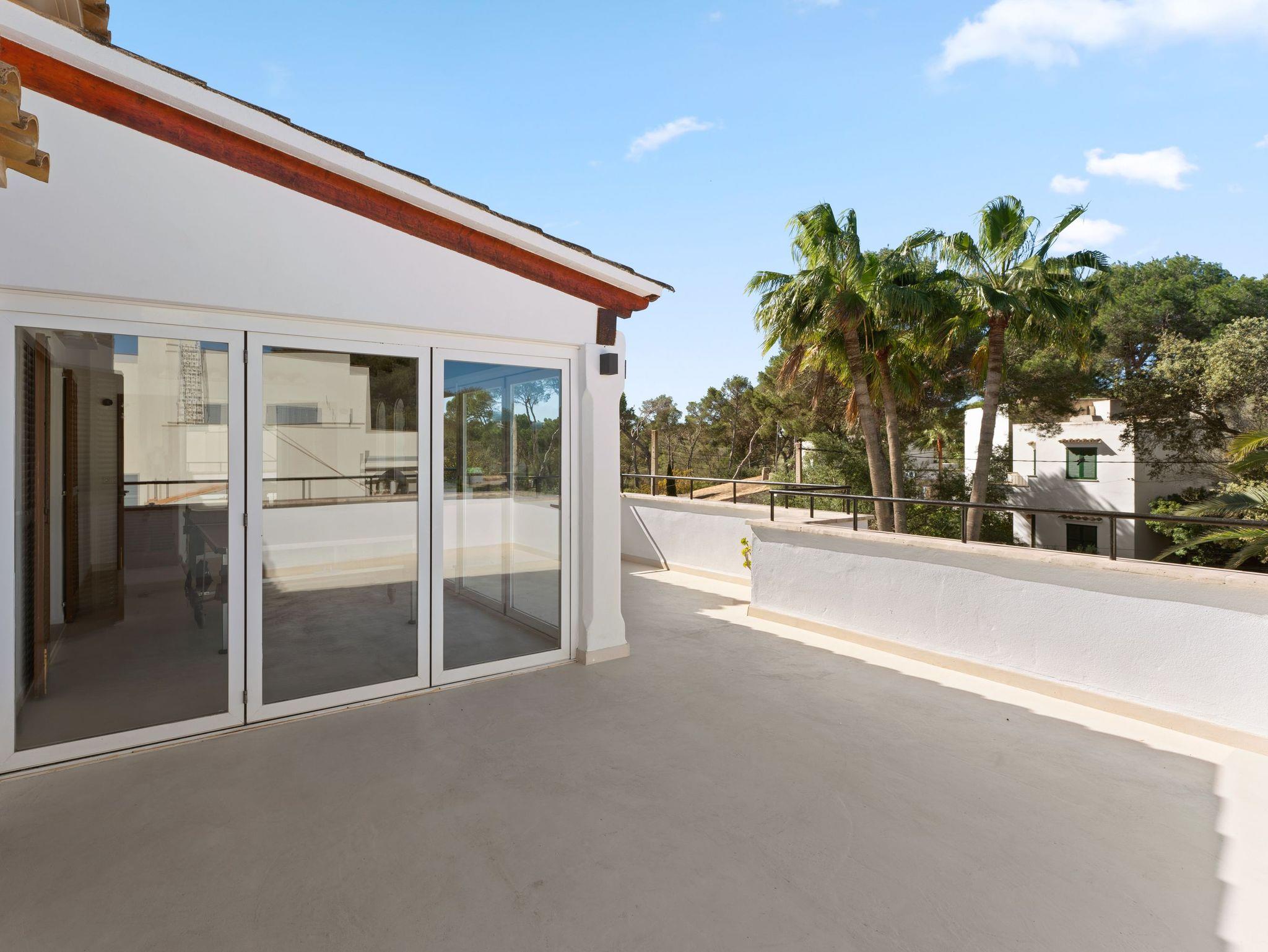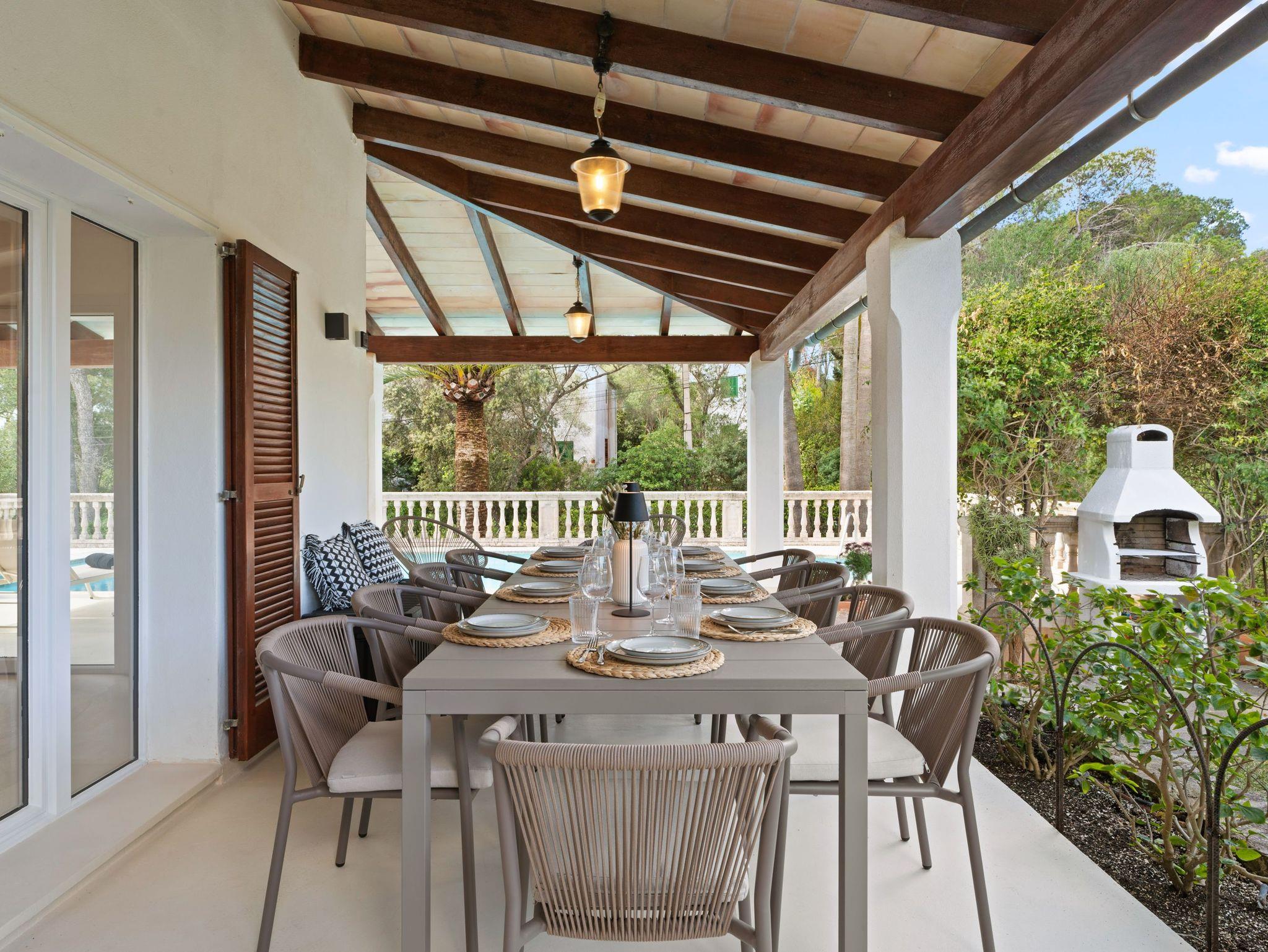 Der Außenbereich ist eine wahre Oase: eine geräumige Terrasse mit privatem Swimmingpool, umgeben von Grün, ideal zum Entspannen in der Sonne oder zum Essen im Freien. In einer ruhigen Umgebung, nahe am Meer gelegen, ist es der perfekte Rückzugsort für einen langsamen Urlaub auf Mallorca.