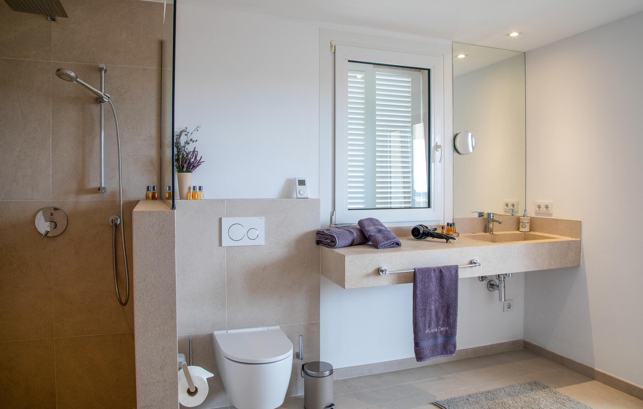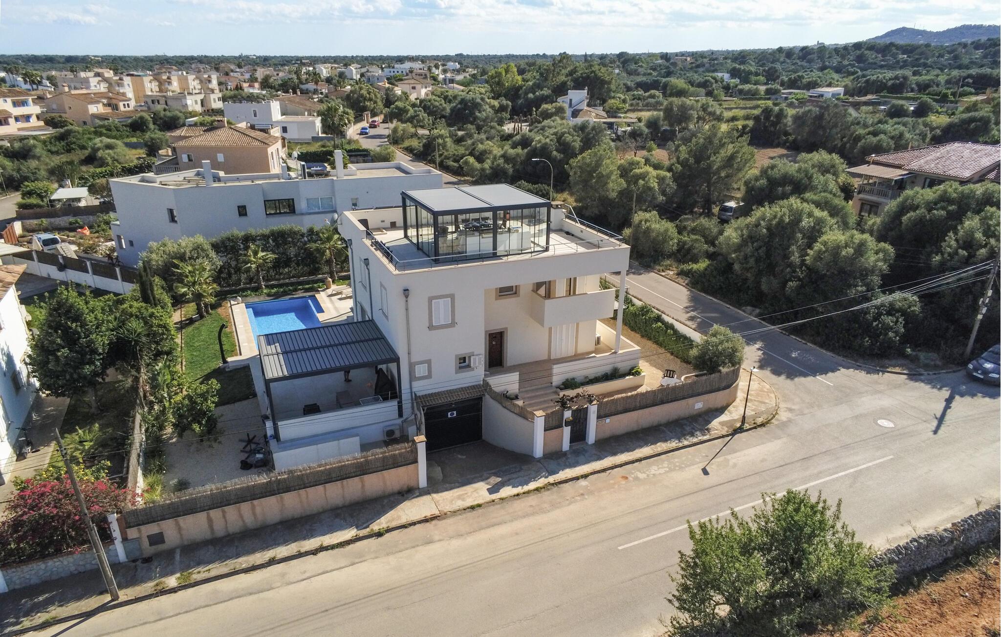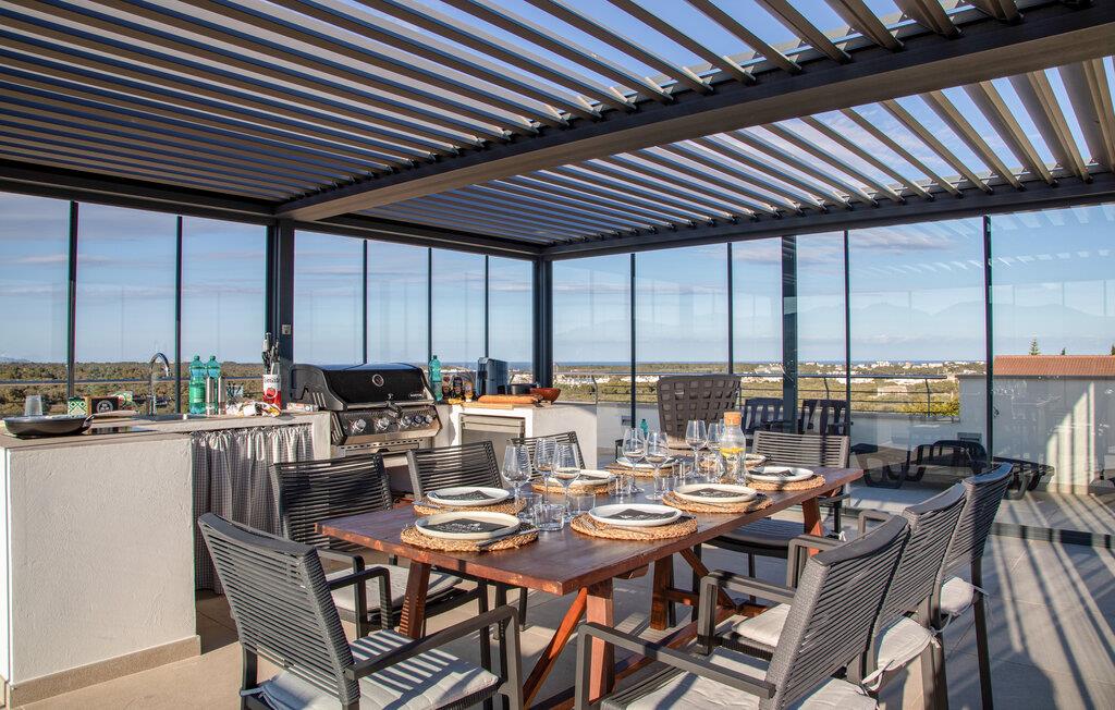 Om morgenen kan I tage en forfriskende dukkert i poolen, svømme et par baner eller spille vandpolo med børnene. Bagefter kan I slappe af på liggestolene eller læne jer tilbage med jeres ferielæsning. På tagterrassen kan I nyde et måltid med venner eller en kop kaffe, mens I nyder den fantastiske panoramaudsigt over det omkringliggende landskab.