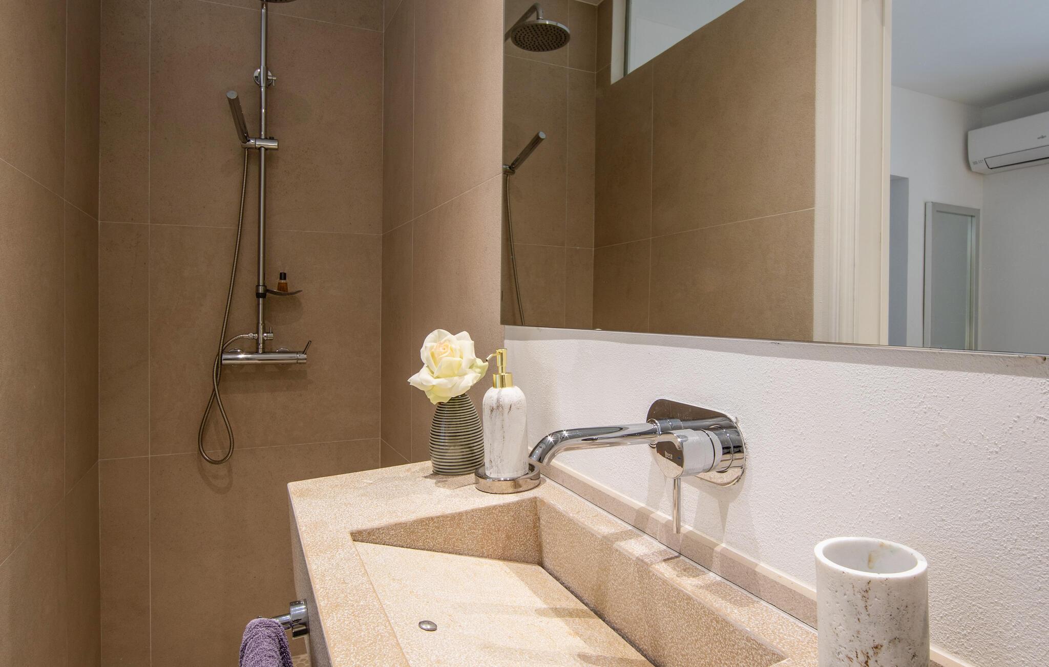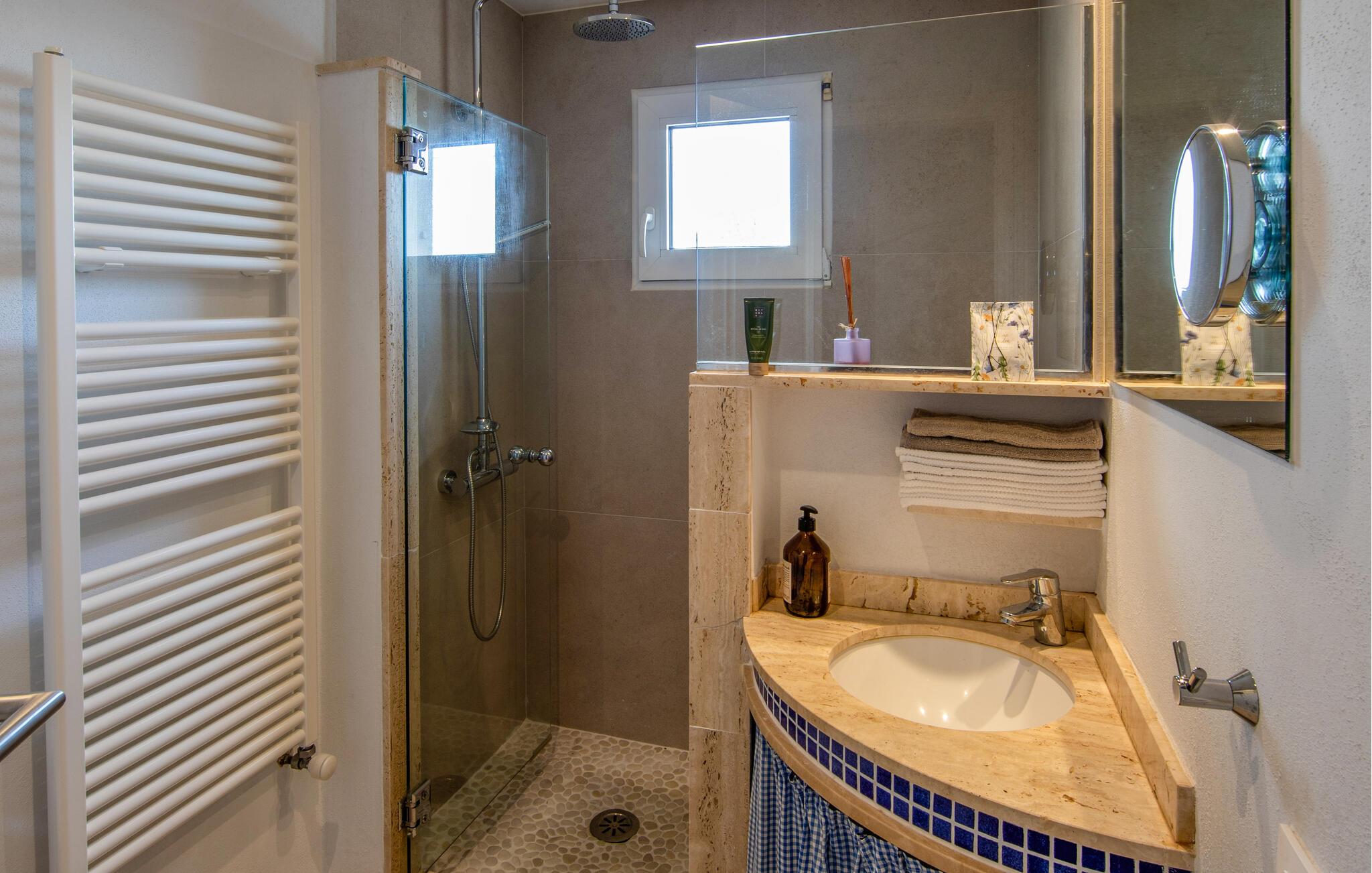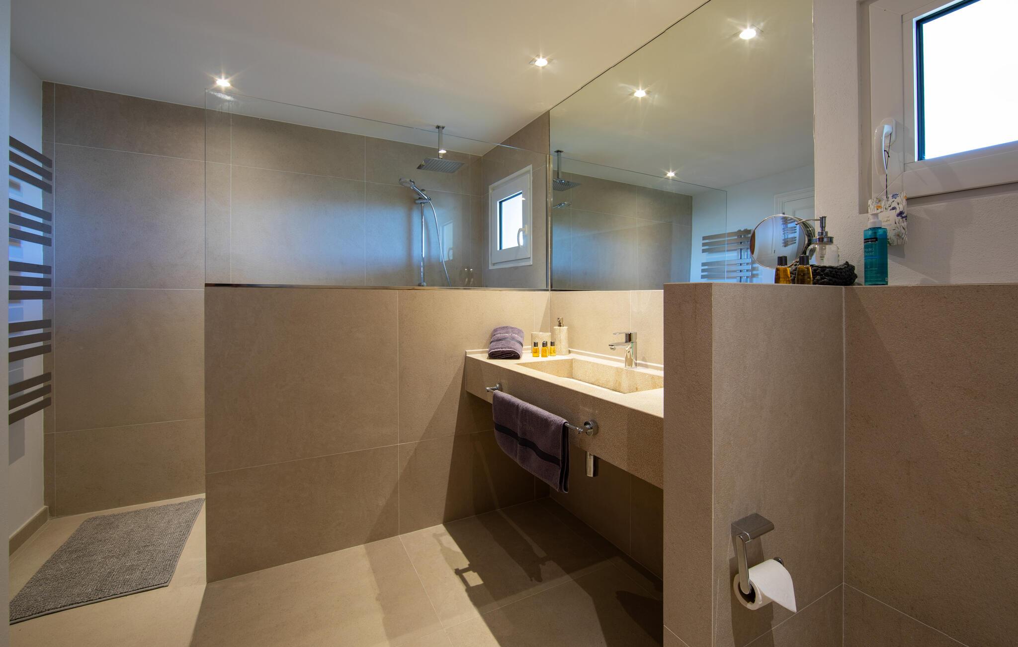 Om morgenen kan I tage en forfriskende dukkert i poolen, svømme et par baner eller spille vandpolo med børnene. Bagefter kan I slappe af på liggestolene eller læne jer tilbage med jeres ferielæsning. På tagterrassen kan I nyde et måltid med venner eller en kop kaffe, mens I nyder den fantastiske panoramaudsigt over det omkringliggende landskab.