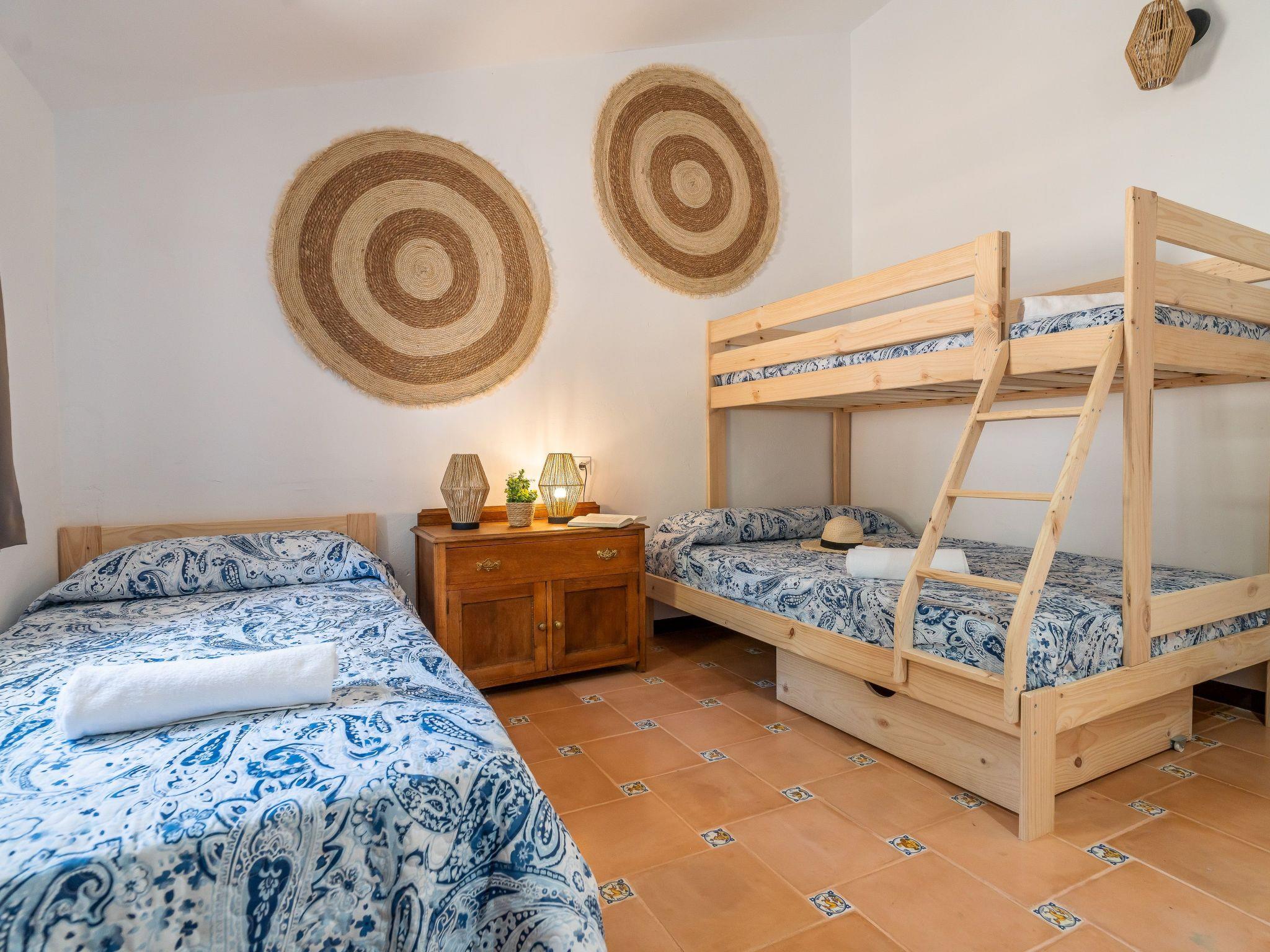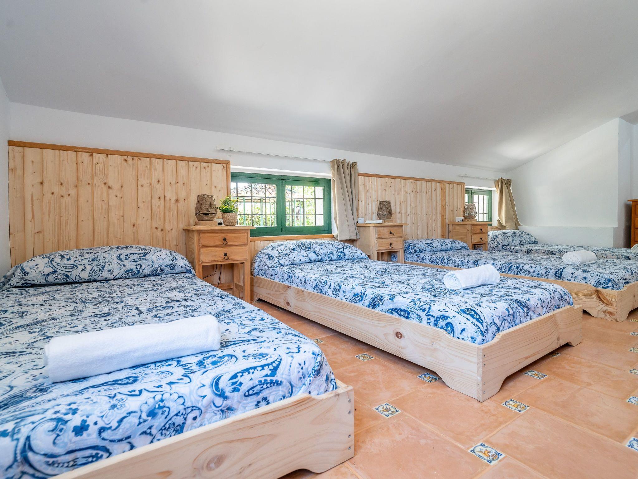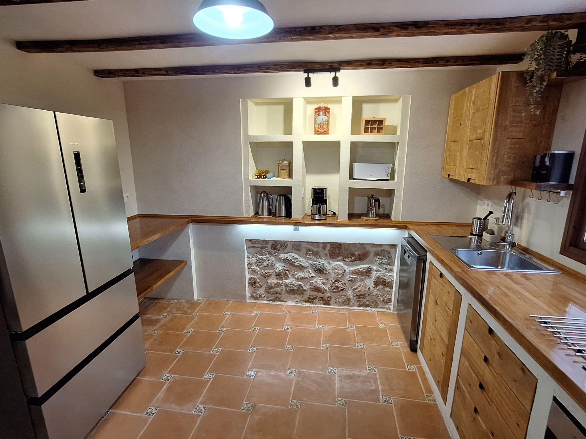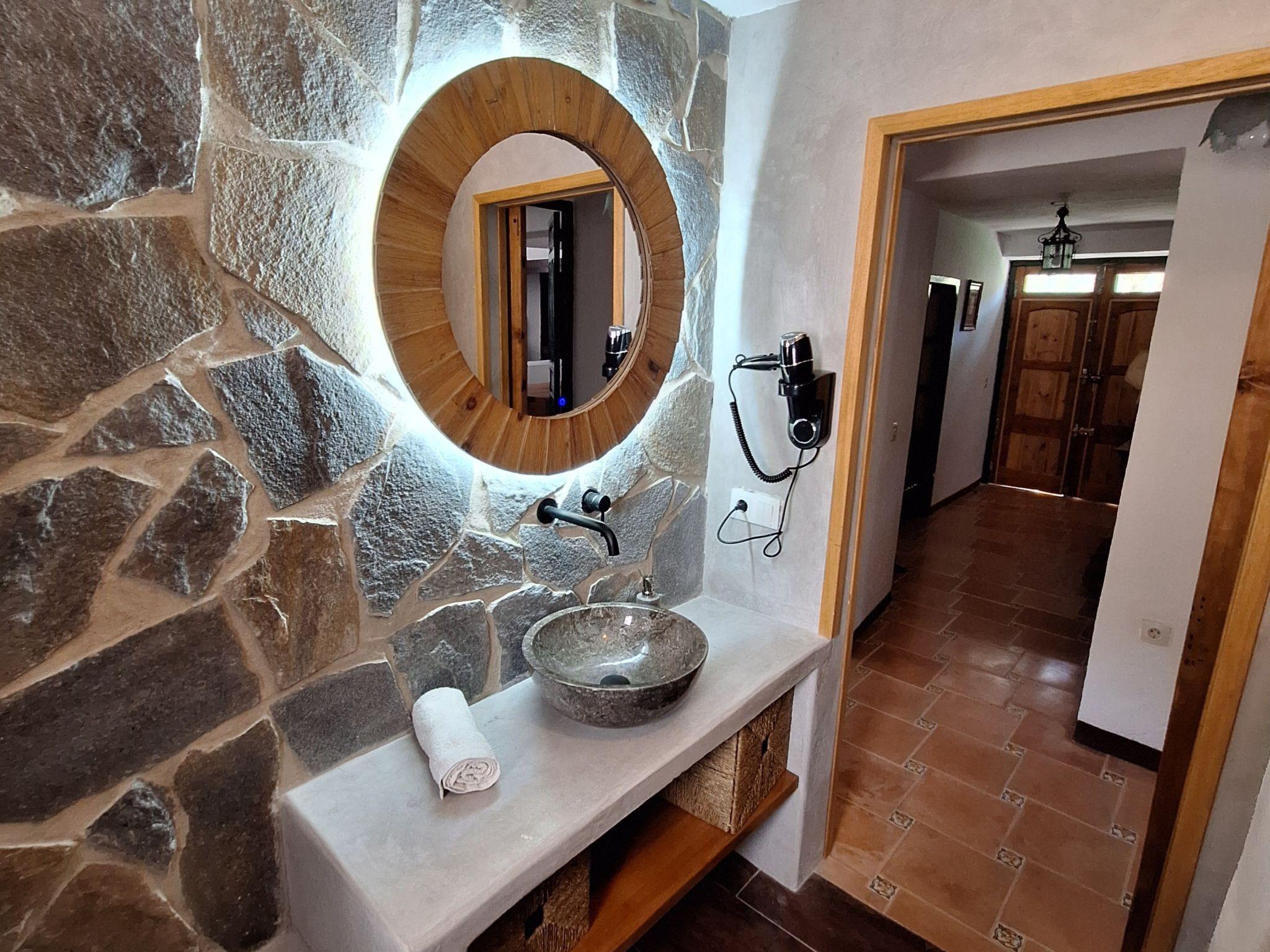 We have restored an old farmhouse trying to respect as much as possible the essence of a country house, but with the comforts that are demanded nowadays. Air conditioning in the 4 bedrooms on the first floor and in the living room, Starlink wifi throughout the property of 100 mgb, 55 inch smart TV, dishwasher, washing machine, dryer, oven, microwave, etc... On the ground floor there is a living room, dining room, kitchen, bathroom and bedroom with 1,35 x1,90 m bed, and on the first floor, 2 double bedrooms, a triple bedroom and a quadruple bedroom.