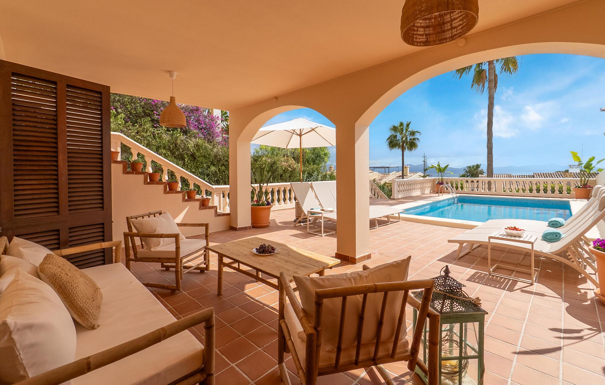 Udenfor finder I et velholdt poolområde med en stor terrasse, liggestole og et skyggefuldt loungeområde, der lægger op til afslapning. Snup en frisk dukkert i den private pool og slap af med en fantastisk udsigt over Middelhavet og de omkringliggende palmer. Brug den eksisterende grill til hyggelige måltider udenfor. Et spil bordtennis giver variation og sportslig sjov.