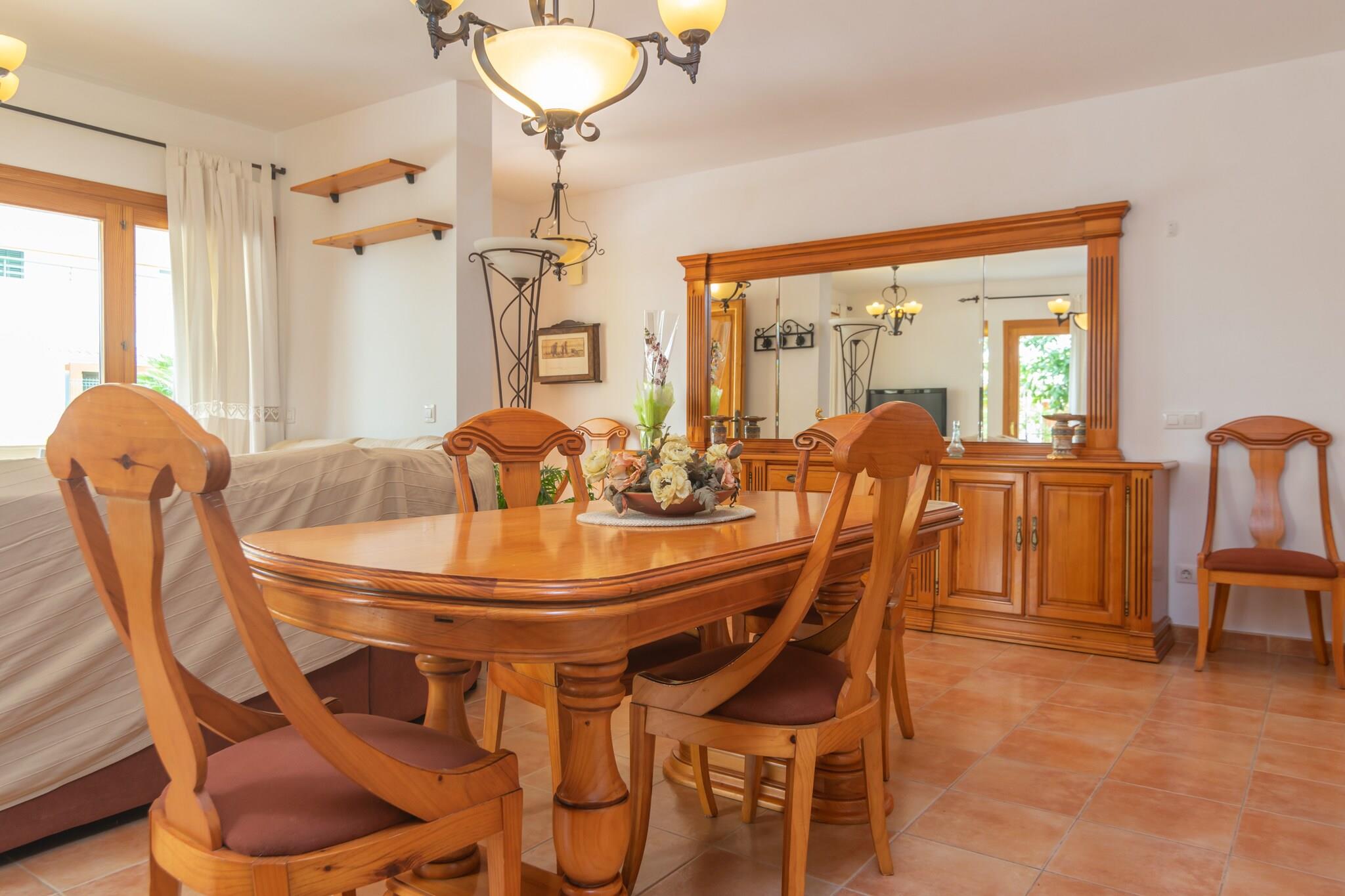 Dette charmerende to-etagers hjem tilbyder en afslappende middelhavsudflugt kun 400 meter fra Playa de Alcúdia. Udenfor kan du nyde solbadning på liggestole, forfriskende i den udendørs bruser eller samles omkring to store borde til måltider tilberedt på den mobile grill. Den indhegnede ejendom sikrer privatlivets fred, selvom naboer er i nærheden. Indvendigt byder stueetagen på en hyggelig stue/spisestue med satellit-tv og et fuldt udstyret selvstændigt køkken. Et badeværelse med bruser og vaskefaciliteter tilføjer bekvemmelighed. Ovenpå sørger tre soveværelser med aircondition - to dobbeltværelser og et med en trilleseng - afslappende nætter. To værelser har balkon, og etagen omfatter to badeværelser (et med badekar, et med bruser). En barneseng og højstol er til rådighed for familier med babyer. Beliggende nær Alcúdias pulserende strandscene, byder området på vandsport, strandbarer og alle vigtige tjenester. Udforsk nærliggende perler som Port de Pollença, Can Picafort og Alcúdias historiske gamle bydel. Kæledyr og arrangementer er ikke tilladt. Udvendig parkering til en bil er tilgængelig. Turistskat (Ecotasa) gælder for gæster over 16 år og reduceres efter den 9. dag.