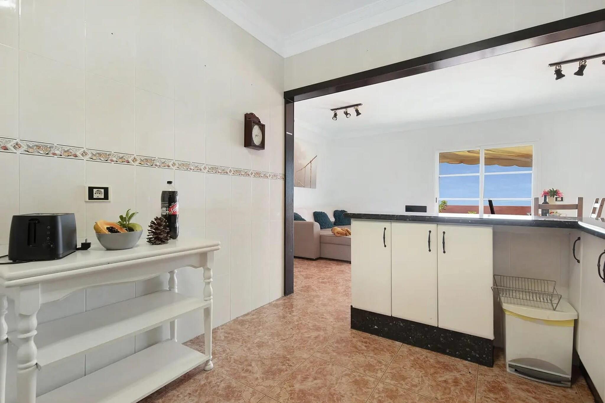 Velkommen til dit ideelle feriested i Puerto de La Cruz, hvor afslapning møder bekvemmelighed kun 300 m fra havets strand. Dette charmerende feriehus byder på alt hvad du behøver for et uforglemmeligt ophold. Slap af og nyd en fantastisk havudsigt fra din egen private terrasse. Puerto de La Cruz kan prale af flere andre smukke strande. Playa Jardín, med sit sorte vulkansand og frodige haver designet af César Manrique, er særligt berømt og er inden for rækkevidde. Den botaniske have i Puerto de La Cruz (Jardín Botánico) er et paradis af indfødte og eksotiske floraer, perfekt til en fredelig gåtur og nyde naturens skønhed. Tilbered lækre måltider i det fuldt udstyrede åbne køkken, komplet med moderne apparater og rigelig bordplads. Slap af og spis i den rummelige stue/spisestue, perfekt til sammenkomster og kvalitetstid sammen. Nyd fredelige nætter i de komfortable soveværelser, hvilket sikrer en afslappende søvn efter en dag med udforskning. Hold dig komfortabel året rundt med aircondition til varme dage og varme til køligere aftener. Der er vaskemaskine til tøjvask, havedøre til problemfri indendørs-udendørs ophold og adgang til en fælles have med havemøbler. Offentlig parkering er tilgængelig i nærheden for din bekvemmelighed.