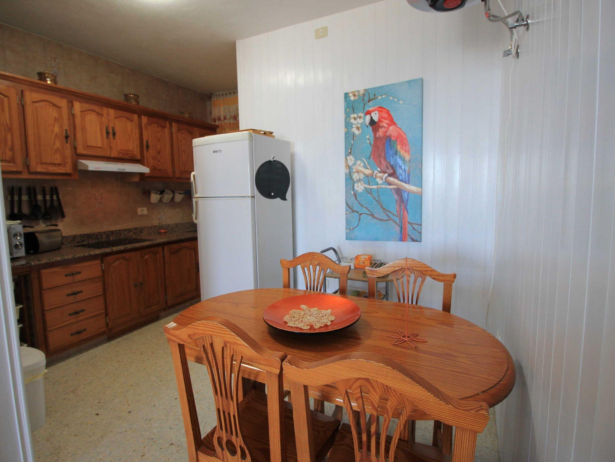 Die Küche ist durch eine Theke vom Wohnbereich abgetrennt und gut ausgestattet.