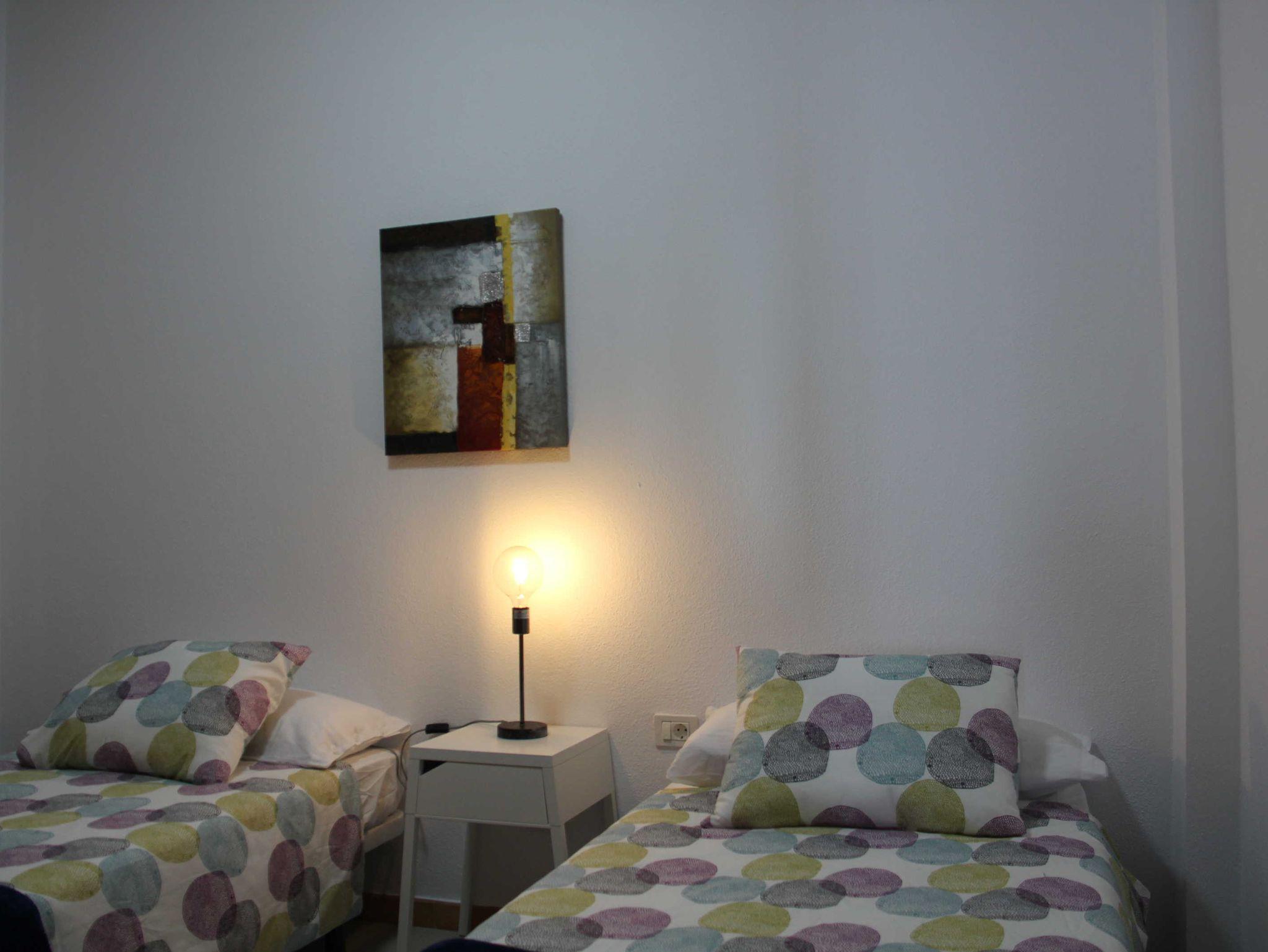 • 2 Schlafzimmer, je 2 Einzelbetten (0,90x1,90m) Kleiderschrank, Nachtisch + -lampe, Verdunkelungsvorhänge