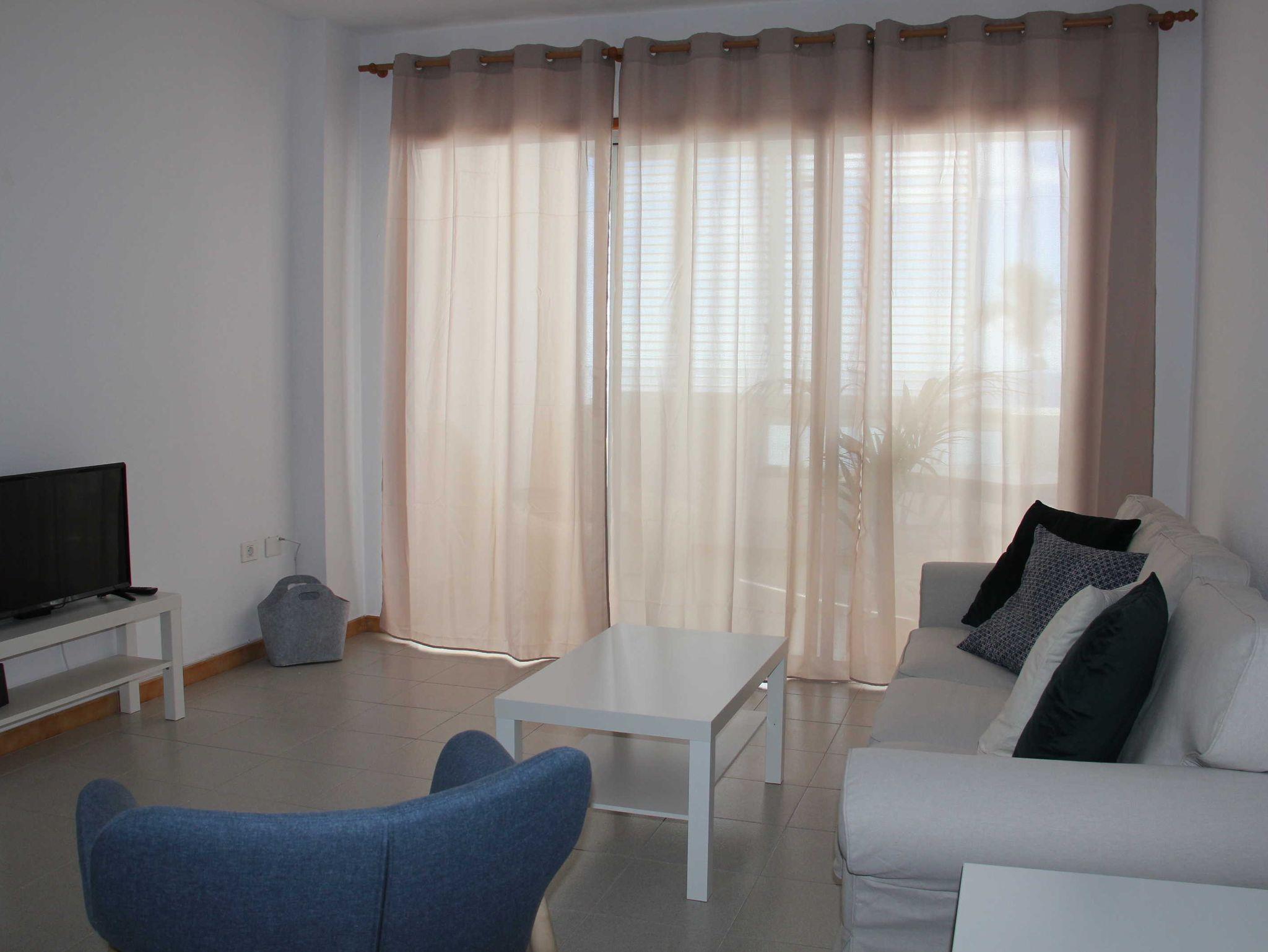 Große Terrassentüren trennen den Balkon vom modern-puritischen Wohnzimmer. Ein gemütlicher 3-Sitzer nebst Loungechair und 2 Beistelltischen sowie Fernseher vis-á-vis ? mehr braucht es nicht, um sich wohl zu fühlen. Zudem findet das Leben in Puerto Naos draußen statt ? entweder auf dem Balkon oder am Strand bzw. der Strandpromenade. Trubel sucht man hier jedoch vergebens. Es ist beschaulich und sehr auf Entspannung ausgerichtet.