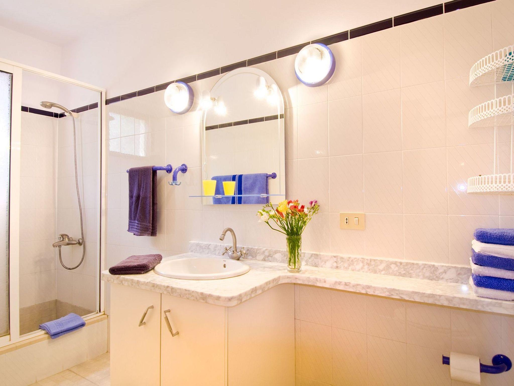 Nebenan befindet sich das Duschbad mit WC. Ein Haartrockner sowie Handtücher sind vorhanden.