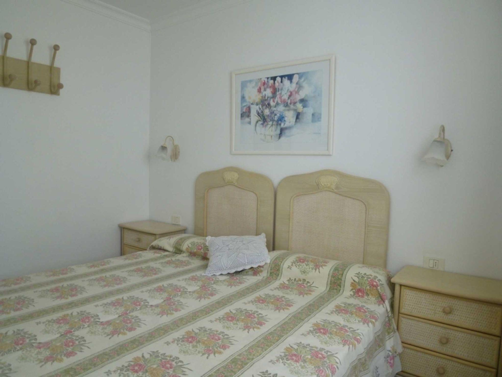 • 1 Schlafzimmer mit 2 zusammen gestellten Einzelbetten, Kleiderschrank, großer Terrassentür und Meerblick