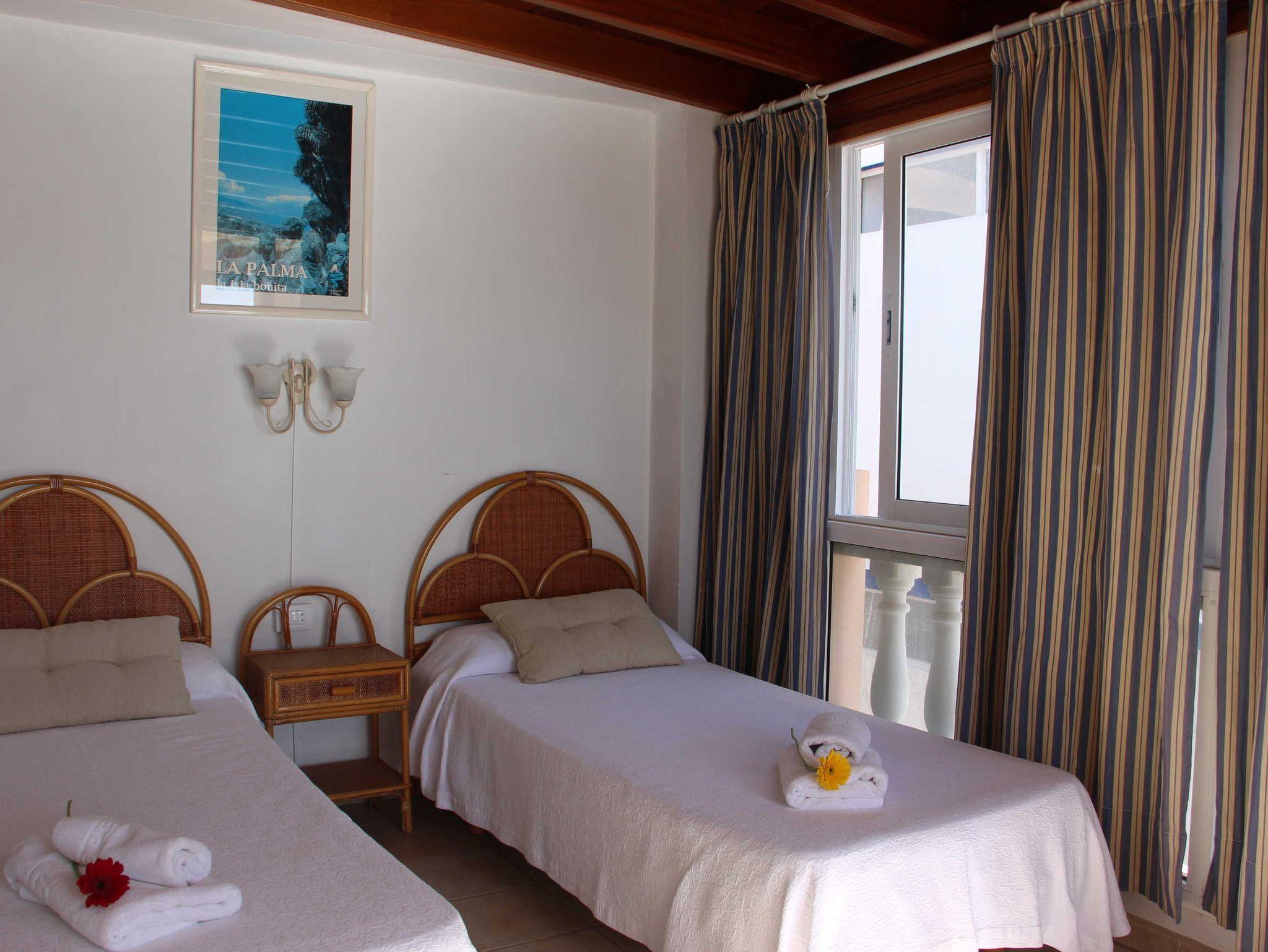 Das Apartmenthaus Regata liegt in Puerto Naos direkt gegenüber dem breiten Lavasandstrand mit Palmen an der autofreien Strandpromenade.