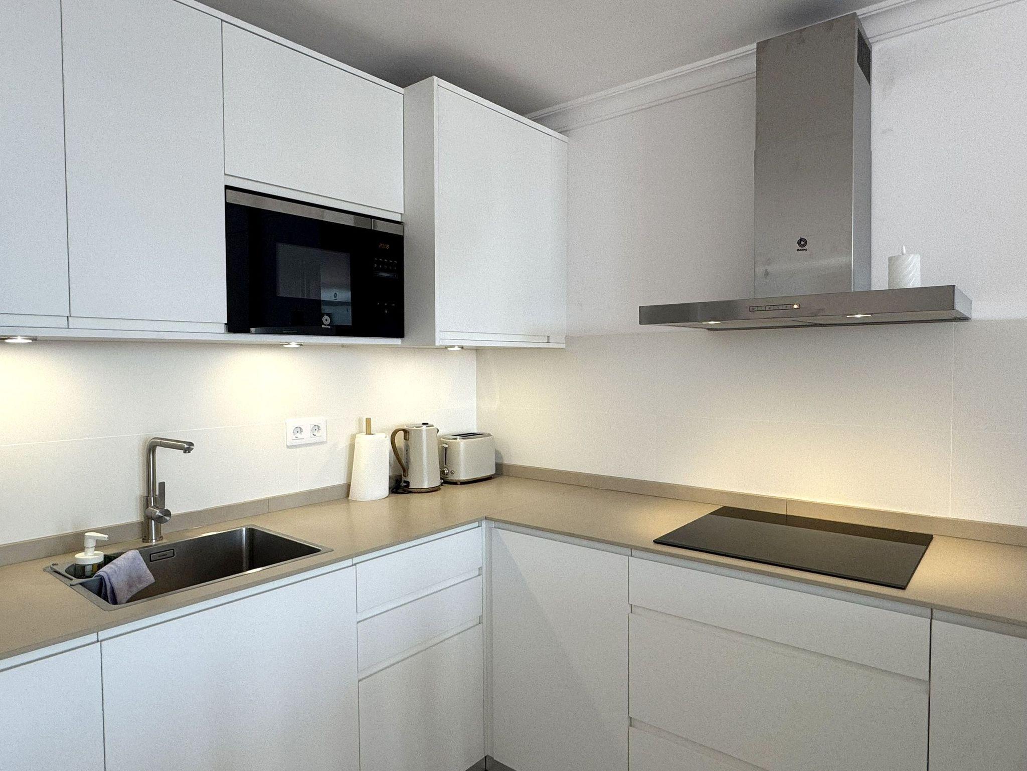 • Küchenzeile mit Ceranherd (3 Felder), Kaffeemaschine, Cafetera, Toaster, Kühlschrank, Gefrierfach, elektr. Saftpresse, Standmixer, Wasserkocher