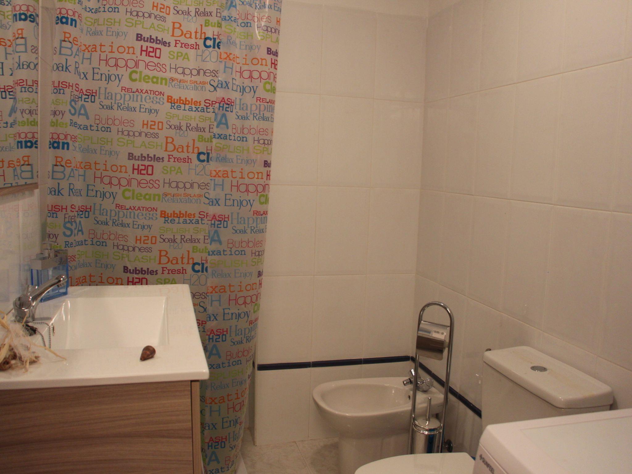 Das Bad ist mit Dusche/WC sowie einer Waschmaschine ausgestattet.
