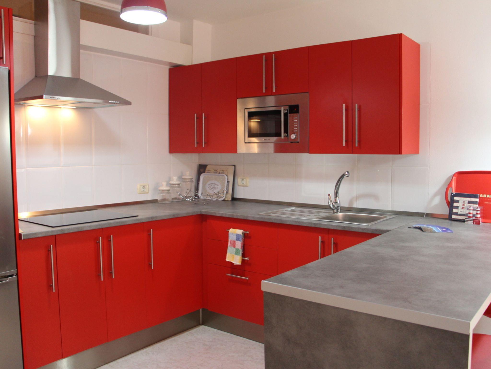 • Küchenzeile mit Cerankochfeld (4 Platten), Dunstabzug, Mikrowelle, Kaffeemaschine, Cafetera, Toaster, Kühl-Gefrierkombination, Stabmixer, elektrische Saftpresse