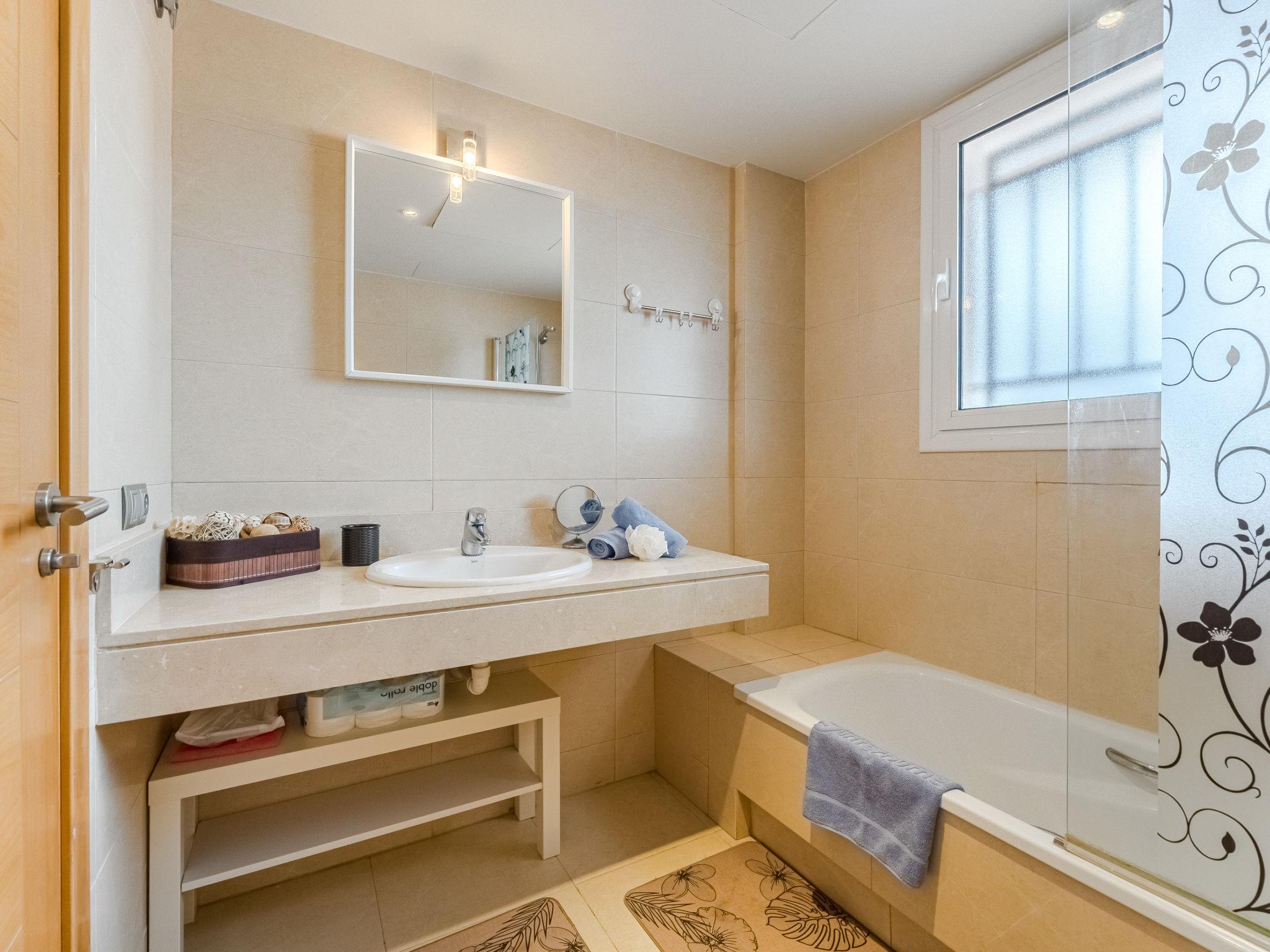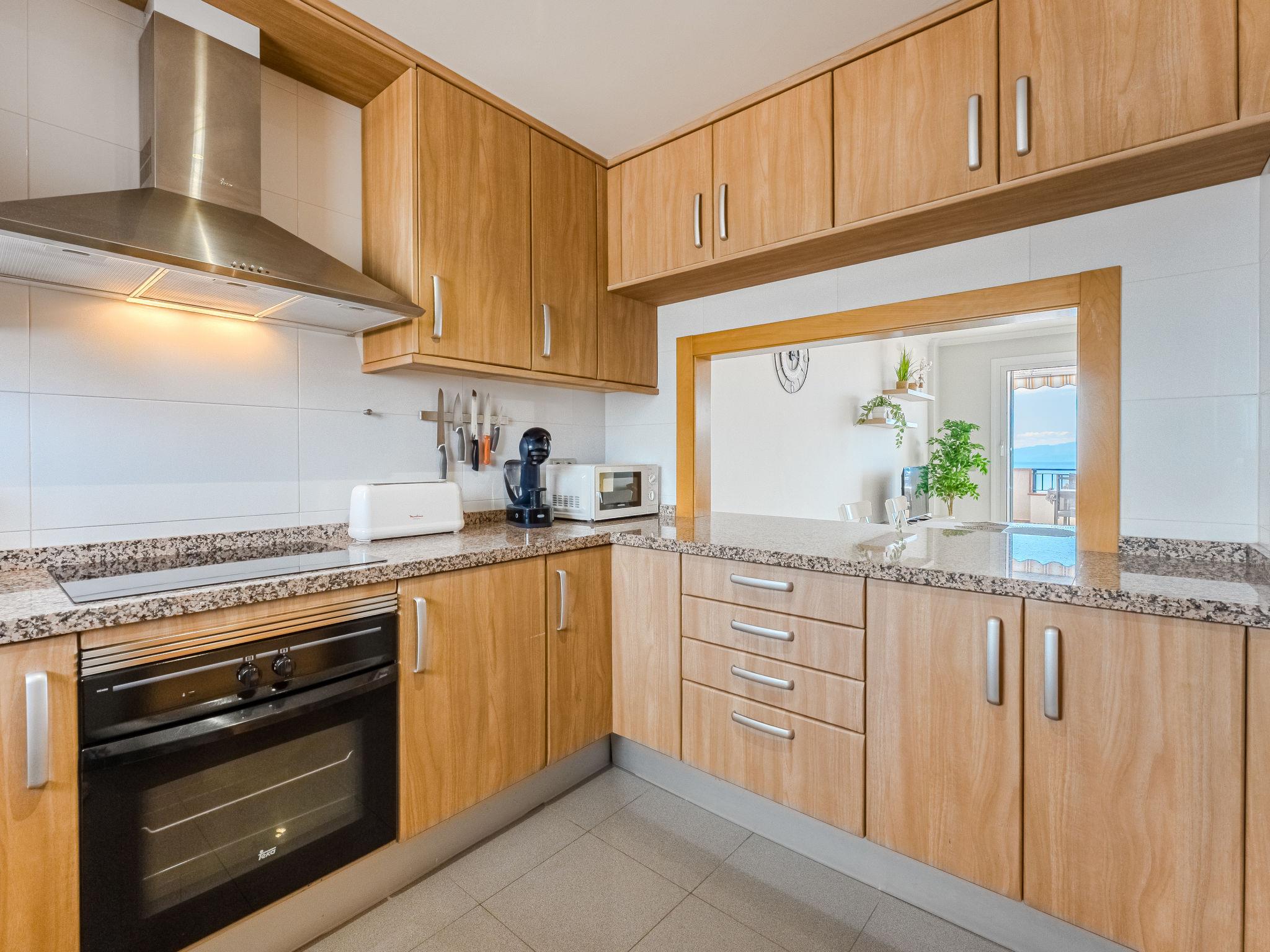 "Santiago Seaview", 2-room apartment 90 m2 on 2nd floor. Spacious and bright, practical and comfortable furnishings: living/dining room with 1 sofabed (90 cm, length 180 cm), satellite TV, air conditioning and forced-air heating. Exit to the terrace. 1 room with 1 french bed (160 cm, length 200 cm). Exit to the terrace. Kitchen (dishwasher, 3 ceramic glass hob hotplates, toaster, kettle, microwave, freezer, electric coffee machine, Capsules for coffee machine (Dolce gusto) extra) with hatch. Bath/WC. Boiler (75 litres). Terrace. Terrace furniture, deck chairs (2). Very beautiful view of the sea. Facilities: washing machine, iron, hair dryer. Internet (WiFi, free). Garage space n 13. Please note: suitable for families. Non-smokers only. VV-38-4-01019513 // Reg. Nr.: ESFCTU0000380020005494070000000000000VV-38-4-01019513