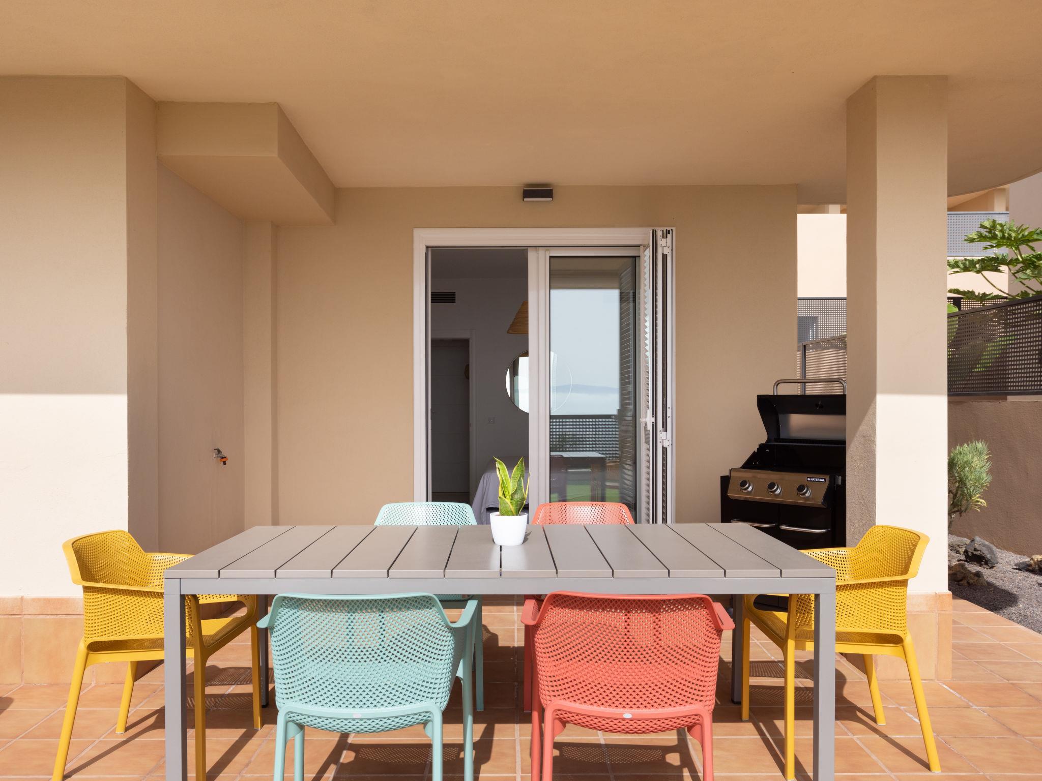 Modern, comfortable apartment block "Playa Negra II". 800 m from the centre of Puerto Santiago, 2 km from the centre of Los Gigantes, in a quiet position residential area (villas), 2.4 km from the sea. For shared use: swimming pool angular (depth 120 cm, seasonal availability: 01.Jan. - 31.Dec. pool opening hours: 10:00-19:00). Shower/WC in the pool area, children's pool, roofed, parking. Supermarket 160 m, restaurant 800 m, bus stop "Los Gigantes" 1 km, sandy beach "Playa La Arena" 2.4 km. Marina 2.2 km. Nearby attractions: Mirador Archipenque 1.1 km, Piscina Natural Acantilado los Gigantes 2.5 km, Playa de Santiago 1.6 km, El Teide 30 km, Masca 19 km, Aeropuerto Tenerife Sur 39.6 km. Object suitable for 2 adults. Neighbourhood highly sensitive to noise. Quietness and good behaviour expected.