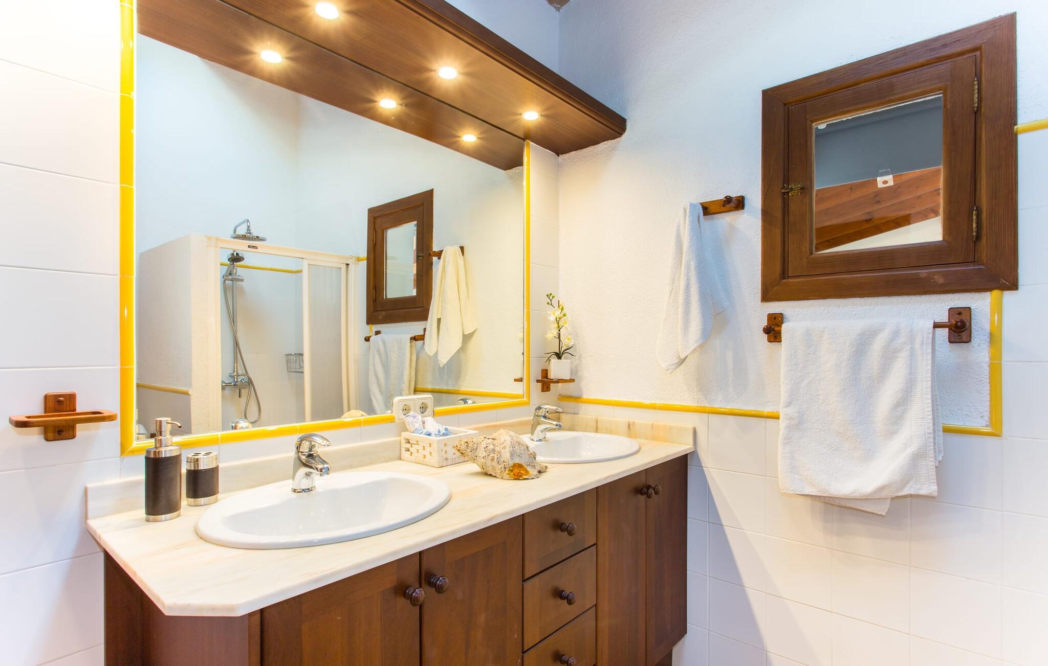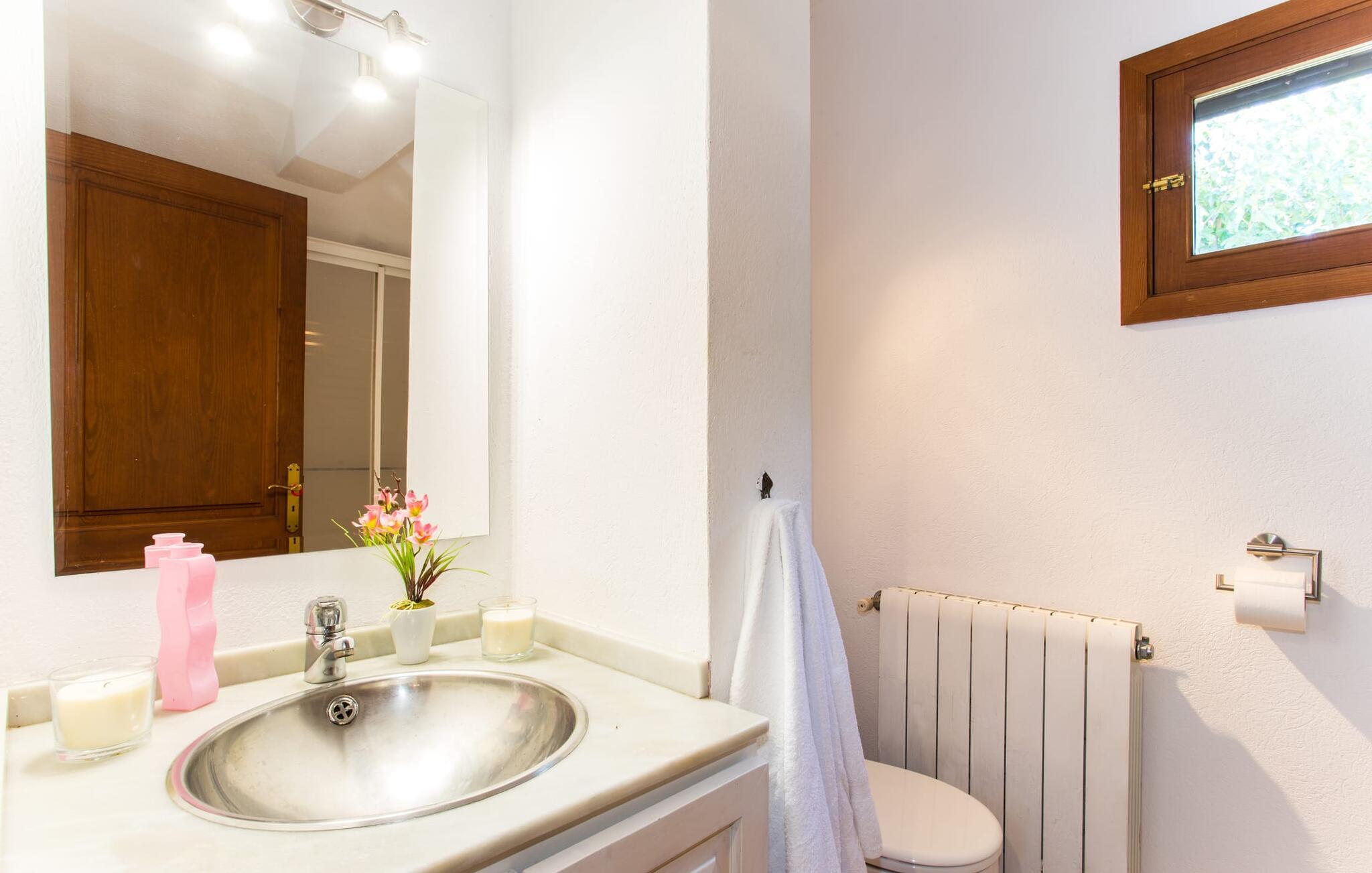 Selvom den er opkaldt efter den forhistoriske struktur fra Talayot-perioden, der blev opdaget i nærheden, går denne familie- og frem for alt cykelvenlige villa (med forskellige tjenester, som udlejeren tilbyder) midt i naturen ikke tilbage til antikken. Ikke desto mindre er det værd at "udgrave" alle aktiver i den omfattende grund af "Puig de ses Toltes", især da nogle af de smukkeste dele af bygningen er skjult under frodig vegetation. I kan prøve at få jeres hund og hans talentfulde næse til at hjælpe jer med at afdække dem alle! Nogle af disse fordele er: den fantastiske udsigt over Serra de Calicant, som I kan nå på cykel mod Petra og Ariany; den separate solterrasse med sommerlounge ved den børnesikre pool; grillen under baldakinen med atmosfæren af en italiensk piazza; afslapningsområdet med hængekøjer under træer og de små møblerede terrasser ved siden af bygningen. I vil helt sikkert finde endnu flere fortryllende detaljer på billederne! Det er meget muligt, at I ender med at tilbringe hele jeres ferie i villaen. Værelserne i "Puig de Ses Toltes" er et perfekt sted at slappe af - især mastersuiten i stueetagen med et moderne badeværelse med integreret bruser. OBS: Tv-hjørnet kunne friste jer til at blive sofakartoffel. Yderligere tre hyggeligt indrettede værelser i stueetagen og et åbent rum på øverste etage (med eksklusiv adgang til soldækket) deler de to andre badeværelser. Det er ganske vist ikke meget, men med lidt planlægning er det bestemt muligt. Tilføj de tre ekstra senge, og det kan ende med at blive lidt for behageligt. Mens nogle er i bad, kan andre gå i køkkenbaren til dagens første espresso og derefter gå udenfor på jagt efter det perfekte morgenmadssted. Køkkenet består af to dele og er dygtigt integreret i stuen. Den er stor nok til, at flere personer kan tilberede lækre æg og bacon for at give jer nok energi til jeres cykeltur. Pejsen er det perfekte sted at tilbringe sent om aftenen med at planlægge den næste dag på stranden, jeres næste dagstur eller diskutere de forskellige mulige ruter. Alternativt kan I også oliere jeres muskler med stærke væsker. Rummeligheden og indretningen af denne villa kan bruges på mange måder - kontakt os venligst, hvis I gerne vil rejse med mere end 8 personer. Der er mange skjulte skønheder at opdage i dette middelhavslandskab. Den lille by Sant Llorenç har fået tilnavnet Cardassar ("i tidslerne"), siden en figur af Madonnaen blev fundet i buskene. Denne lille og ryddelige by har nogle hyggelige butikker og restauranter, så I behøver ikke at gå langt, hvis det er det, I leder efter. Derudover er der på den sydøstlige kyst mellem Cap d'es Pinar i nord og Punta de sa Roca i nord en masse travlhed, maritim flair og smukke strande som Sa Marjal eller Sa Coma i syd. Med Serra de Calicant bag sig og kun 12 km fra de populære strande i den østlige del af øen, lover villaen "Puig de ses Toltes" at blive et tilbagetog eller begyndelsen på absolut fred og nærhed til naturen. Pretty San Lorenzo byder på dejlige butikker og restauranter. Med byliv til venstre (Manacor) og bjerglandsbycharme til højre (Artà), afmærkede cykelstier lige uden for døren samt havneflair og promenader, kan I opdage øen - i bil, til fods eller på cykel.