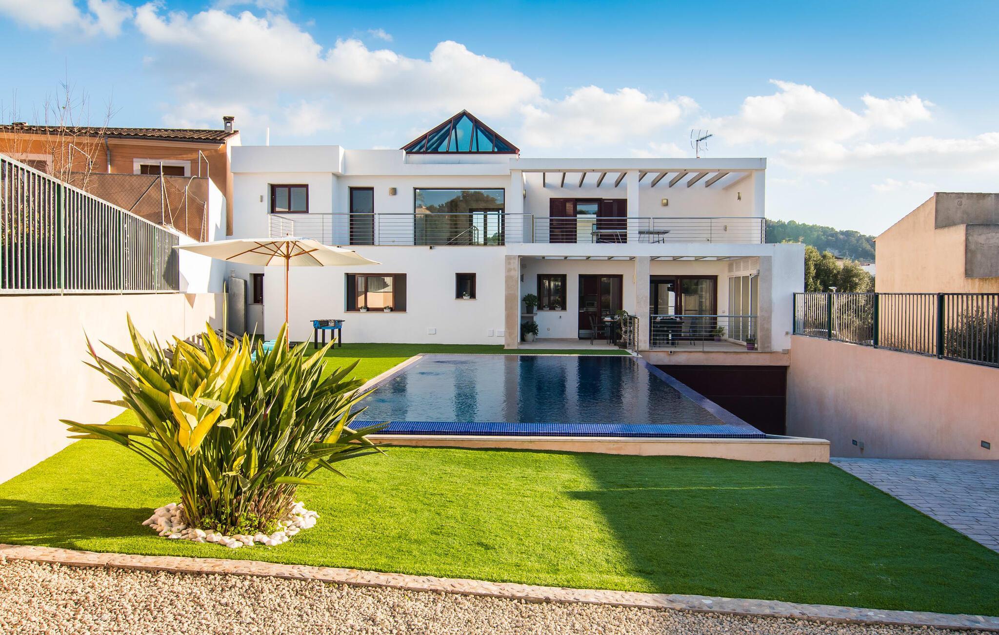 Har du en passion for moderne arkitektur? Kan du lide store, lyse rum og klare linjer? Og værdsætter du at have alt inden for rækkevidde, når du er på ferie – fra supermarkedet til restauranter og caféer til omfattende indkøbsmuligheder? Så er der en god chance for, at du vil føle dig hjemme i den super smarte villa “Puig Verd”! Det lyse hvide hus med sit spektakulære glastag ligger på en typisk villavej i Felanitx. Fra den overdækkede terrasse med spisebord og stole i stueetagen samt den delvist overdækkede tagterrasse kan I se ud over de skønt grønne omkringliggende bakker - og over den store infinity pool lige bag huset. Du kan nyde den varmende sol på komfortable liggestole lige ud til det kølige vand eller fordybe dig i en spændende krimi under parasollen. Blot et par meter væk ligger den in-house grill, som inviterer dig til at tilberede kulinariske delikatesser i det fri. Og hvis du vil have lidt motion bagefter, er det bare at gå ovenpå og spille et spil bordtennis på den rummelige tagterrasse. Dette er et Fincallorca feriehus. Værelserne i din villa strækker sig over to etager. Store vinduer lukker det typiske middelhavslys ind overalt; Denne effekt forstærkes af de sprøde hvide vægge, der findes i de fleste rum. En rummelig spise- og opholdsstue venter på dig i stueetagen: med et elegant glas spisebord med stole, oplyst af en futuristisk udseende lampe og en indbydende sofa med hyggelige puder og et sofabord til snacks og drinks under en hyggelig aften med at se tv . Villaen byder dog på meget mere spænding end et fjernsyn - og bekvemt er der en blød lænestol lige foran den: ejerne af villaen har installeret et kæmpe tropisk akvarium i stuen, med eksotiske, farverige fisk, der svømmer mellem smukke koraller . Det stilrene køkken med højkvalitets hvidevarer er også farverigt indrettet i røde og grønne toner. To smagfuldt indrettede soveværelser og to badeværelser, hvoraf det ene er en-suite, fuldender boligarealet i stueetagen. Ovenpå er der yderligere to soveværelser med private badeværelser. "Puig Verd" ligger midt i Felanitx, en afslappet by i det sydlige Mallorca og også centrum for den næststørste vinregion på øen. Fra dit sommerhus, der ligger direkte på villavejen, kan du nemt og bekvemt gå ind i landsbyen, shoppe eller besøge en eller to restauranter. Udover de gode egnsvine bør du bestemt prøve de aromatiske kapers, der dyrkes i området. Et besøg på det ugentlige marked om søndagen er altid umagen værd, især de kunstneriske keramiske stykker er meget populære her. Men det omkringliggende område af byen er også interessant: for eksempel klosteret St. Salvador, som ligger på en imponerende bakke i nærheden - du kan endda se det fra huset. Ikke alene er klostret med sin storslåede kirke et besøg værd, panoramaudsigten derfra vil også sikre et uforglemmeligt ferieminde! Hvis du foretrækker at tage til stranden, skal du blot køre cirka 14 km til Cala Murada eller Cala Tropicana. I øvrigt: Cykelforretningen "Els" ligger 100 m fra huset. Hvert ophold i villaen får 10% rabat på alle produkter og tjenester. Der er også gode forbindelser til cykelstierne omkring huset. Har du selv medbragt cykler, kan du parkere dem i det fredede område på den nederste overdækkede terrasse. Villa "Puig Verd" imponerer på alle niveauer: Det supermoderne hus med møbler af høj kvalitet er et sandt højdepunkt for arkitekturelskere, ikke kun med sine delvist overdækkede terrasser på flere niveauer og dets glashvælvede loft. Den scorer også point med sin store, skrånende pool og velholdte græsplæne – og sidst men ikke mindst sin fremragende beliggenhed i den afslappede lille by Felanitx på det sydlige Mallorca. For en dag på stranden skal du kun køre cirka 14 km, for eksempel til Cala Murada.