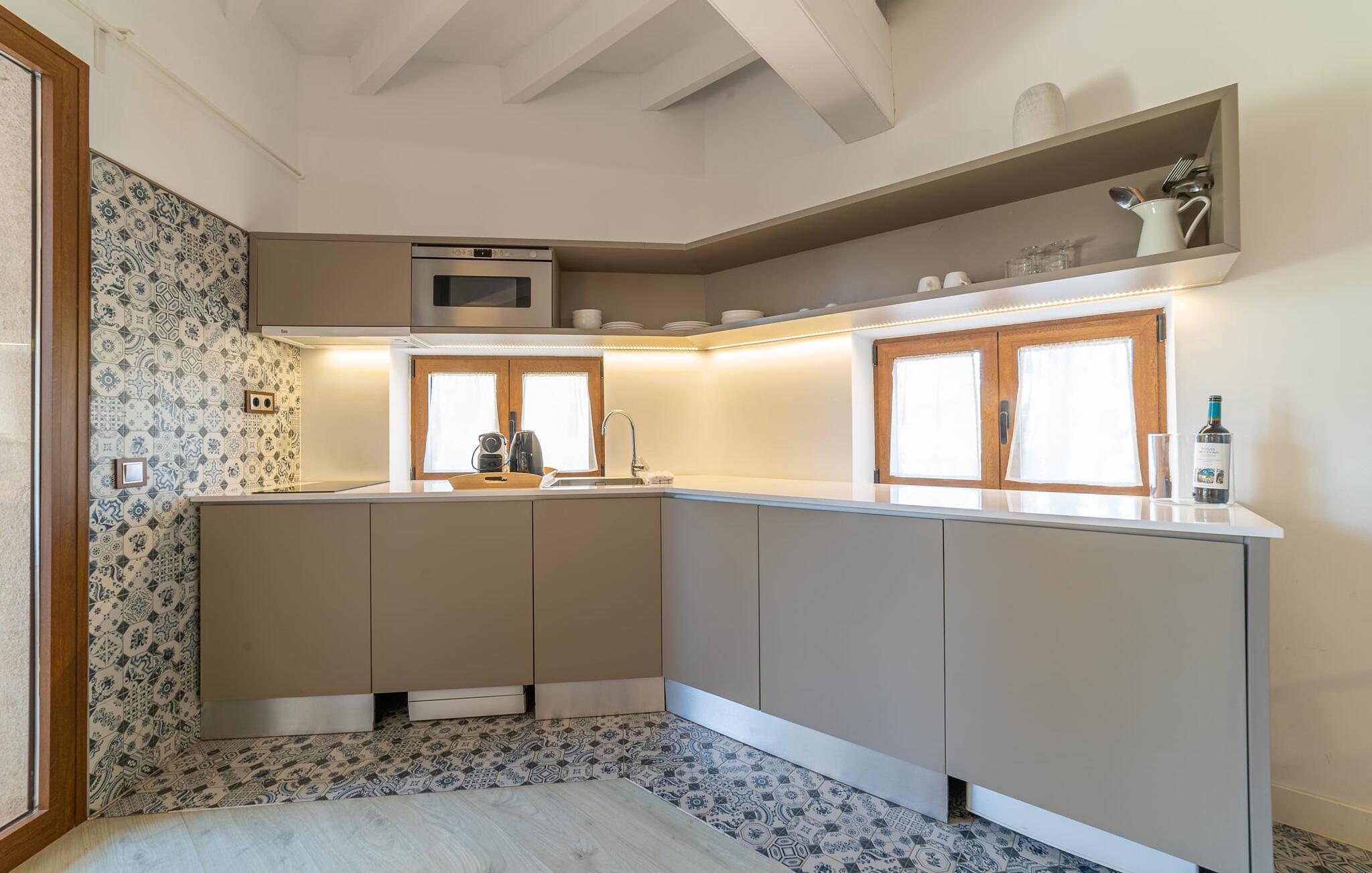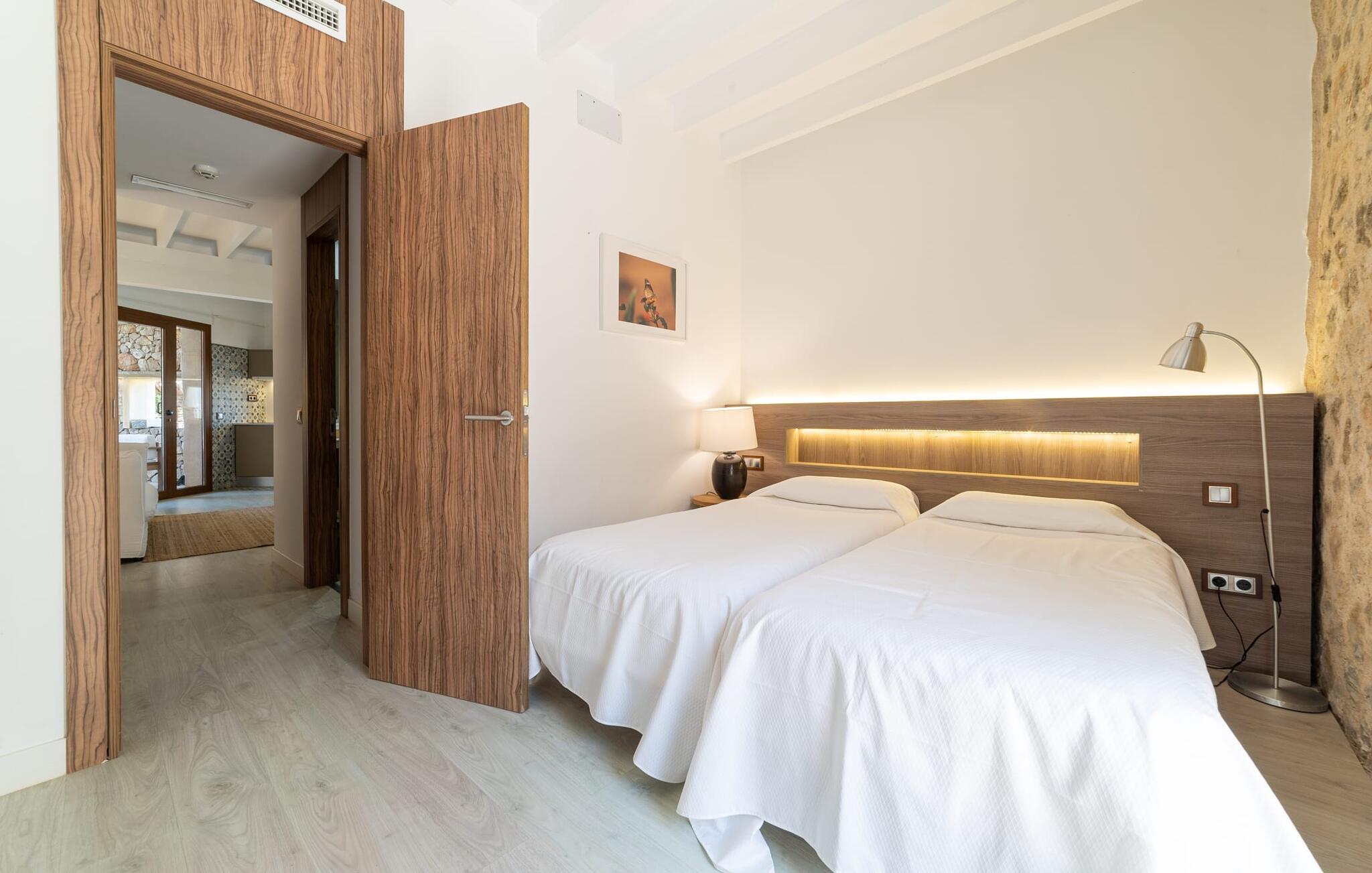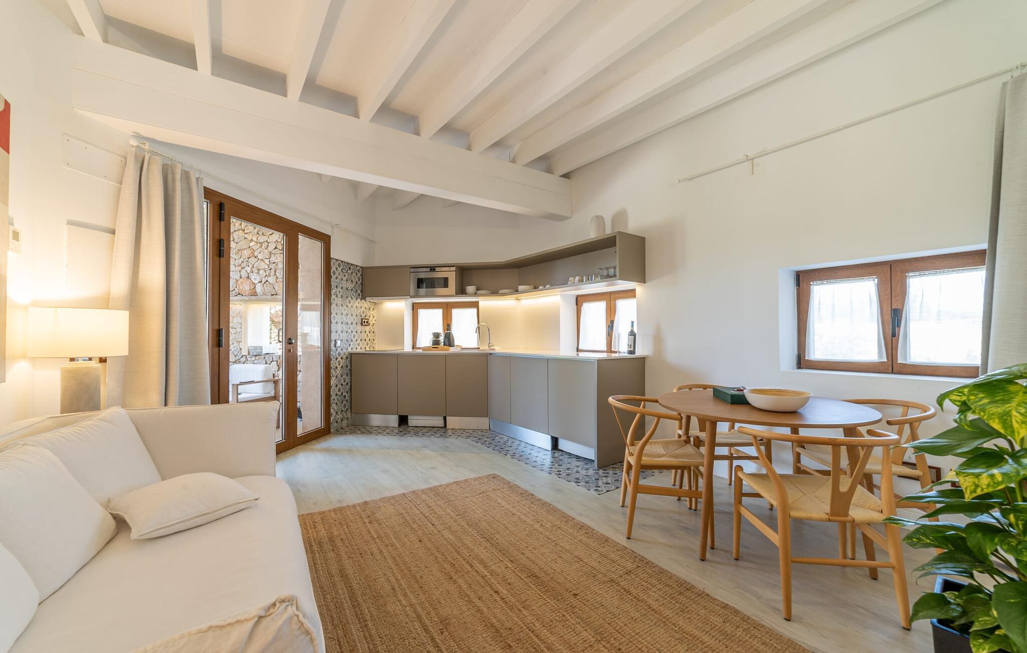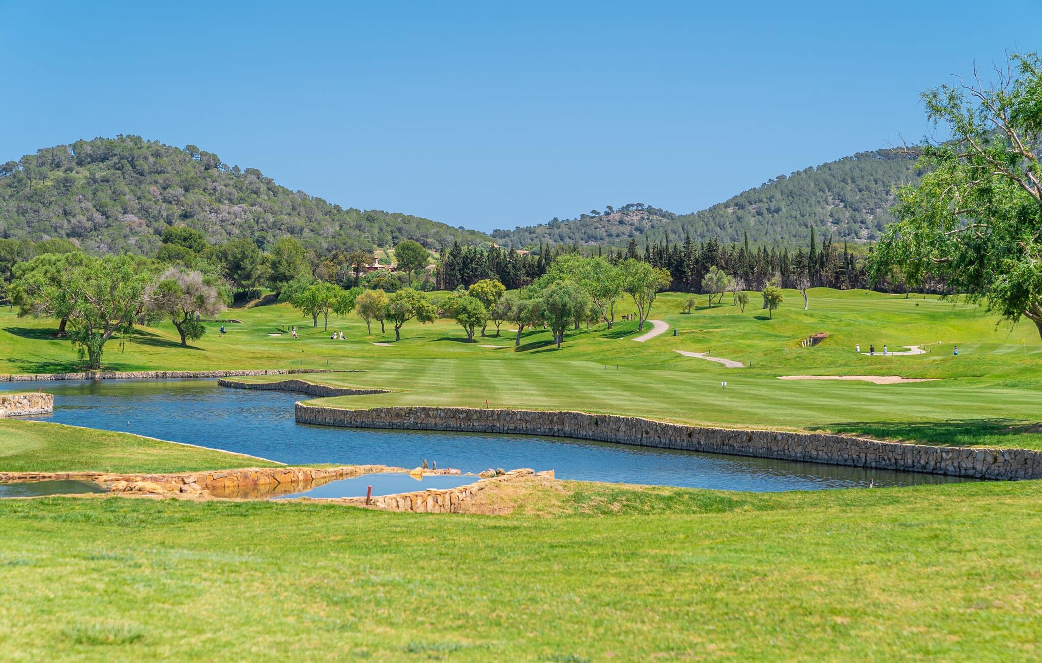 På dette familiedrevne resort vil I blive budt velkommen med den varme gæstfrihed, der er typisk for Mallorca. Den populære Pula golfbane, grundlagt i 1995 og redesignet af Jose Maria Olazabal i 2006, har været vært for meget vigtige begivenheder og har en stor driving range med to niveauer, hvoraf den ene er overdækket, samt to putting greens og en pitching green. En god service: Der er 20 % greenfee-rabat på den officielle pris for den tilsvarende sæson. Et vidunderligt smukt, velholdt anlæg indbyder ikke kun til golf, men også til omfattende afslapning udendørs. En absolut attraktion er den 10 meter lange pool omgivet af en storslået træpopulation med dens omgivende terrasse, som er udstyret med komfortable liggestole. I kan også tilbringe afslappende timer på den private terrasse med en smuk udsigt. Den gamle herregård fra 1581, som er blevet fuldstændig moderniseret, rummer nutidens faciliteter som overnatningsstedet og country club. Efter en dag med golf kan I slappe af i resortets sauna, fitnessområde og indendørs pool, og en massageservice er også tilgængelig, hvis det kræves. I den integrerede restaurant "S'era de Pula" kan I nyde ikke kun det meget gode middelhavskøkken, men også den elegante, rustikke stil og den smukke udsigt over golfbanen. Lejligheden "Pula Golf Resort 1" imponerer med sin trendy atmosfære: hvide vægge, moderne gulve og klinker i kombination med æstetiske møbler skaber straks en moderne ø-følelse. Udstyret byder på en lang række muligheder for et værdigt indendørs ophold og selvfølgelig også for selvstændig selvforsørgelse på ferien. De bor i stueetagen og har tekøkken, spiseplads og opholdsstue. I finder en god nats søvn i det stilfuldt indrettede soveværelse med dobbeltseng og på sovesofaen. Det stilfulde badeværelse har bruseniche. Meget behagelig: Takket være det varme-kolde klimaanlæg kan I nyde perfekte indendørstemperaturer året rundt. Som en særlig ekstra, er der også en daglig rengøring, som er gratis. Vores konklusion: Denne lejlighed på Mallorca tilbyder en enestående beliggenhed og kombinerer den med en meget bred vifte af faciliteter og wellness-tilbud! Pula golfbanen ligger i et af de smukkeste områder på Mallorca. Den moderne lejlighed "Pula Golf Resort 1" med en stor fælles pool og have samt et smukt udendørs landskab og privat terrasse ligger på den østlige del af øen direkte på golfbanen. De ligger mellem Cala Millor, Costa dels Pins og Capdepera og har på grund af deres nærhed til vejen fremragende shopping- og spisemuligheder i de omkringliggende landsbyer. Beliggenheden sikrer også, at I kan nå smukke bystrande som Canyamel eller Costa dels Pins på en behagelig køretid på kun 5-10 minutter.