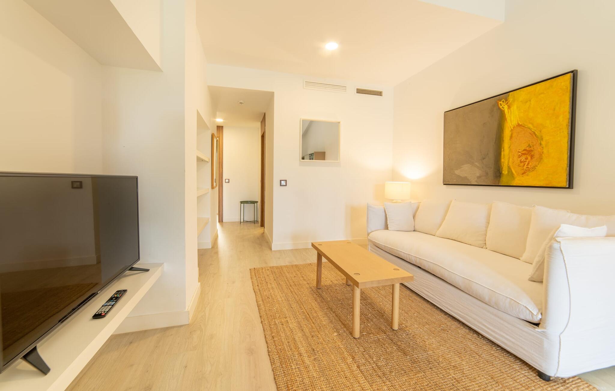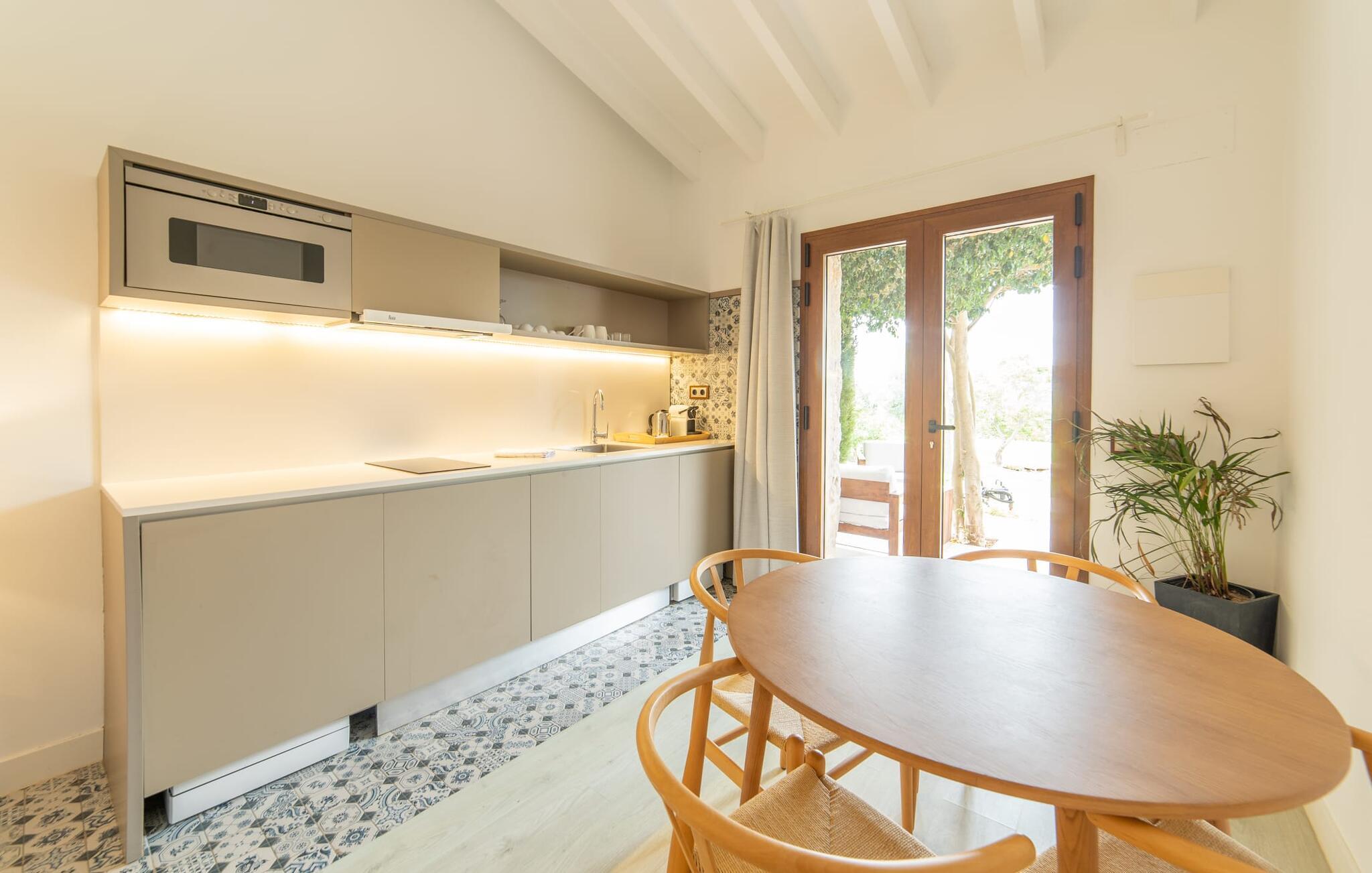 På dette familiedrevne resort vil I blive budt velkommen med den varme gæstfrihed, der er typisk for Mallorca. Den populære Pula golfbane, grundlagt i 1995 og redesignet af Jose Maria Olazabal i 2006, har været vært for meget vigtige begivenheder og har en stor driving range med to niveauer, hvoraf den ene er overdækket, samt to putting greens og en pitching green. En god service: Der er 20 % greenfee-rabat på den officielle pris for den tilsvarende sæson. Et vidunderligt smukt, velholdt anlæg indbyder ikke kun til golf, men også til omfattende afslapning udendørs. En absolut attraktion er den 10 meter lange pool omgivet af en storslået træpopulation med dens omgivende terrasse, som er udstyret med komfortable liggestole. I kan også tilbringe afslappende timer på den private terrasse med en smuk udsigt. Den gamle herregård fra 1581, som er blevet fuldstændig moderniseret, rummer nutidens faciliteter som overnatningsstedet og country club. Efter en dag med golf kan I slappe af i resortets sauna, fitnessområde og indendørs pool, og en massageservice er også tilgængelig, hvis det kræves. I den integrerede restaurant "S'era de Pula" kan I nyde ikke kun det meget gode middelhavskøkken, men også den elegante, rustikke stil og den smukke udsigt over golfbanen. Lejligheden "Pula Golf Resort 7" imponerer med sin trendy atmosfære: hvide vægge, moderne gulve og klinker i kombination med æstetiske møbler skaber straks en moderne ø-følelse. Udstyret byder på en lang række muligheder for et værdigt indendørs ophold og selvfølgelig også for selvstændig selvforsørgelse på ferien. De bor i stueetagen og har tekøkken, spiseplads og opholdsstue. I finder en god nats søvn i det stilfuldt indrettede soveværelse med dobbeltseng og på sovesofaen. Det stilfulde badeværelse har bruseniche. Meget behagelig: Takket være det varme-kolde klimaanlæg kan I nyde perfekte indendørstemperaturer året rundt. Som en særlig ekstra, er der også en daglig rengøring, som er gratis. Vores konklusion: Denne lejlighed på Mallorca tilbyder en enestående beliggenhed og kombinerer den med en meget bred vifte af faciliteter og wellness-tilbud! Pula golfbanen ligger i et af de smukkeste områder på Mallorca. Den moderne lejlighed "Pula Golf Resort 7" med en stor fælles pool og have samt et smukt udendørs landskab og privat terrasse ligger på den østlige del af øen direkte på golfbanen. De ligger mellem Cala Millor, Costa dels Pins og Capdepera og har på grund af deres nærhed til vejen fremragende shopping- og spisemuligheder i de omkringliggende landsbyer. Beliggenheden sikrer også, at I kan nå smukke bystrande som Canyamel eller Costa dels Pins på en behagelig køretid på kun 5-10 minutter.