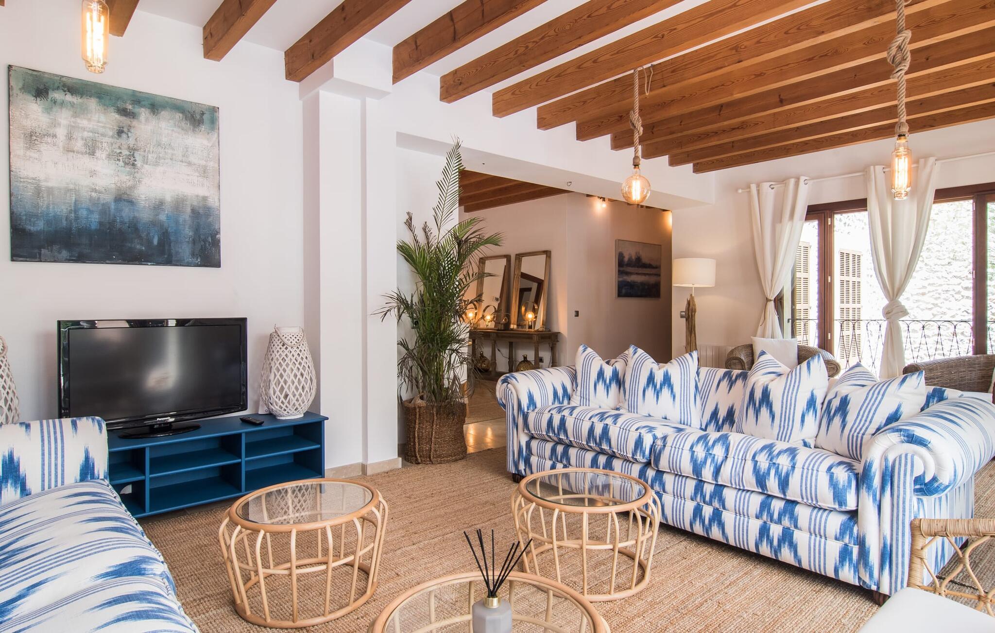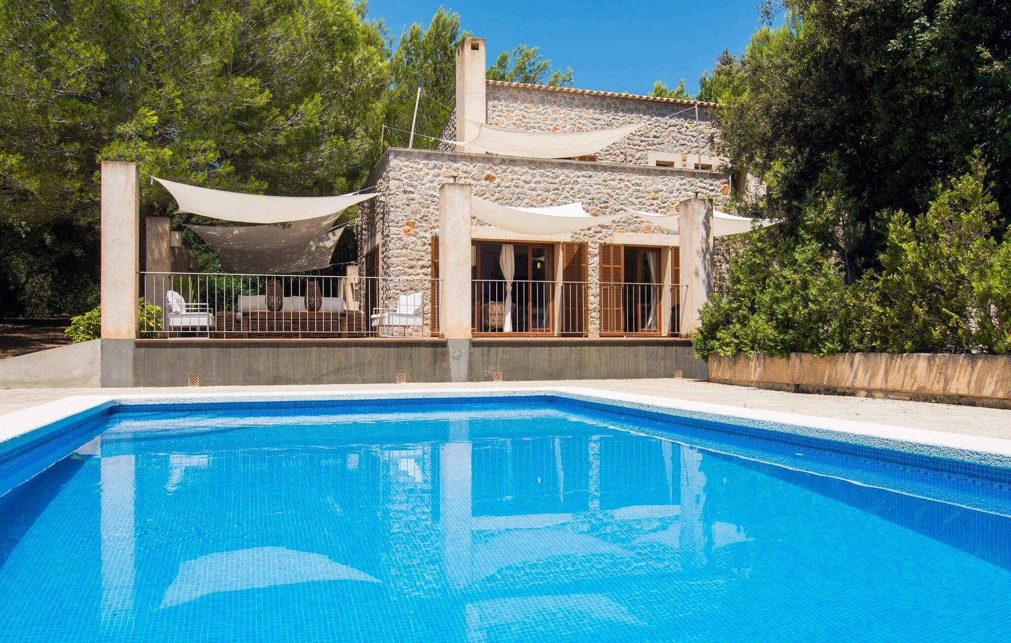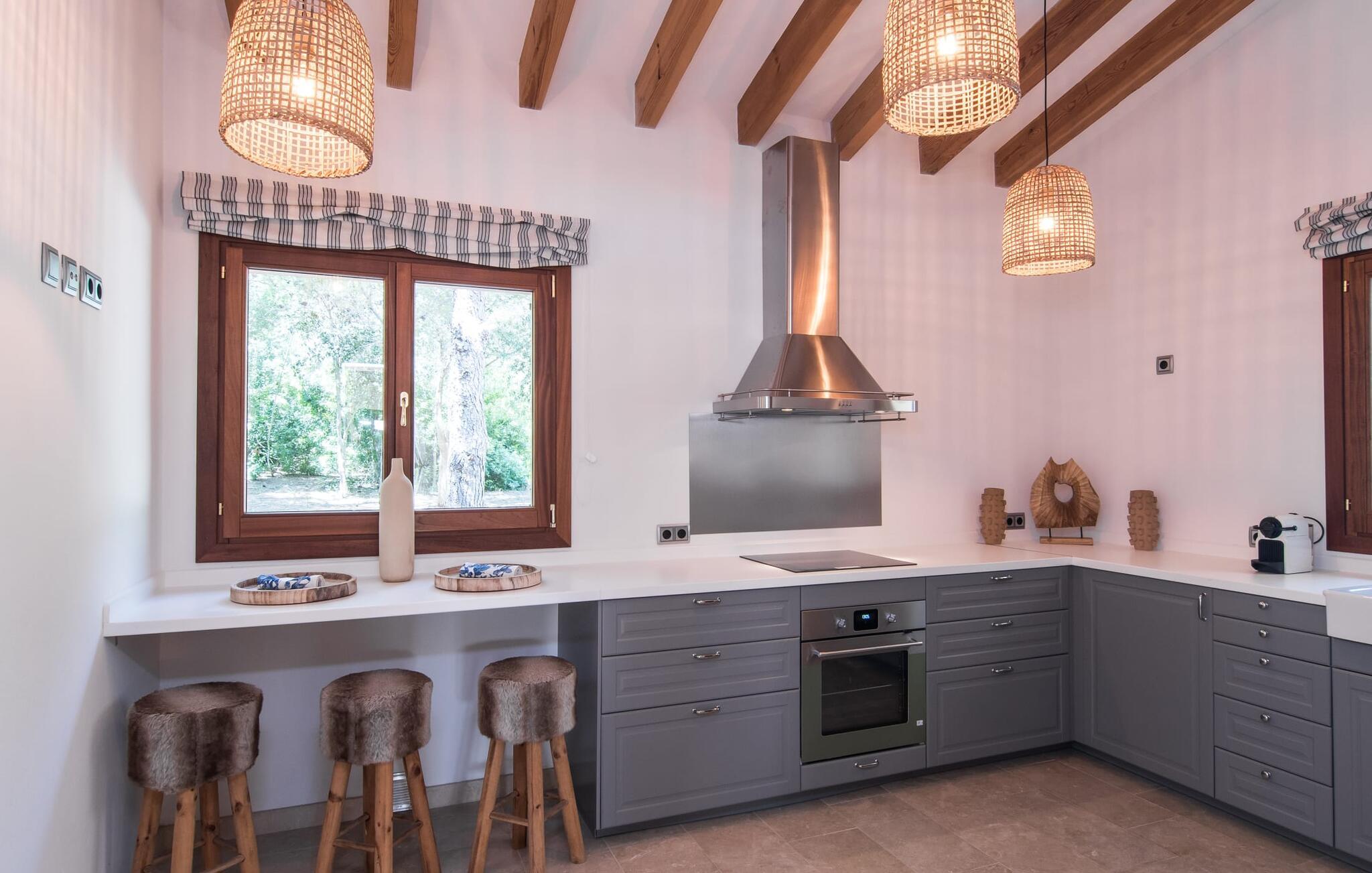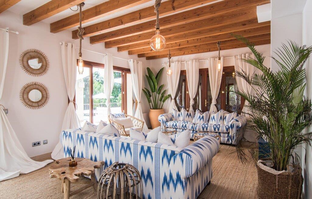 Med sit stolte navn afslører "Pula One" allerede lidt om det unikke ved denne ejendom, som fortsætter med at imponere os på trods af vores mange års erfaring. Skjult af fyrretræer (passende da den nærmeste by er Costa dels Pins), glæder villaen besøgende med sit overdådigt designede udendørsområde. Det bidrager den helt afsidesliggende pool dekoreret med blå mosaikfliser. Det er indrammet af et omgivende loungeområde, hvor luksuriøse hvilestole kan placeres i den naturlige skygge eller under parasollerne. Om sommeren inviterer de to daybeds i Bali-stil jer ikke kun til en middagssiesta, men tilbyder også et attraktivt sted for en mild sommernat under stjernehimlen. Terrassen er direkte over poolområdet. Kurvemøblerne fremstår ved første øjekast ru, men er blevet elegant sammensat med delikate, komfortable udendørs metalsofaer. De to siddepladser og spisebordet er indrettet i naturlige farver og materialer. Selv parasollen er lavet af luftige sejl, som ikke kun giver skygge, men også forbinder hele opholdsrummet med verandaen. Dette værelse afslører det enkle ønske om at leve af høj kvalitet! Det detaljerede design får vores hjerter til at banke hurtigere – det gælder uden begrænsninger både ude og inde. Lyse, subtile farver som varme brune og beige toner samt naturlige materialer som raffia, træ og flet kombineres for at skabe en smagfuld indretningsstil. De komfortable sofaer har mallorcanske elementer som Teixit de Lliggos - et lærred med et mønster, der minder om flimrende flammer. På en hvid overflade trykt med den traditionelle farve blå giver de opholdsområdet en maritim lethed. Den tilstødende spiseplads blev placeret foran gulv-til-loft vindueselementerne ud mod terrassen. Det fuldt udstyrede, stengrå landhuskøkken fortsætter den moderne komfort, som I ikke vil undvære på ferien (du kan selvfølgelig også supplere jeres måltider med lækkerier fra grillen). Apropos komfort: Det gælder også de tre soveværelser, som suppleres af i alt tre trendy badeværelser med bruseniche – så I nyder godt af absolut privatliv, selvom I rejser med en anden familie. Omhyggeligt udvalgt tilbehør som lamper, spejle og billeder i fototapetstil fuldender det udtryksfulde ensemble. Hos "Pula One" vil selv designelskere få noget for pengene, når det kommer til indretningen – men det er bedst at se selv. Den østlige del af øen, som også omfatter den velhavende villaby Costa dels Pins, er præget af et fascinerende samspil mellem (delvist... uberørte) sandstrande og den blide bjergkæde Serra de Llevantes, der ikke hæver sig over 600 m. De bølgende bakker adskiller de smukke byer som Costa del Pins og Canyamel. Takket være dens beliggenhed på den let hørbare landevej, kan I hurtigt nå de omkringliggende små byer, som hver især har sin egen charme: middelalderens Artà med sin fæstning, gågade og gode restauranter; den lige så ærværdige Capdepera med sit slot og panoramaudsigt; og den livlige kystby Cala Ratjada. Vandsport, svømning, golf på en af de omkringliggende premium-baner eller vandrestier langs kystbyerne byder på en masse variation i denne naturskønne region. Den inspirerende designervilla "Pula One" med stor pool, have og smukt udendørs landskab ligger på den østlige del af øen. Den smukke ejendom er beliggende mellem Cala Millor, Costa dels Pins og Capdepera. De omkringliggende byer byder på fremragende shoppingmuligheder – og glem ikke at prøve nogle af de gode restauranter. Den kystnære beliggenhed betyder, at I kan nå smukke bystrande som Canyamel eller Costa dels Pins på kun 5-10 minutter i bil.