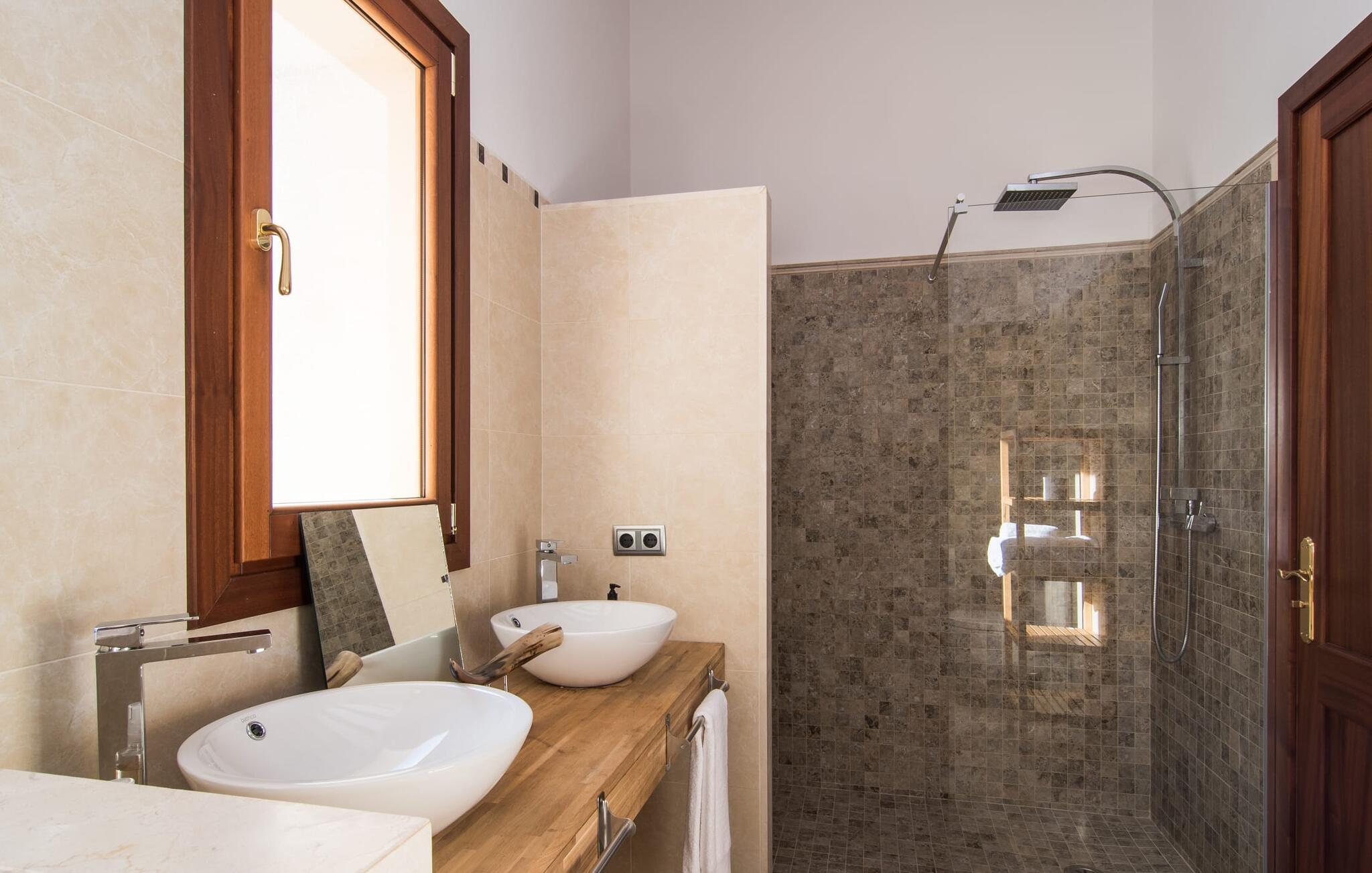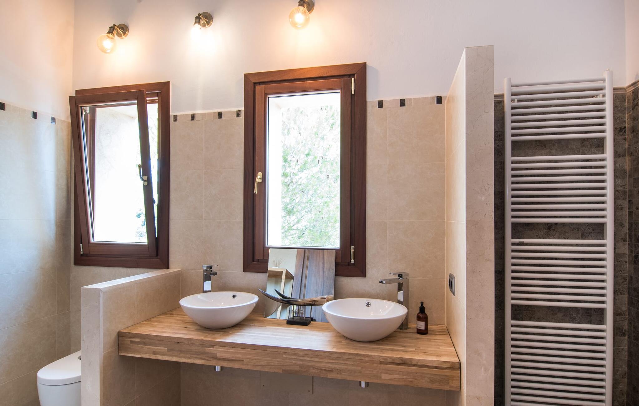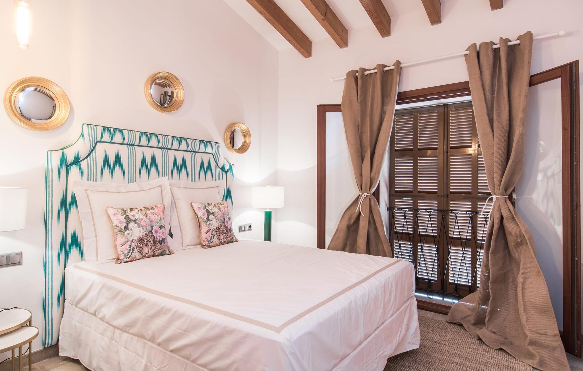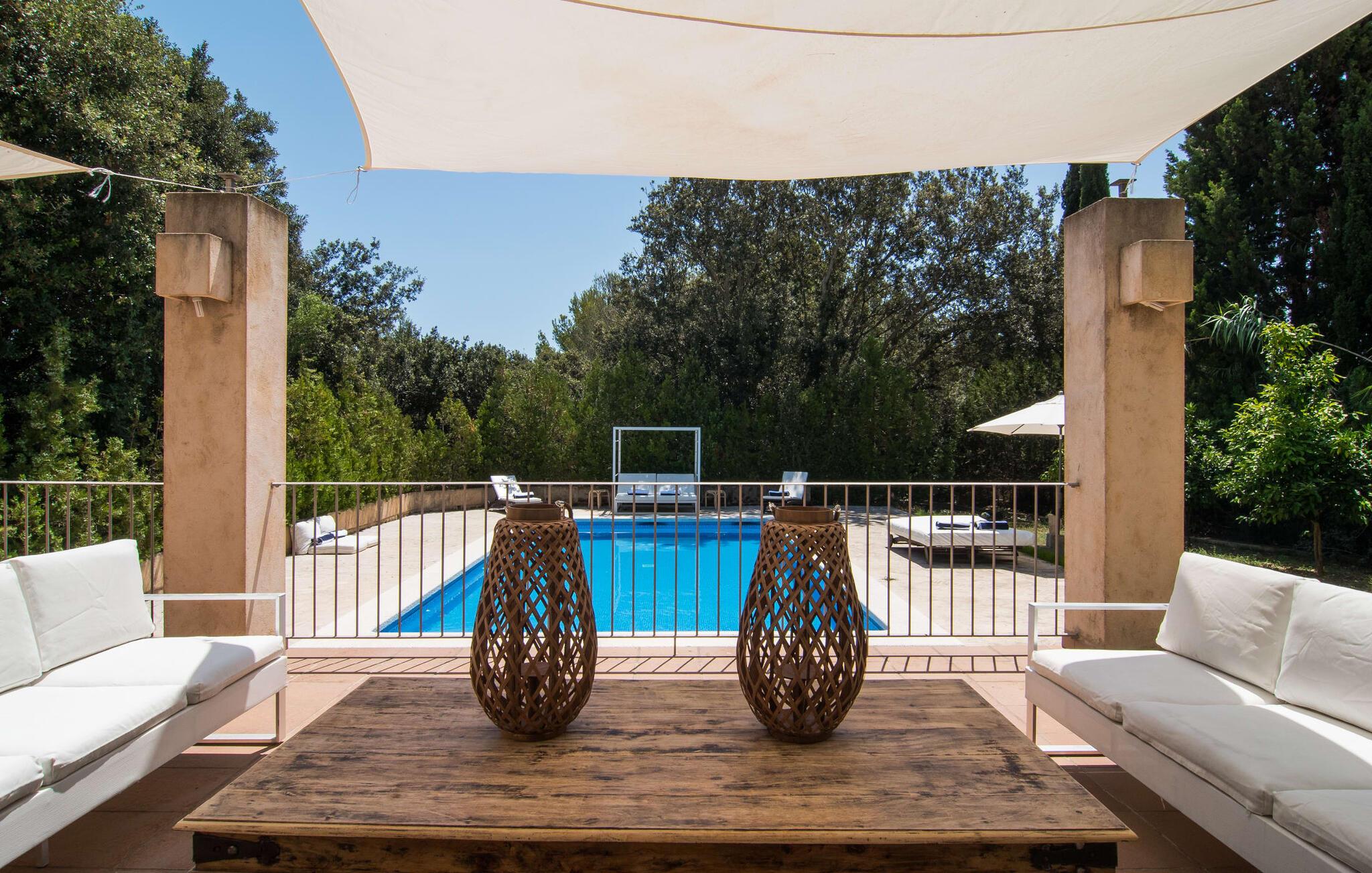 Med sit stolte navn afslører "Pula One" allerede lidt om det unikke ved denne ejendom, som fortsætter med at imponere os på trods af vores mange års erfaring. Skjult af fyrretræer (passende da den nærmeste by er Costa dels Pins), glæder villaen besøgende med sit overdådigt designede udendørsområde. Det bidrager den helt afsidesliggende pool dekoreret med blå mosaikfliser. Det er indrammet af et omgivende loungeområde, hvor luksuriøse hvilestole kan placeres i den naturlige skygge eller under parasollerne. Om sommeren inviterer de to daybeds i Bali-stil jer ikke kun til en middagssiesta, men tilbyder også et attraktivt sted for en mild sommernat under stjernehimlen. Terrassen er direkte over poolområdet. Kurvemøblerne fremstår ved første øjekast ru, men er blevet elegant sammensat med delikate, komfortable udendørs metalsofaer. De to siddepladser og spisebordet er indrettet i naturlige farver og materialer. Selv parasollen er lavet af luftige sejl, som ikke kun giver skygge, men også forbinder hele opholdsrummet med verandaen. Dette værelse afslører det enkle ønske om at leve af høj kvalitet! Det detaljerede design får vores hjerter til at banke hurtigere – det gælder uden begrænsninger både ude og inde. Lyse, subtile farver som varme brune og beige toner samt naturlige materialer som raffia, træ og flet kombineres for at skabe en smagfuld indretningsstil. De komfortable sofaer har mallorcanske elementer som Teixit de Lliggos - et lærred med et mønster, der minder om flimrende flammer. På en hvid overflade trykt med den traditionelle farve blå giver de opholdsområdet en maritim lethed. Den tilstødende spiseplads blev placeret foran gulv-til-loft vindueselementerne ud mod terrassen. Det fuldt udstyrede, stengrå landhuskøkken fortsætter den moderne komfort, som I ikke vil undvære på ferien (du kan selvfølgelig også supplere jeres måltider med lækkerier fra grillen). Apropos komfort: Det gælder også de tre soveværelser, som suppleres af i alt tre trendy badeværelser med bruseniche – så I nyder godt af absolut privatliv, selvom I rejser med en anden familie. Omhyggeligt udvalgt tilbehør som lamper, spejle og billeder i fototapetstil fuldender det udtryksfulde ensemble. Hos "Pula One" vil selv designelskere få noget for pengene, når det kommer til indretningen – men det er bedst at se selv. Den østlige del af øen, som også omfatter den velhavende villaby Costa dels Pins, er præget af et fascinerende samspil mellem (delvist... uberørte) sandstrande og den blide bjergkæde Serra de Llevantes, der ikke hæver sig over 600 m. De bølgende bakker adskiller de smukke byer som Costa del Pins og Canyamel. Takket være dens beliggenhed på den let hørbare landevej, kan I hurtigt nå de omkringliggende små byer, som hver især har sin egen charme: middelalderens Artà med sin fæstning, gågade og gode restauranter; den lige så ærværdige Capdepera med sit slot og panoramaudsigt; og den livlige kystby Cala Ratjada. Vandsport, svømning, golf på en af de omkringliggende premium-baner eller vandrestier langs kystbyerne byder på en masse variation i denne naturskønne region. Den inspirerende designervilla "Pula One" med stor pool, have og smukt udendørs landskab ligger på den østlige del af øen. Den smukke ejendom er beliggende mellem Cala Millor, Costa dels Pins og Capdepera. De omkringliggende byer byder på fremragende shoppingmuligheder – og glem ikke at prøve nogle af de gode restauranter. Den kystnære beliggenhed betyder, at I kan nå smukke bystrande som Canyamel eller Costa dels Pins på kun 5-10 minutter i bil.