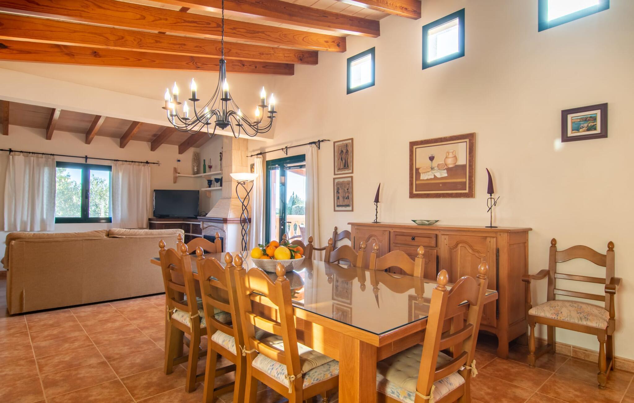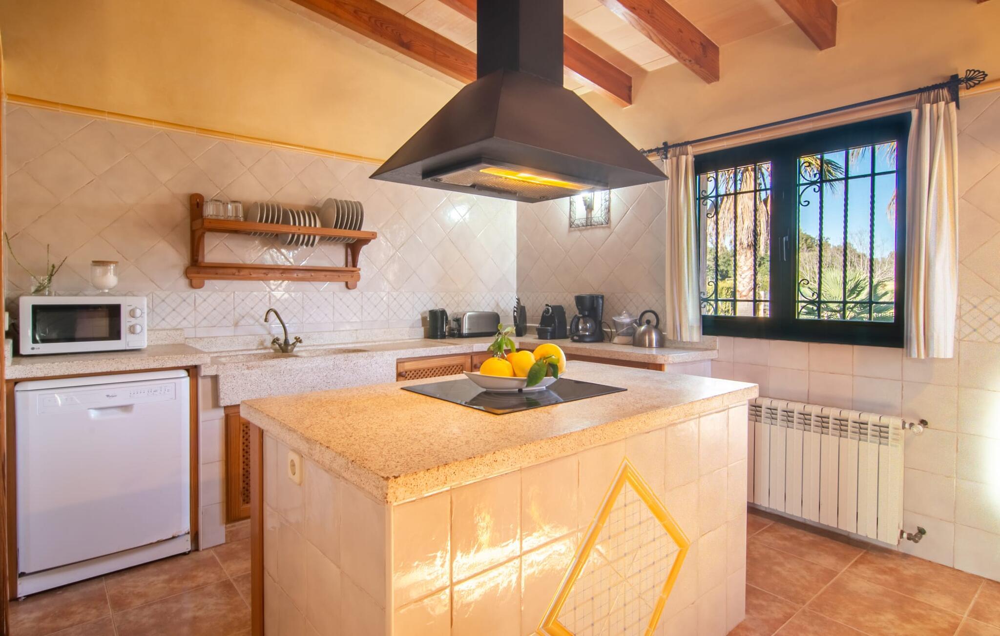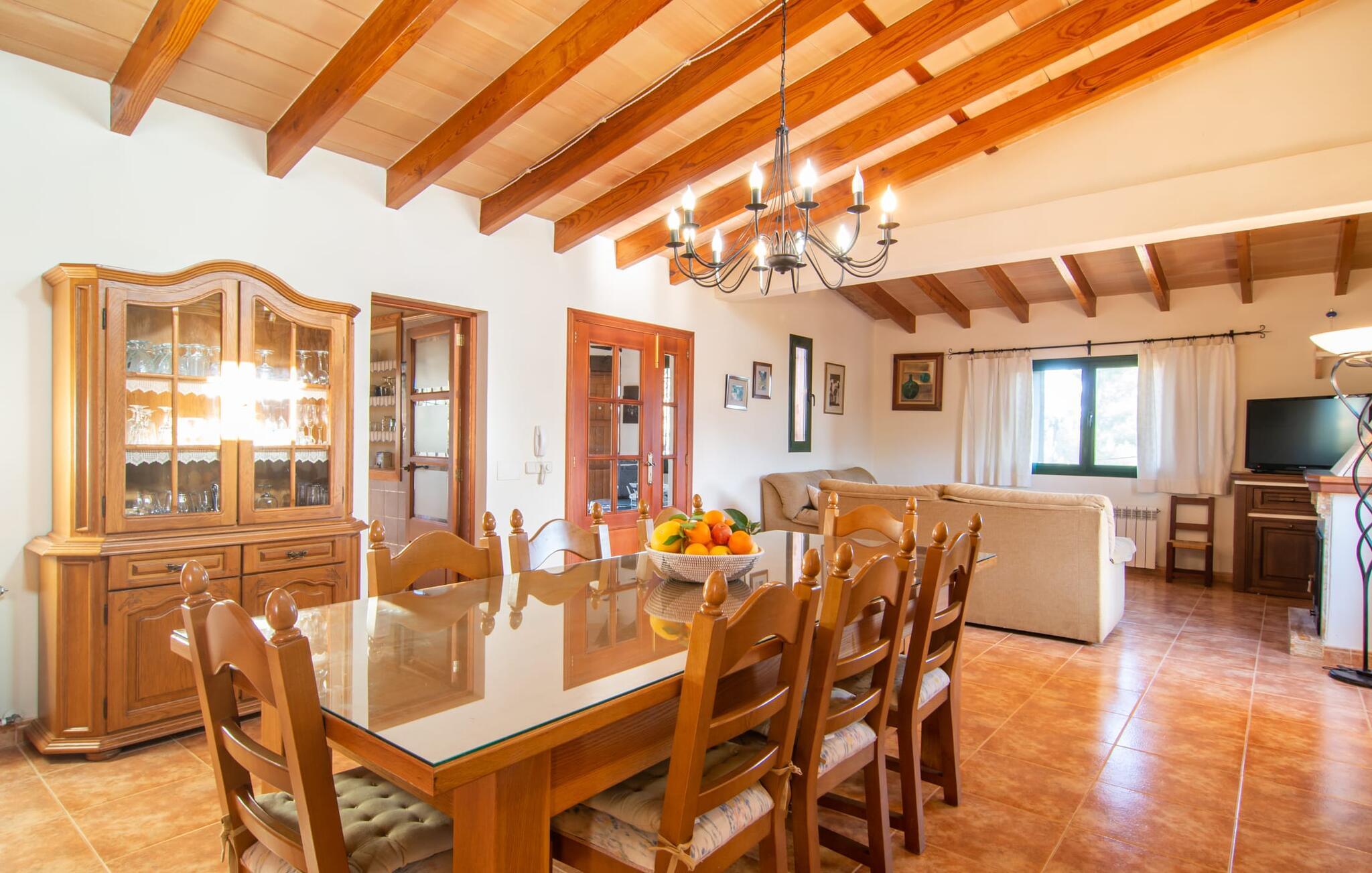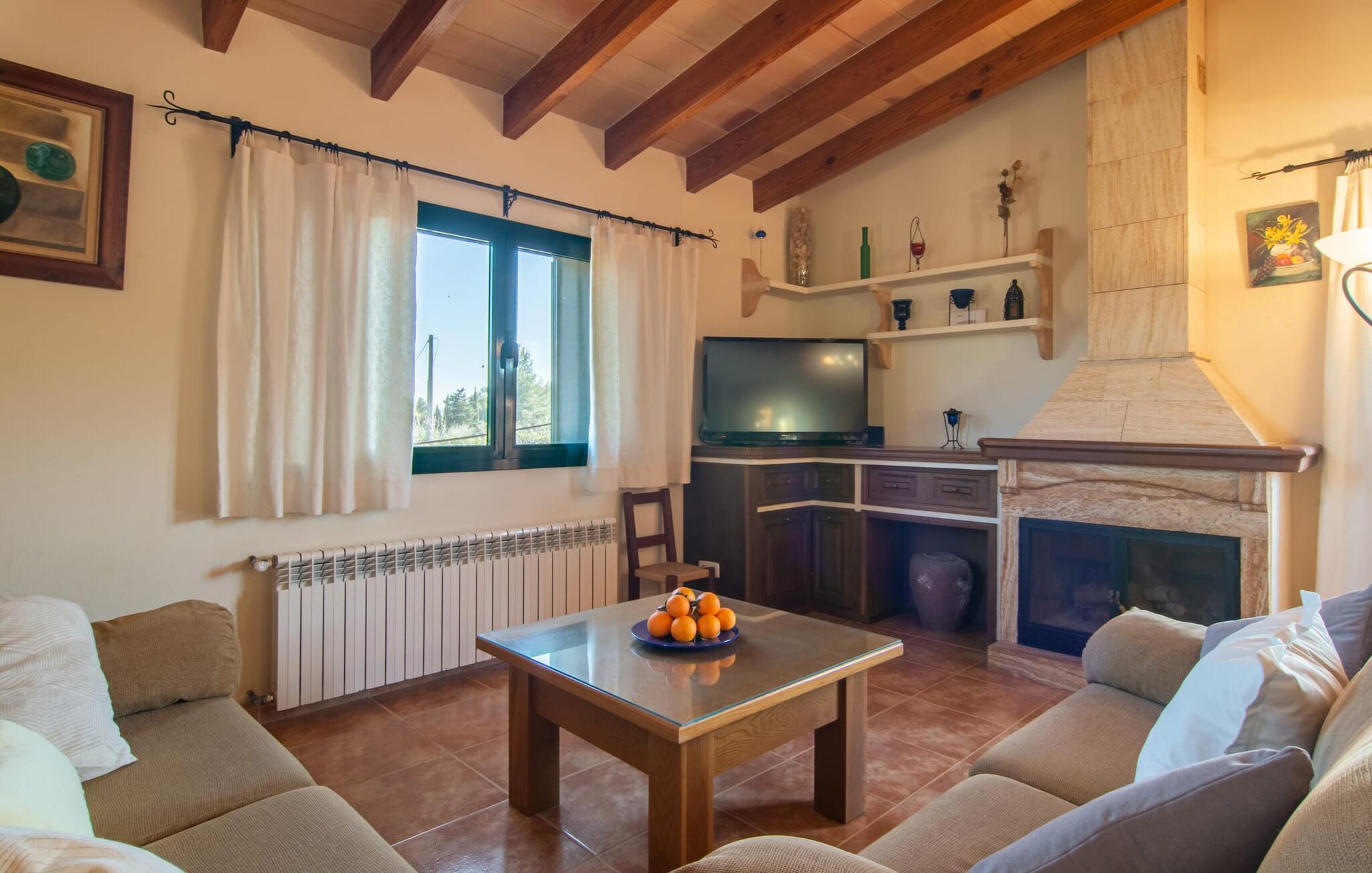 Denne vidunderlige rustikke og samtidig moderne finca i det østlige Mallorca imponerer ikke kun med sin familievenlige indretning, men også med sin charmerende landstedskarakter, som er tydeligt synlig både ude og inde. Det betyder, at feriehuset, der ligger vidunderligt ugeneret med mallorcansk bondegårdsflair, passer særligt godt ind i denne kystregion, som imponerer med sit blidt bakkede grønne landskab. Fincaen er omgivet af talrige træer og en frugthave. Samtidig byder det private poolområde med en omgivende terrasse på adskillige liggestole. Nogle af dem er beskyttet af en stilfuld pergola eller parasol. Der er også en børnegynge til rådighed for yngre besøgende, så de kan få aktiv underholdning. Der er behagelige udendørs siddepladser ved muret grill med integreret udekøkken. I kan nyde en vidunderlig udsigt fra den overdækkede altan med yderligere spiseplads på tagterrassen på første sal. Derfra har I direkte adgang til den rummelige stue med hyggelig pejs og åben spiseplads. Møblerne i den passende landhusstil afspejler den vellykkede symbiose af tradition og modernitet, som kun findes i fincaer på Mallorca. I det fuldt udstyrede køkken med en kogeø er det en fornøjelse at tilberede måltider sammen - for på en eller anden måde er det en del af en ferie at tilberede mad i en venlig atmosfære (selvfølgelig kan I inkludere grillen her). De hyggelige møbler med bløde farver skaber en behagelig atmosfære. Der er plads nok til op til syv personer og to babyer, hvilket gør fincaen ideel til en ferie med to familier. På stueplan på øverste etage er der et soveværelse med dobbeltseng med eget badeværelse og et andet rummeligt badeværelse. Yderligere tre soveværelser - to dobbeltværelser og et enkelt - er placeret i stueetagen og kan nås via en intern trappe fra opholdsstuen i åbent plan, ligesom et tredje badeværelse med badekar. Pula Viñas – dette behagelige navn resonerer med intensiteten af de endemiske vine, som I bestemt bør prøve under jeres ophold i dette fantastiske feriehus med pool. Denne rustikke, omfattende renoverede feriefinca imponerer med sin ejendom med en tilstødende frugthave, vidunderlige udendørs siddepladser og en privat pool. Det er tæt på den akustisk mærkbare landevej, der fører langs Mallorcas østkyst til Cala Ratjada. De smukke landsbyer Son Servera eller Costa del Pins kan nås på cirka 5 minutter og byder på gode shoppingmuligheder. En fin sandstrand, også kaldet Sa Marjal, venter på jer i Costa des Pins.