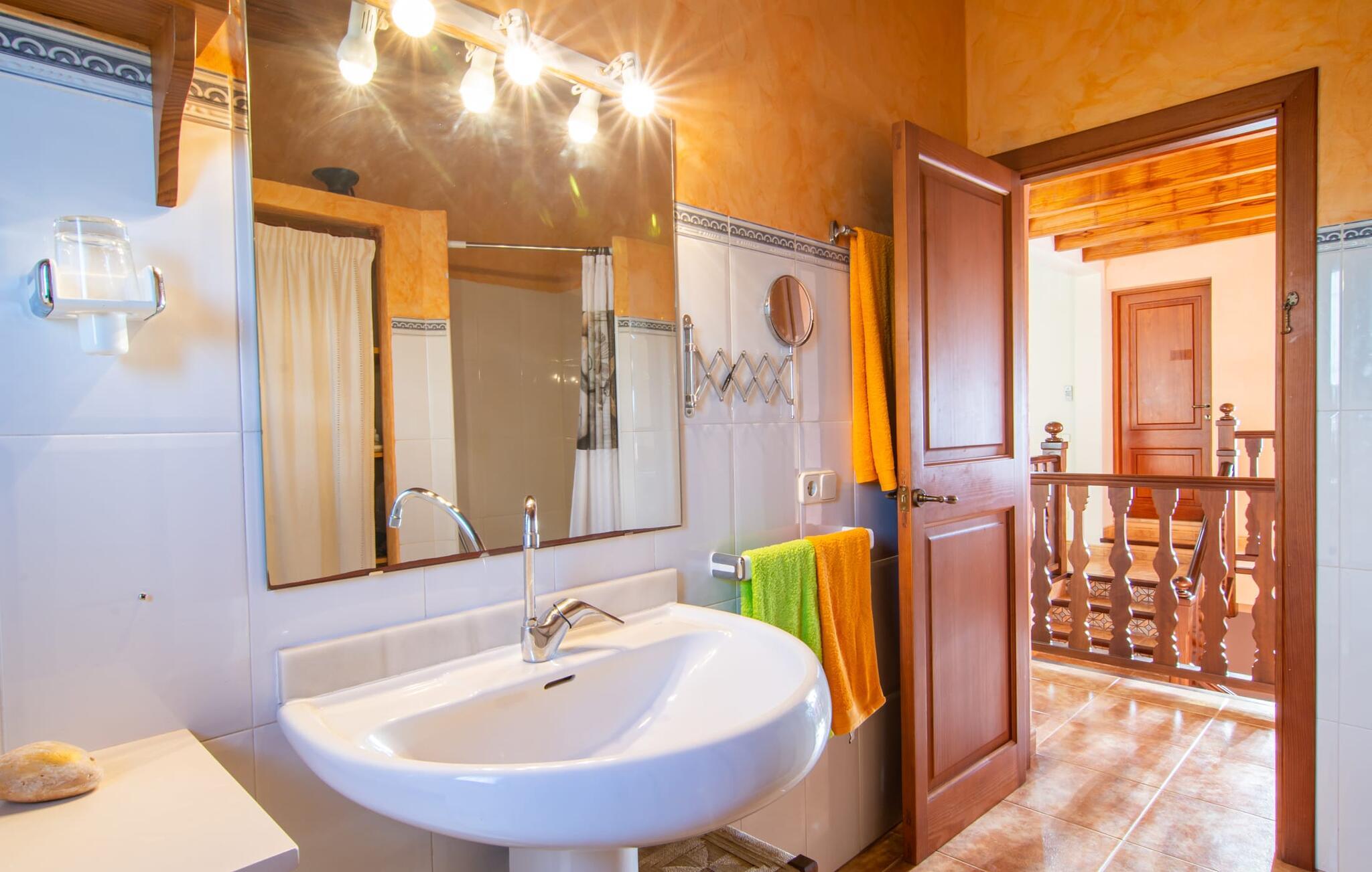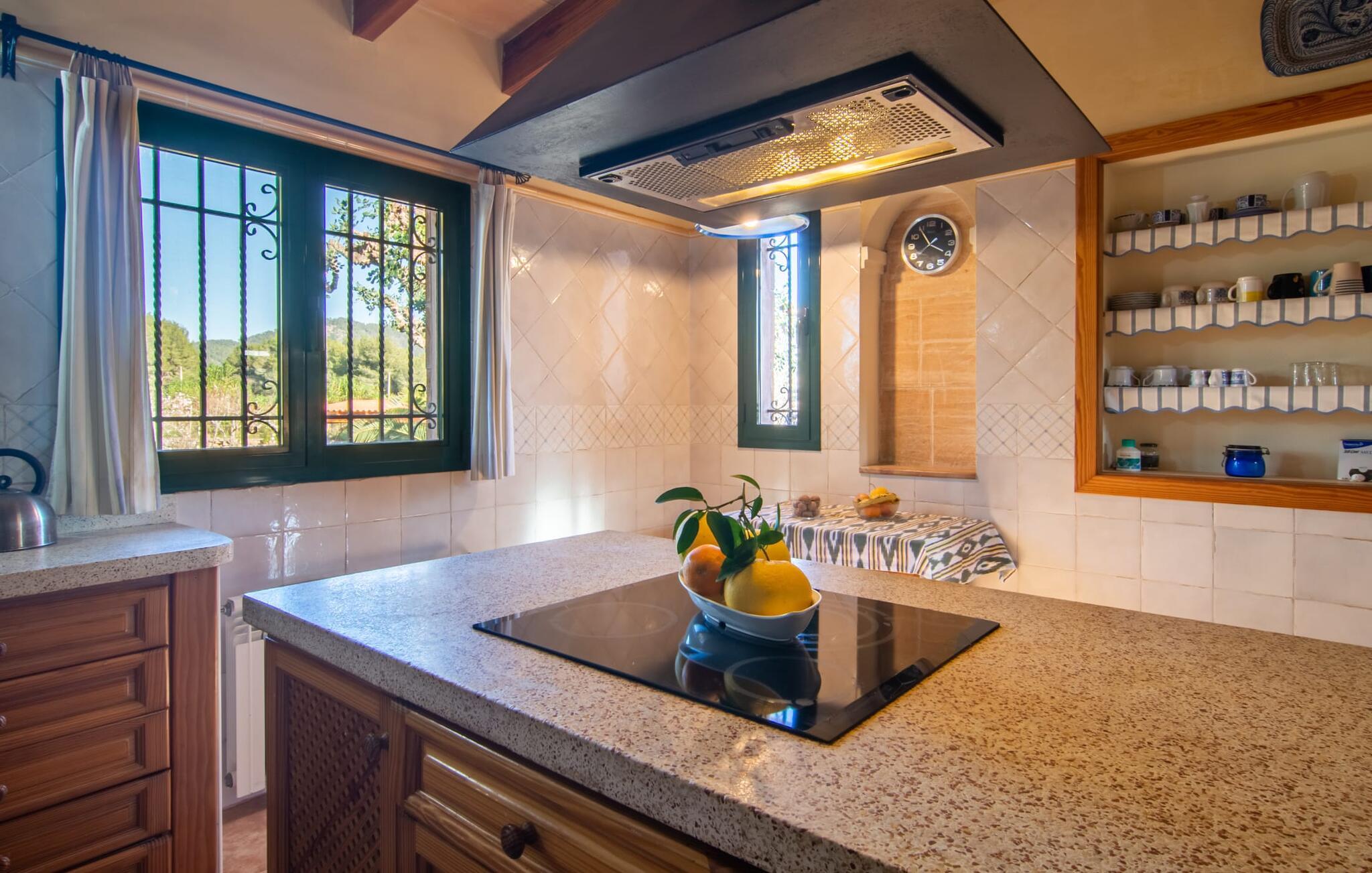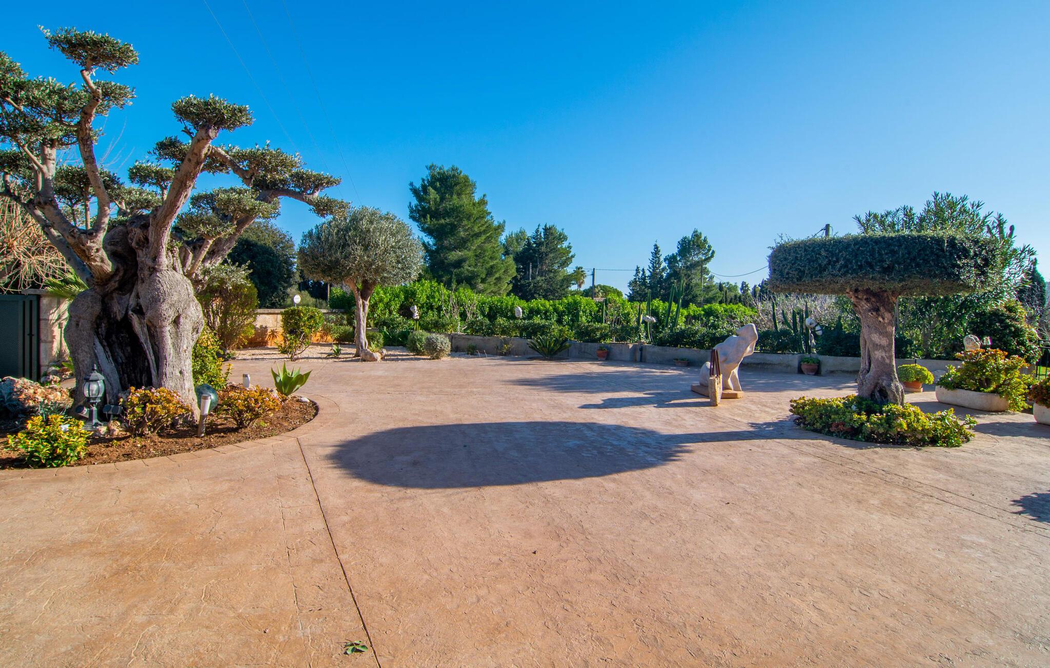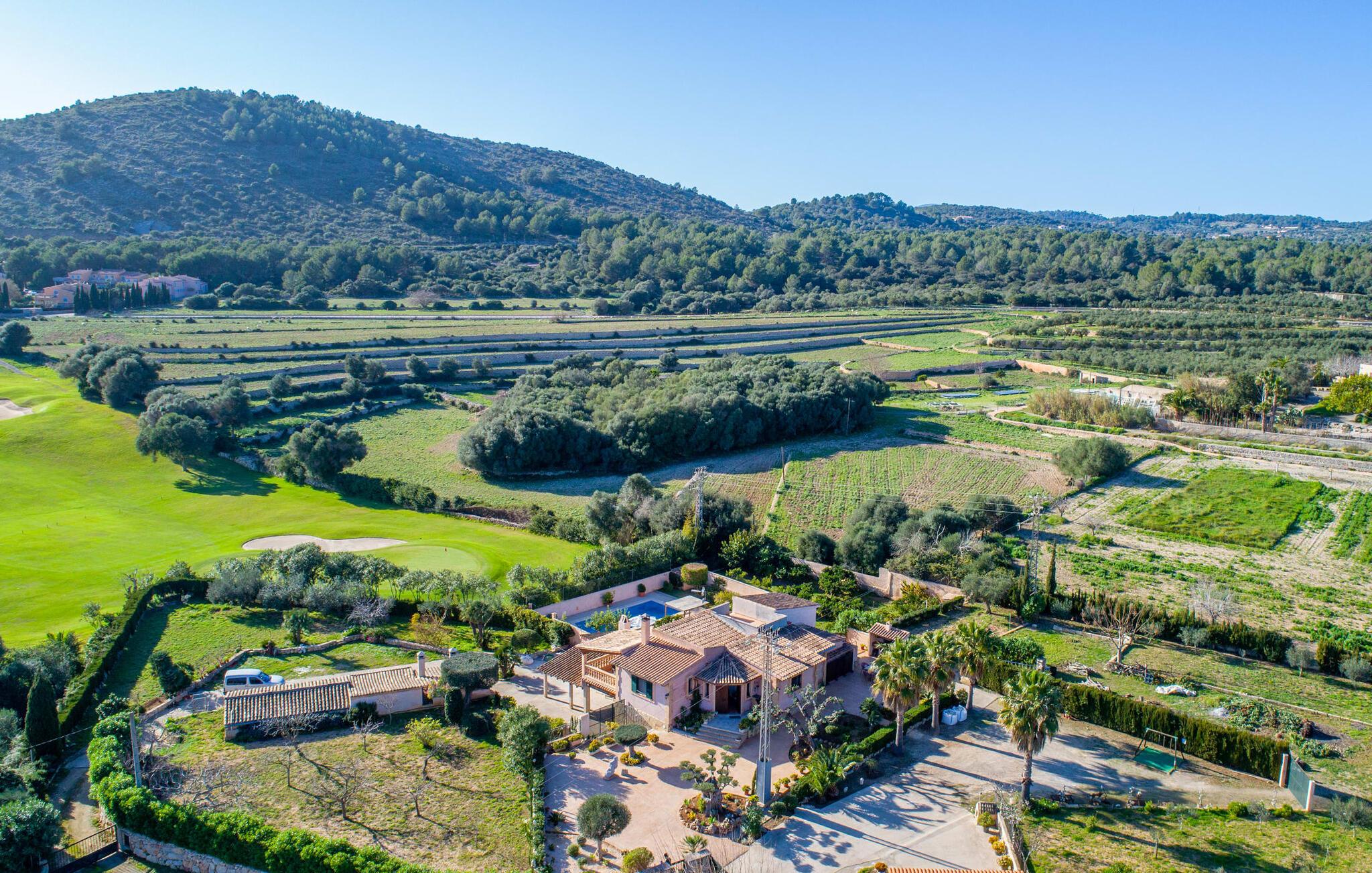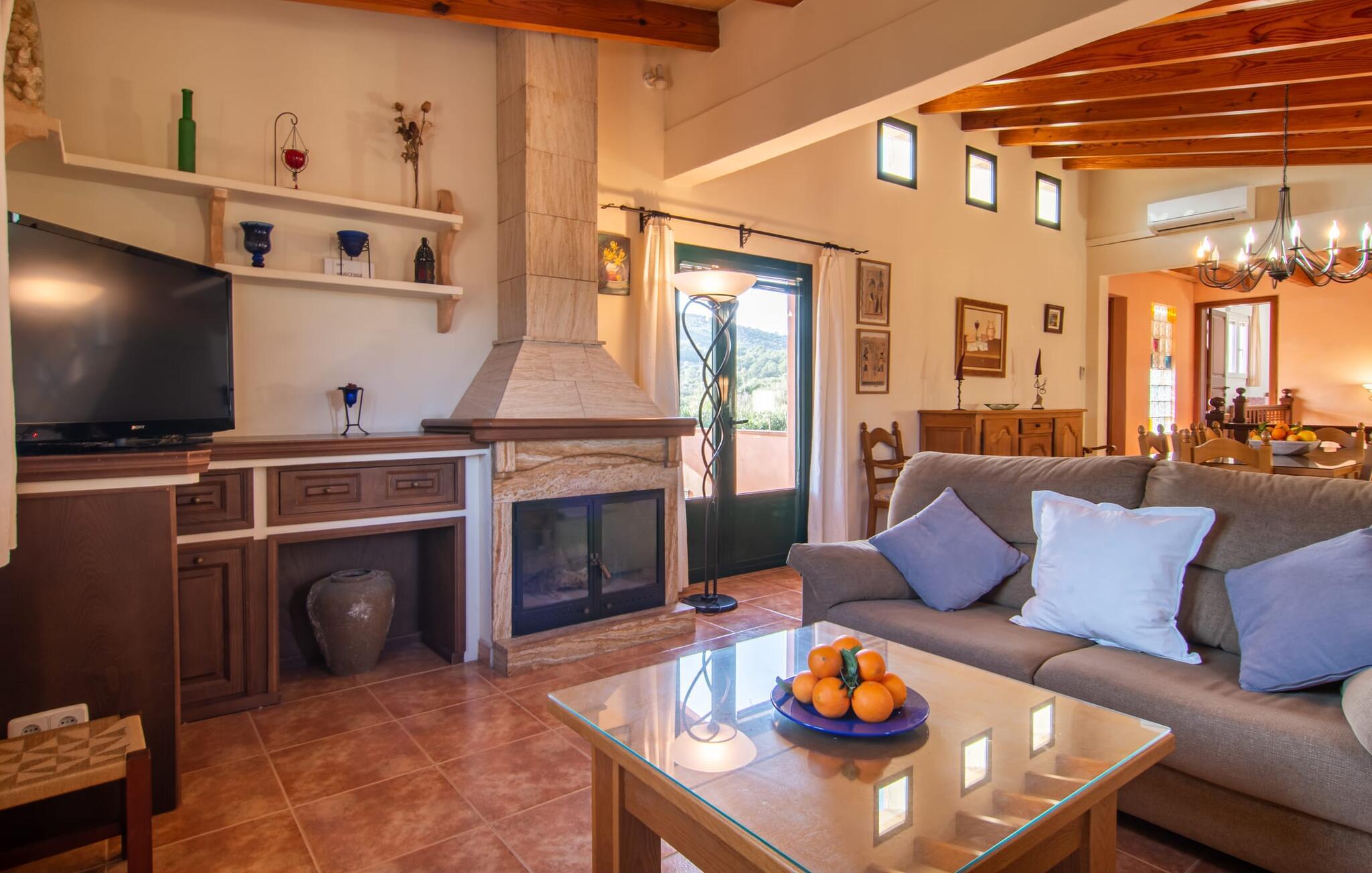 Denne vidunderlige rustikke og samtidig moderne finca i det østlige Mallorca imponerer ikke kun med sin familievenlige indretning, men også med sin charmerende landstedskarakter, som er tydeligt synlig både ude og inde. Det betyder, at feriehuset, der ligger vidunderligt ugeneret med mallorcansk bondegårdsflair, passer særligt godt ind i denne kystregion, som imponerer med sit blidt bakkede grønne landskab. Fincaen er omgivet af talrige træer og en frugthave. Samtidig byder det private poolområde med en omgivende terrasse på adskillige liggestole. Nogle af dem er beskyttet af en stilfuld pergola eller parasol. Der er også en børnegynge til rådighed for yngre besøgende, så de kan få aktiv underholdning. Der er behagelige udendørs siddepladser ved muret grill med integreret udekøkken. I kan nyde en vidunderlig udsigt fra den overdækkede altan med yderligere spiseplads på tagterrassen på første sal. Derfra har I direkte adgang til den rummelige stue med hyggelig pejs og åben spiseplads. Møblerne i den passende landhusstil afspejler den vellykkede symbiose af tradition og modernitet, som kun findes i fincaer på Mallorca. I det fuldt udstyrede køkken med en kogeø er det en fornøjelse at tilberede måltider sammen - for på en eller anden måde er det en del af en ferie at tilberede mad i en venlig atmosfære (selvfølgelig kan I inkludere grillen her). De hyggelige møbler med bløde farver skaber en behagelig atmosfære. Der er plads nok til op til syv personer og to babyer, hvilket gør fincaen ideel til en ferie med to familier. På stueplan på øverste etage er der et soveværelse med dobbeltseng med eget badeværelse og et andet rummeligt badeværelse. Yderligere tre soveværelser - to dobbeltværelser og et enkelt - er placeret i stueetagen og kan nås via en intern trappe fra opholdsstuen i åbent plan, ligesom et tredje badeværelse med badekar. Pula Viñas – dette behagelige navn resonerer med intensiteten af de endemiske vine, som I bestemt bør prøve under jeres ophold i dette fantastiske feriehus med pool. Denne rustikke, omfattende renoverede feriefinca imponerer med sin ejendom med en tilstødende frugthave, vidunderlige udendørs siddepladser og en privat pool. Det er tæt på den akustisk mærkbare landevej, der fører langs Mallorcas østkyst til Cala Ratjada. De smukke landsbyer Son Servera eller Costa del Pins kan nås på cirka 5 minutter og byder på gode shoppingmuligheder. En fin sandstrand, også kaldet Sa Marjal, venter på jer i Costa des Pins.