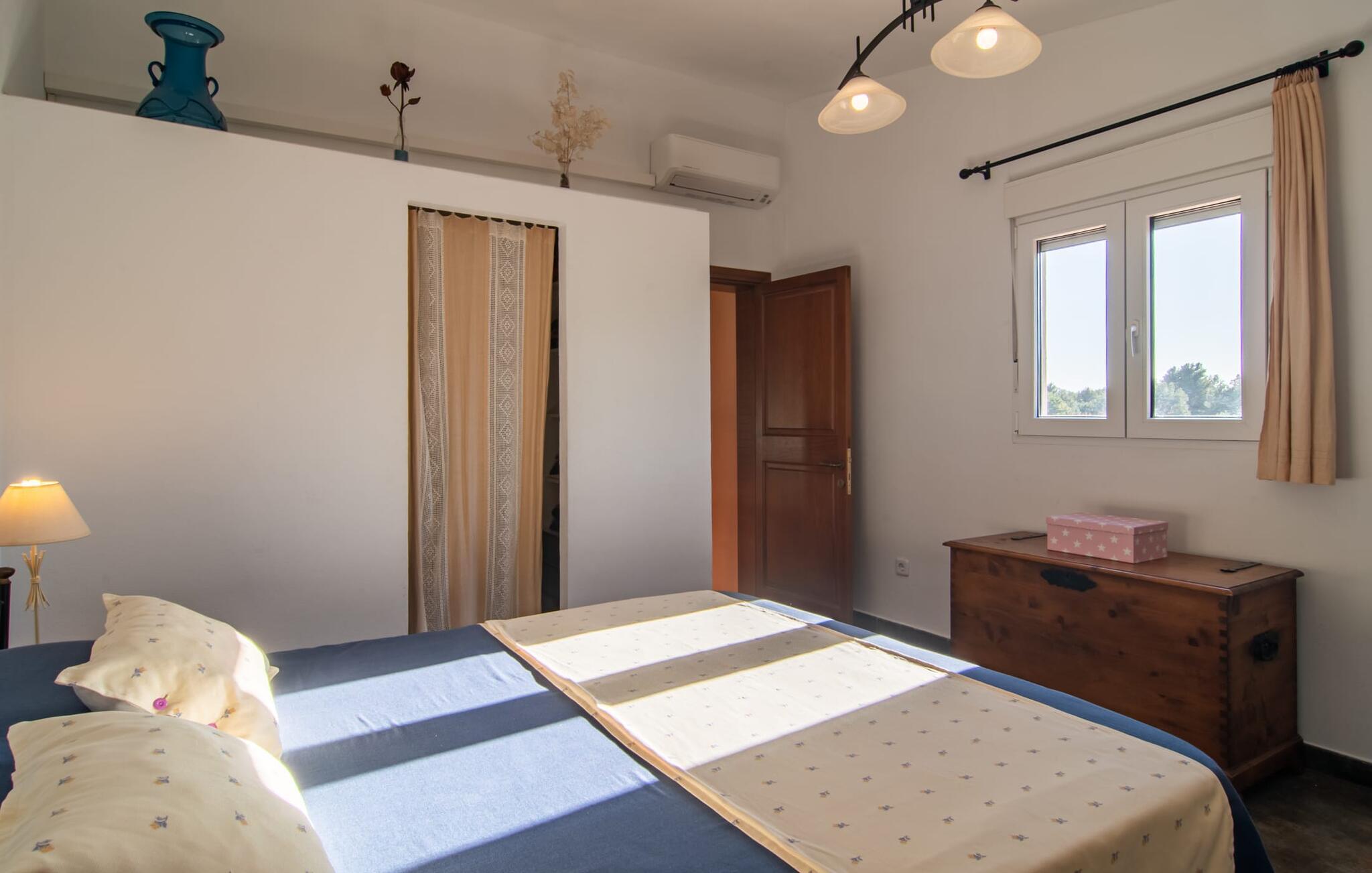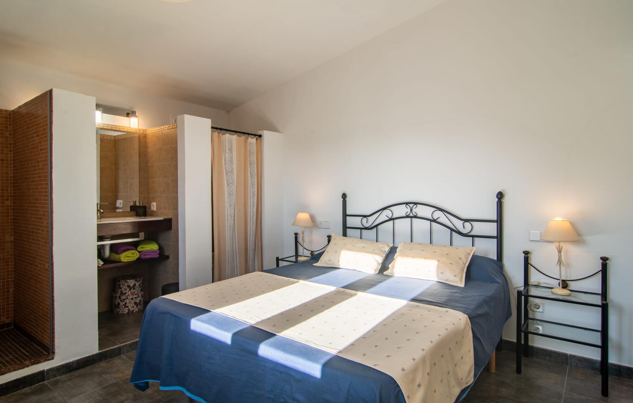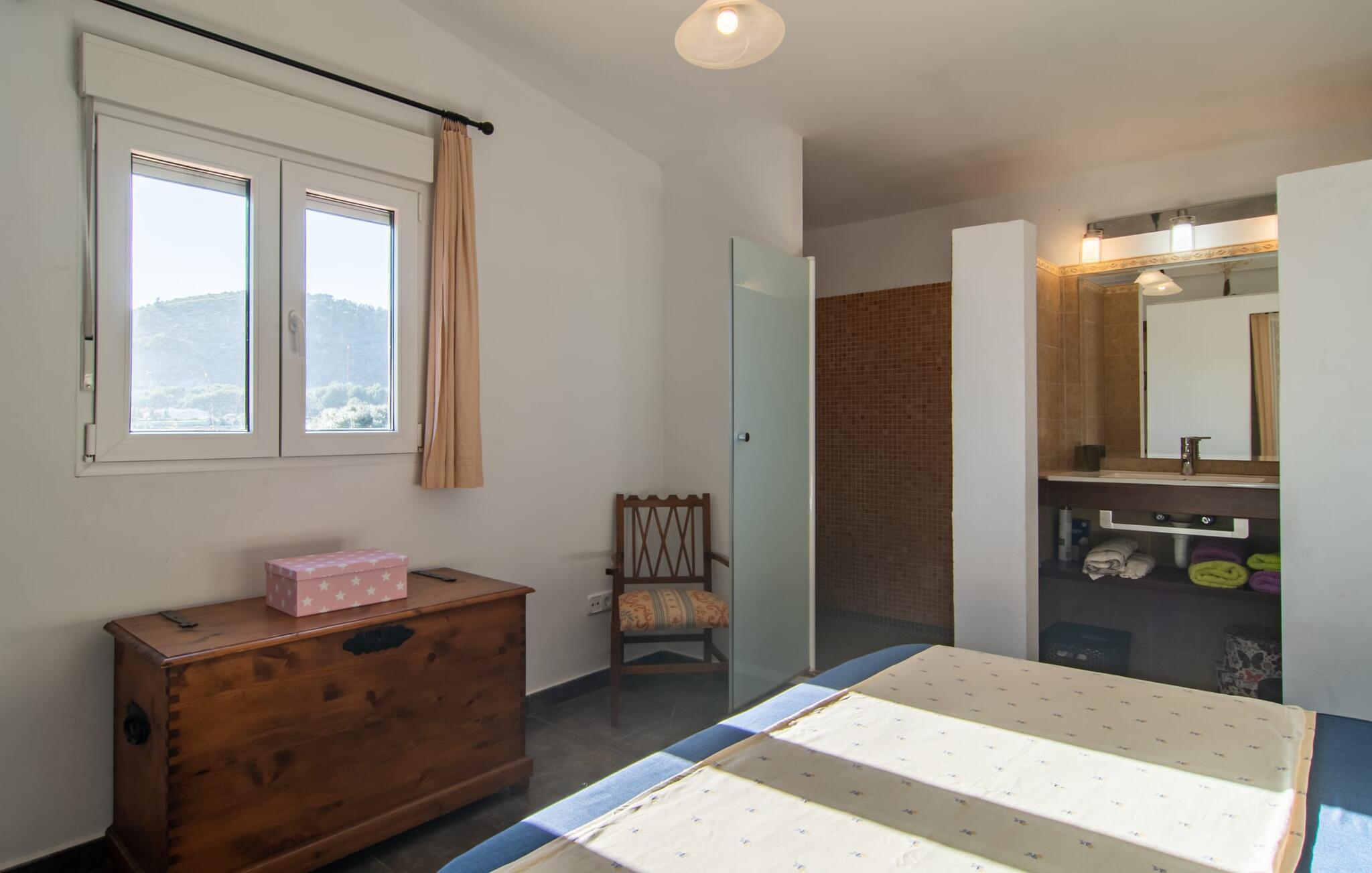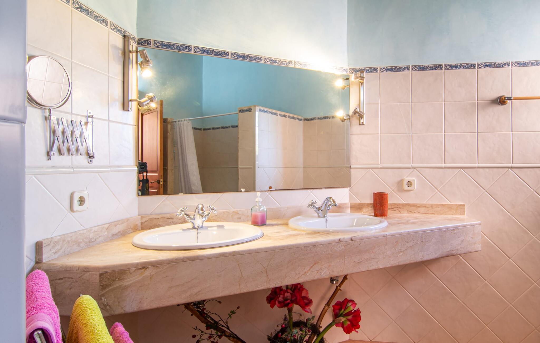 Denne vidunderlige rustikke og samtidig moderne finca i det østlige Mallorca imponerer ikke kun med sin familievenlige indretning, men også med sin charmerende landstedskarakter, som er tydeligt synlig både ude og inde. Det betyder, at feriehuset, der ligger vidunderligt ugeneret med mallorcansk bondegårdsflair, passer særligt godt ind i denne kystregion, som imponerer med sit blidt bakkede grønne landskab. Fincaen er omgivet af talrige træer og en frugthave. Samtidig byder det private poolområde med en omgivende terrasse på adskillige liggestole. Nogle af dem er beskyttet af en stilfuld pergola eller parasol. Der er også en børnegynge til rådighed for yngre besøgende, så de kan få aktiv underholdning. Der er behagelige udendørs siddepladser ved muret grill med integreret udekøkken. I kan nyde en vidunderlig udsigt fra den overdækkede altan med yderligere spiseplads på tagterrassen på første sal. Derfra har I direkte adgang til den rummelige stue med hyggelig pejs og åben spiseplads. Møblerne i den passende landhusstil afspejler den vellykkede symbiose af tradition og modernitet, som kun findes i fincaer på Mallorca. I det fuldt udstyrede køkken med en kogeø er det en fornøjelse at tilberede måltider sammen - for på en eller anden måde er det en del af en ferie at tilberede mad i en venlig atmosfære (selvfølgelig kan I inkludere grillen her). De hyggelige møbler med bløde farver skaber en behagelig atmosfære. Der er plads nok til op til syv personer og to babyer, hvilket gør fincaen ideel til en ferie med to familier. På stueplan på øverste etage er der et soveværelse med dobbeltseng med eget badeværelse og et andet rummeligt badeværelse. Yderligere tre soveværelser - to dobbeltværelser og et enkelt - er placeret i stueetagen og kan nås via en intern trappe fra opholdsstuen i åbent plan, ligesom et tredje badeværelse med badekar. Pula Viñas – dette behagelige navn resonerer med intensiteten af de endemiske vine, som I bestemt bør prøve under jeres ophold i dette fantastiske feriehus med pool. Denne rustikke, omfattende renoverede feriefinca imponerer med sin ejendom med en tilstødende frugthave, vidunderlige udendørs siddepladser og en privat pool. Det er tæt på den akustisk mærkbare landevej, der fører langs Mallorcas østkyst til Cala Ratjada. De smukke landsbyer Son Servera eller Costa del Pins kan nås på cirka 5 minutter og byder på gode shoppingmuligheder. En fin sandstrand, også kaldet Sa Marjal, venter på jer i Costa des Pins.