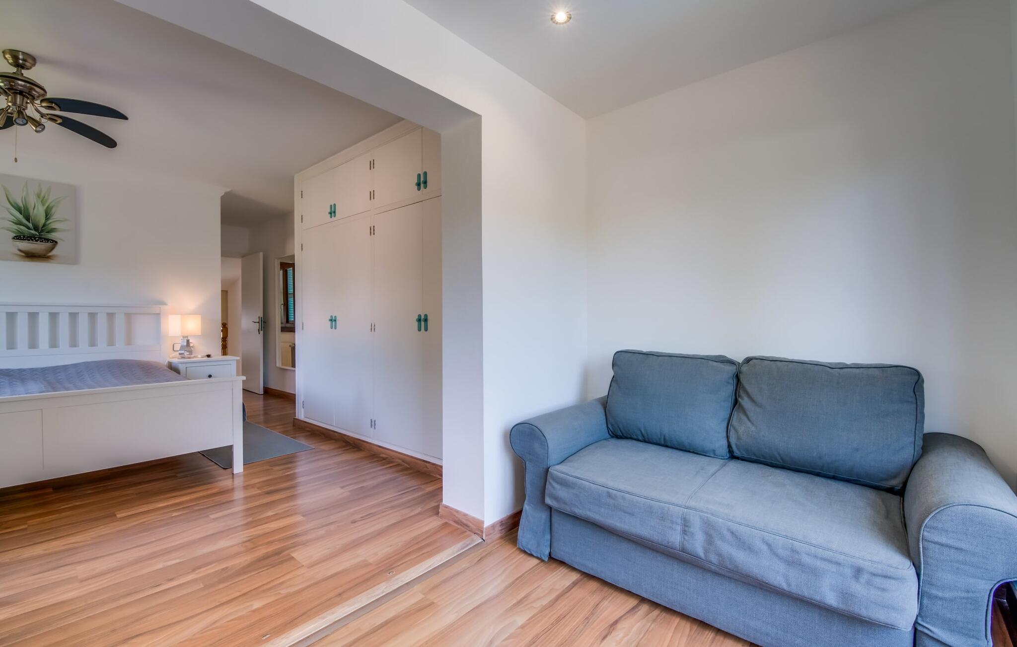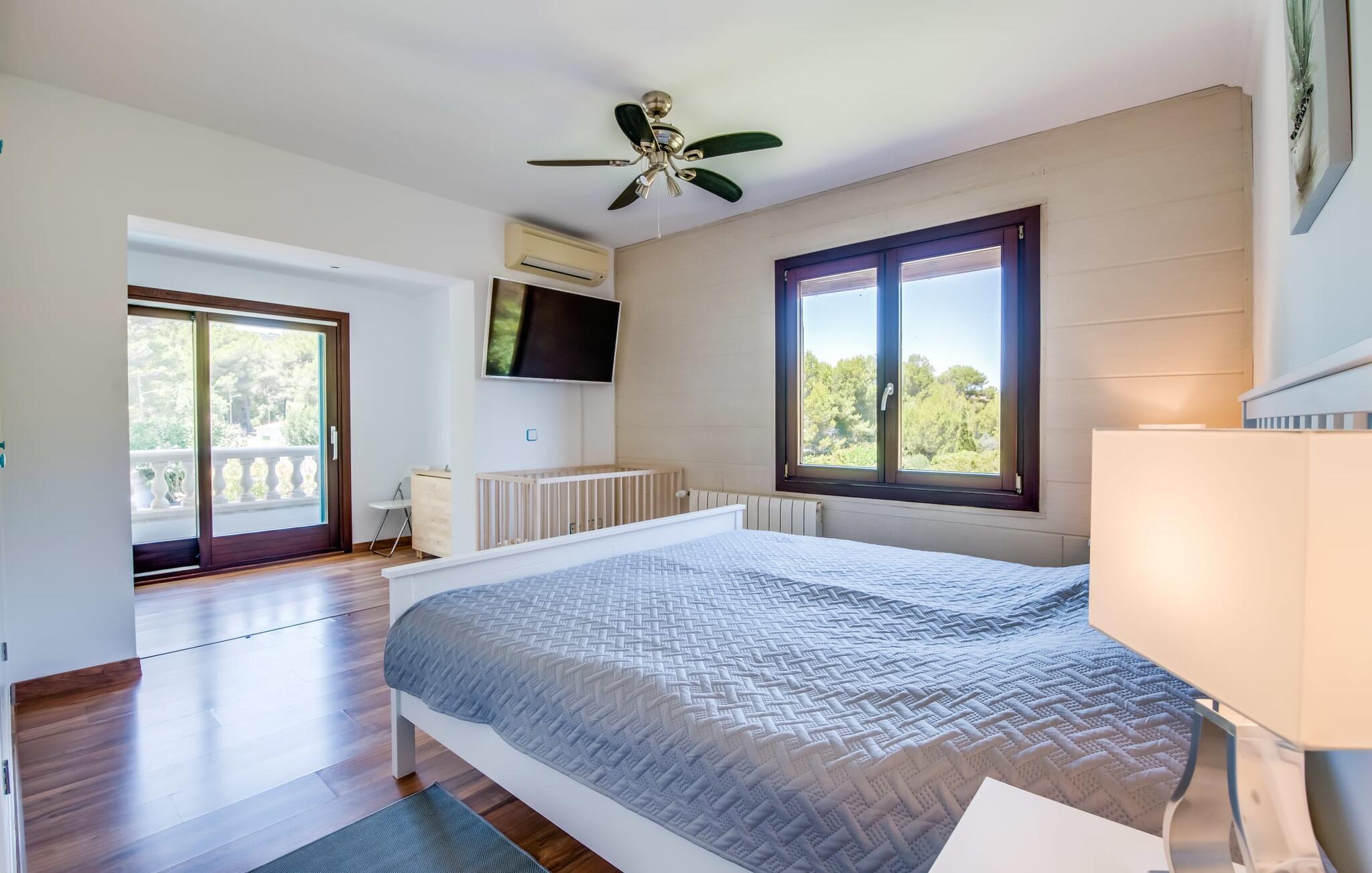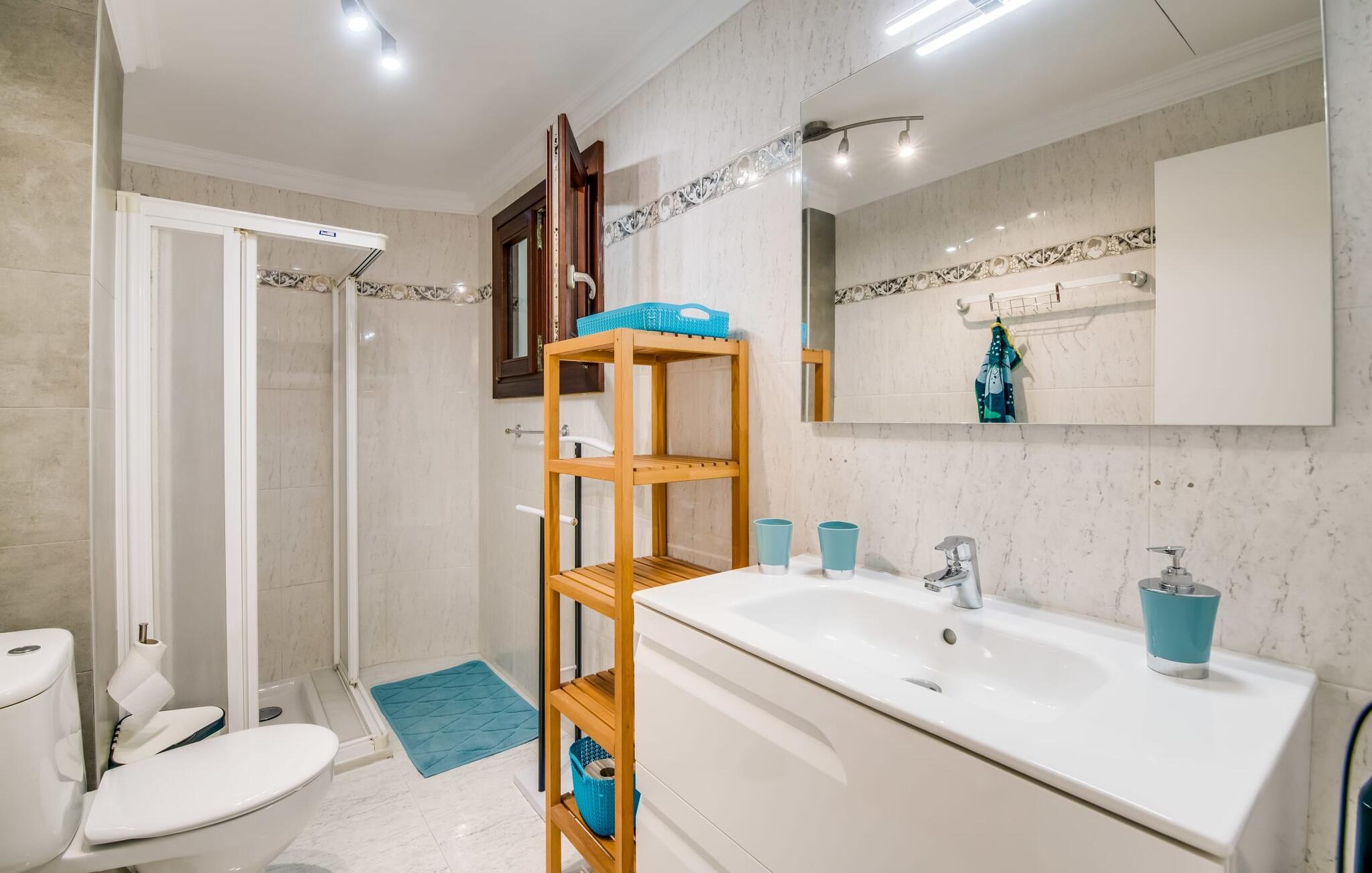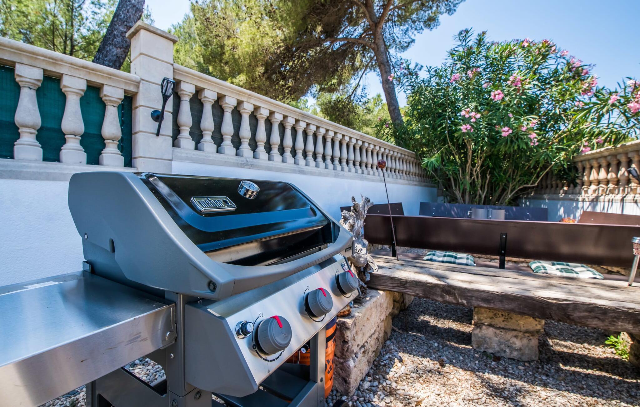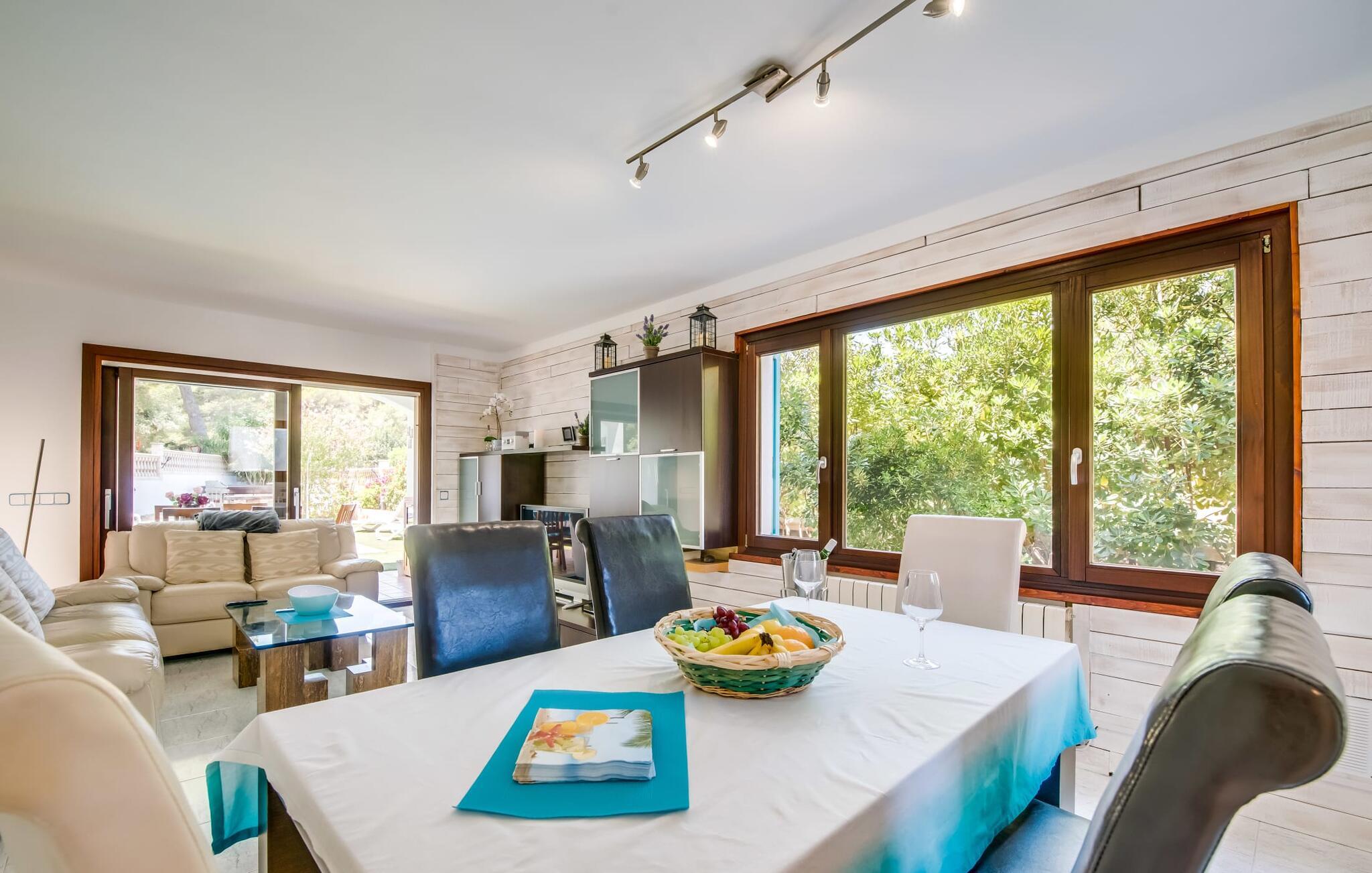 Placeringen er fantastisk: så tæt på havet, at I endda kan se det fra balkonen; En gåtur til vandet tager kun et par minutter. Villaen "Punta Blava", bygget i et typisk enfamilies boligområde, er indrettet i hvidt og har skodder, der skinner i samme turkisblå som poolen i haven. Huset på Mallorcas østkyst har en hyggelig maritim atmosfære og byder på masser af komfort, især for familier med børn. Højdepunkter: swimmingpoolen med kunstgræs og liggestole omkring, den overdækkede terrasse og grillpladsen med en paellapande. Der er en gynge i forhaven til de mindste. Indretningen er moderne, med masser af hvidt, kombineret med forskellige naturtoner og mørkt træ, som umiddelbart får jer til at føle jer godt tilpas. I stueplan er der åben opholds- og spiseafdeling samt veludstyret køkken med direkte adgang til udearealet. Også i stueetagen er der et soveværelse og et moderne badeværelse. En trappe fører til første sal med to soveværelser, hver med eget badeværelse. Ved havet: Dette er ikke noget problem selv med små børn, hvis I tilbringer jeres ferie i villaen "Punta Blava". Kun omkring 100 m adskiller jer fra kysten. Det smukke hus med turkise skodder og swimmingpool ligger på en lang grund i en urbanisering på øens østkyst. Cala Ratjada ligger mindre end 4 km derfra i bil. De nærmeste strande som Font de Sa Cala og Platja de Son Moll ligger henholdsvis kun 1,4 km og 2 km væk. En lille bugt med adgang til havet og en lille strand ligger lige udenfor jeres dør.