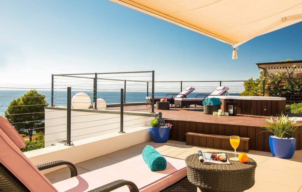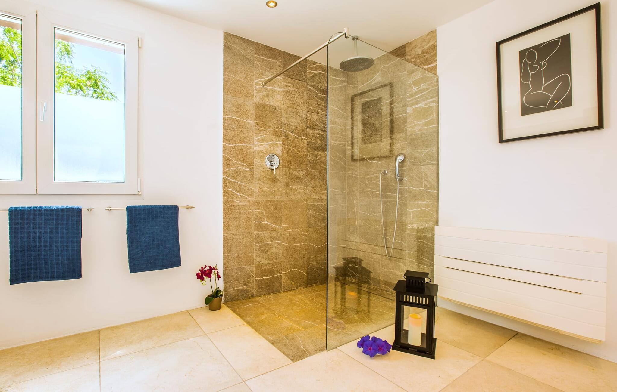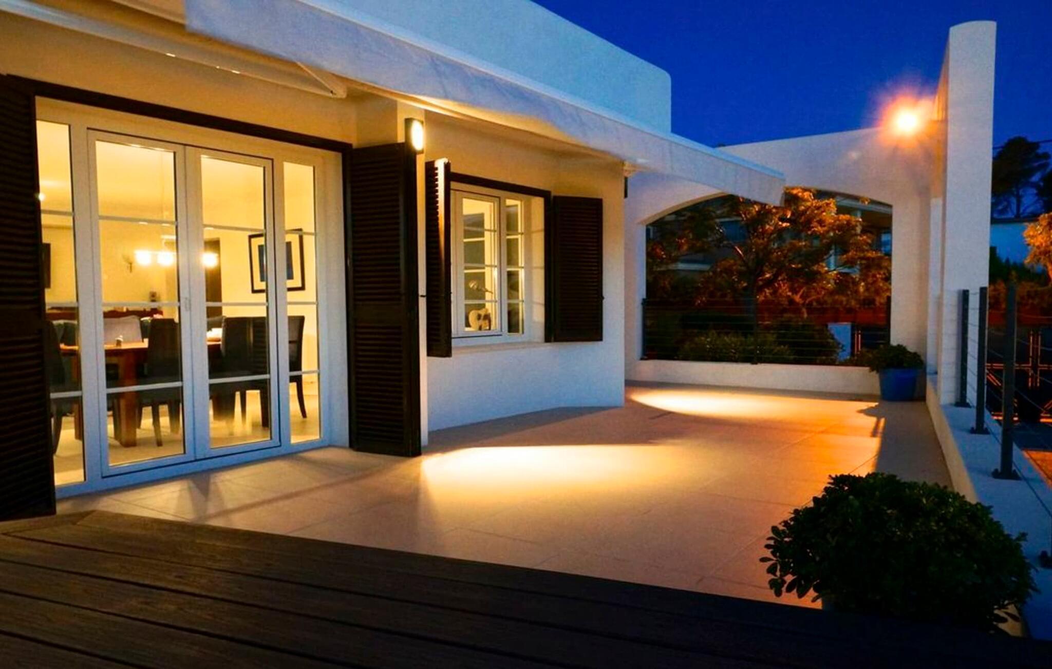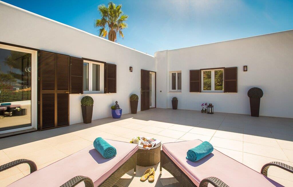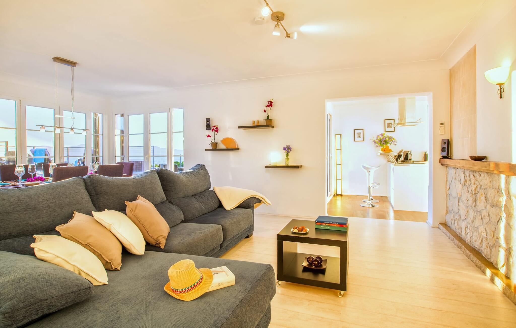 Førsteklasses afslapning - det er hvad der venter jer i den luksuriøse villa "Pura" på Mallorcas smukke sydkyst. Atmosfæren og hyggen på denne enestående ejendom er perfekt til feriegæster, der ønsker at flygte fra hverdagen i magiske omgivelser, men stadig værdsætter nærheden til Palma de Mallorca. Det ultramoderne udendørsområde byder jer velkommen med en betagende panoramaudsigt over det turkise Middelhav. Forkæl jeres smagsløg i den smukke spiseplads, mens I nyder de vidunderlige omgivelser. Det let forhøjede spabad knejser over den omkringliggende solterrasse på det højkvalitets trægulv. Omgivet af frodig natur i fuldt flor inviterer en komfortabel hængekøje jer til at tilbringe et par afslappende timer i den friske luft. Det hyggelige loungeområde er et vidunderligt sted at slappe af, især om aftenen, og se solnedgangen i horisonten. Det stilfulde interiør består af lyse nuancer og elegante accenter af natursten og træ. En smagfuld indretning fuldender den gode atmosfære. Takket være de store vinduespartier bliver rummene oversvømmet af lys og fremstår særligt indbydende. Den rummelige stue inviterer jer til at tilbringe hele aftener i den komfortable sofa foran pejsen. Når aftenen er ved at være slut, kan I fordybe jer i en god bog foran den knitrende ild eller vise en underholdende film for hele familien på fladskærms-tv'et. Et særligt højdepunkt: Med det trådløse lydsystem kan I lytte til jeres yndlingsmusik af hjertens lyst. I kan nyde kulinariske lækkerier i den smukke spiseplads og tilberede dem i det åbne og fuldt udstyrede køkken med keramisk kogeplade og to køleskabe. I kan også nyde den storslåede udsigt over Middelhavet herfra. Den meget lyse gang fører direkte til de tre soveværelser. Mottoet her er: Less is more! Store senge lover en afslappende søvn, og smarte farveaccenter og malerier giver værelserne en ægte hjemlig atmosfære. De to luksuriøse badeværelser er et ægte blikfang og byder jer velkommen med et moderne design, der kombinerer nuancer af cremefarver og stilfulde natursten. De to regnbyger garanterer jeres absolutte komfort. Luksusvillaen "Pura" venter på jer i Badia Gran på Mallorcas magiske sydkyst og byder på en betagende panoramaudsigt over Middelhavet. Den rolige lille by har flere butikker, hyggelige barer og restauranter samt et ugentligt marked. Cala Blava-stranden ligger kun få minutters gang væk, og bugterne Caló de Sant Antoni og S'Arenal ligger også tæt på. Bemærk venligst, at denne ejendom ikke accepterer ungdomsgrupper eller polterabender. En ungdomsgruppe på denne ejendom består af personer under 30 år. Book ikke denne ejendom, hvis I er en ungdomsgruppe eller polterabend, da jeres reservation vil blive afvist, når den er booket, hvilket også kan være tilfældet ved ankomst til ejendommen eller under jeres ophold, og I vil ikke modtage en refusion