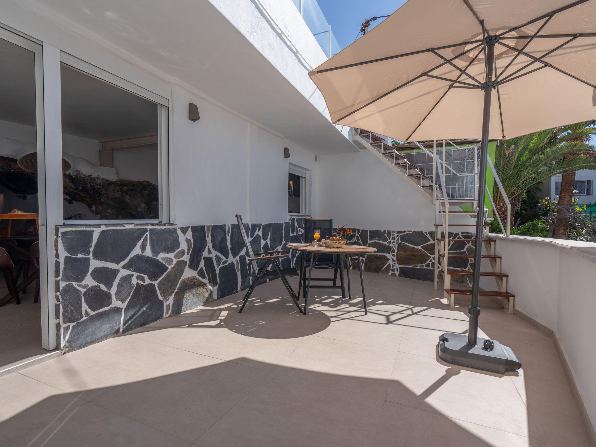 In the small village of Bocacangrejo you will find your tastefully designed cave house. You enter the large terrace (25m2) on the ground floor where you can find a terrace table and comfortable garden chairs for your meals or just to enjoy the sun or the scenery. You enter your house in the living/kitchen area (open plan). Immediately you realise that you have not booked a normal house: you are in a cave! Volcanic rocks shape the kitchen which partly uses real rocks as a worktop. The kitchen has everything you need: