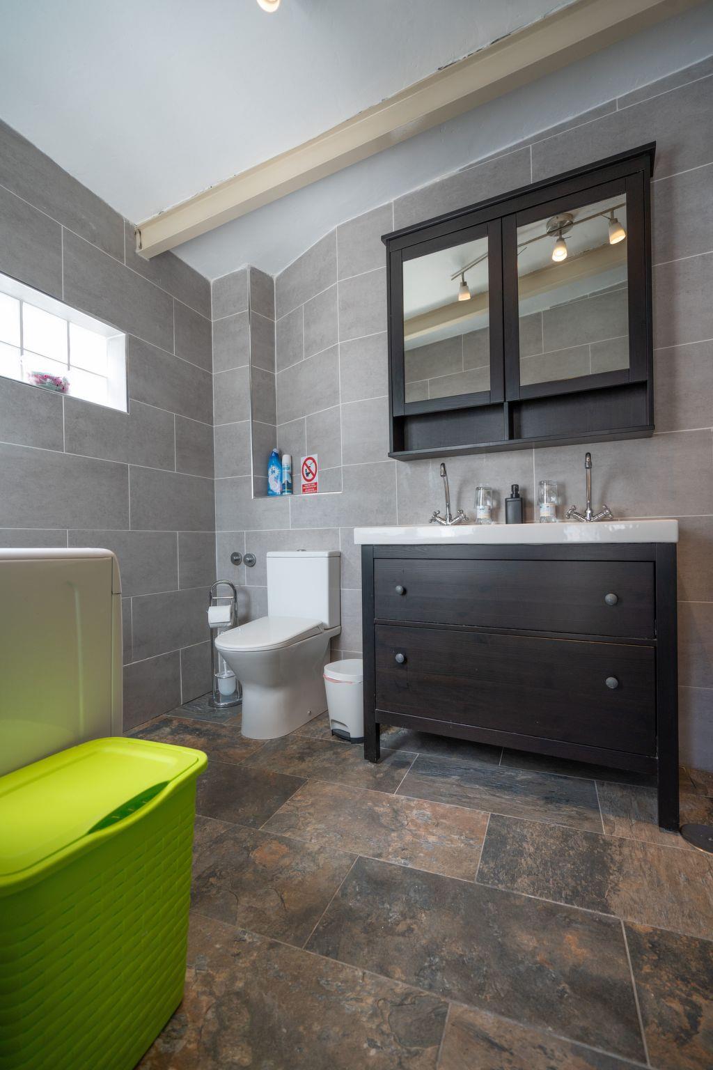 The dining room has a round table with comfortable chairs for those rare days when you can't eat outside. Next to the dining room is the living room/cave. Here you can enjoy a constant temperature all year round on the comfortable sofa or in the relaxing seats. There is fast internet via fibre optics and a 50" Smart TV with Chromecast so you can stream all your favourite content.