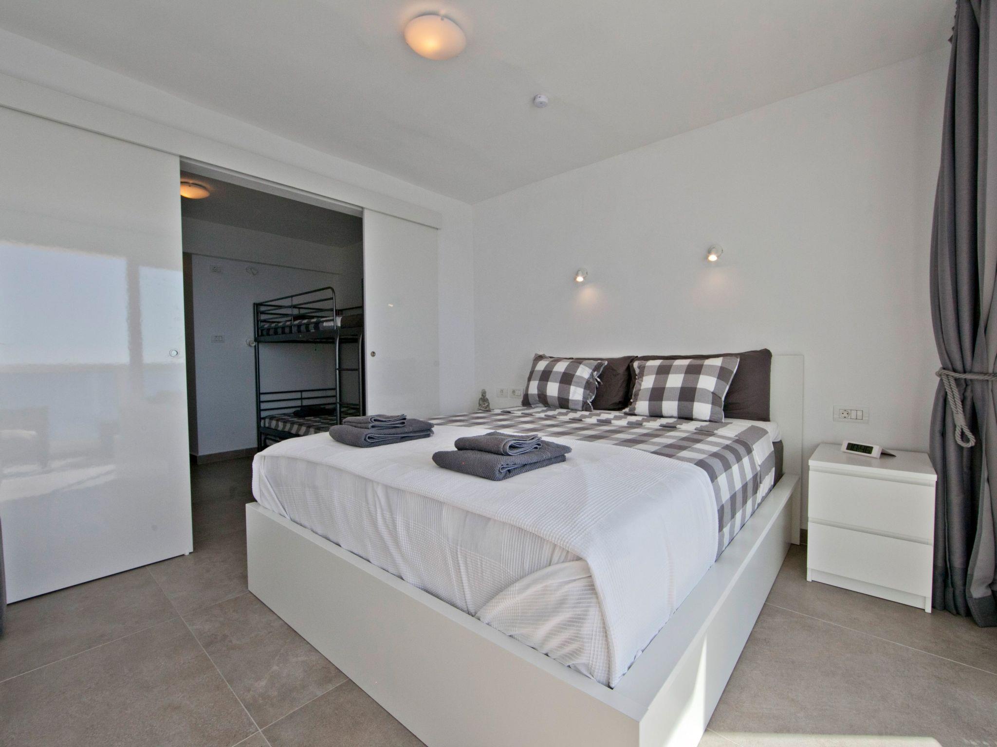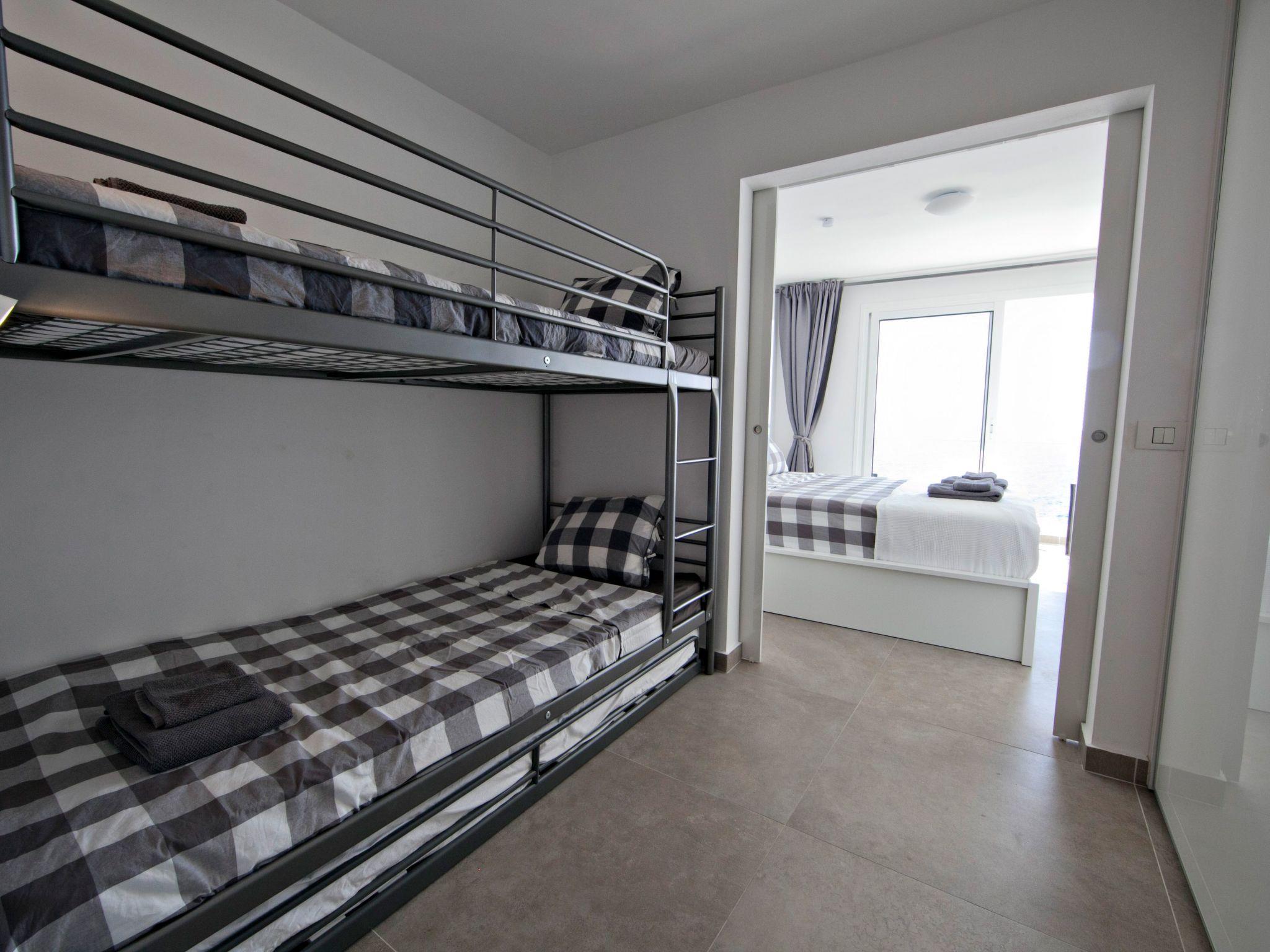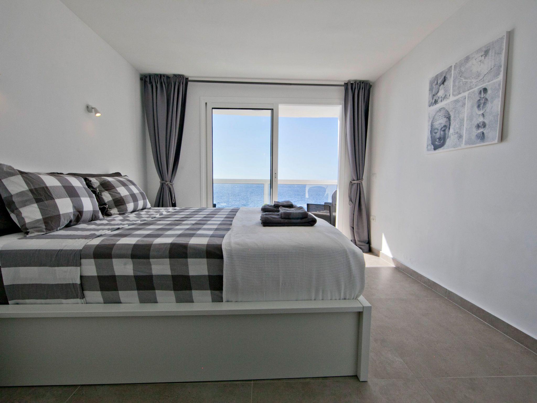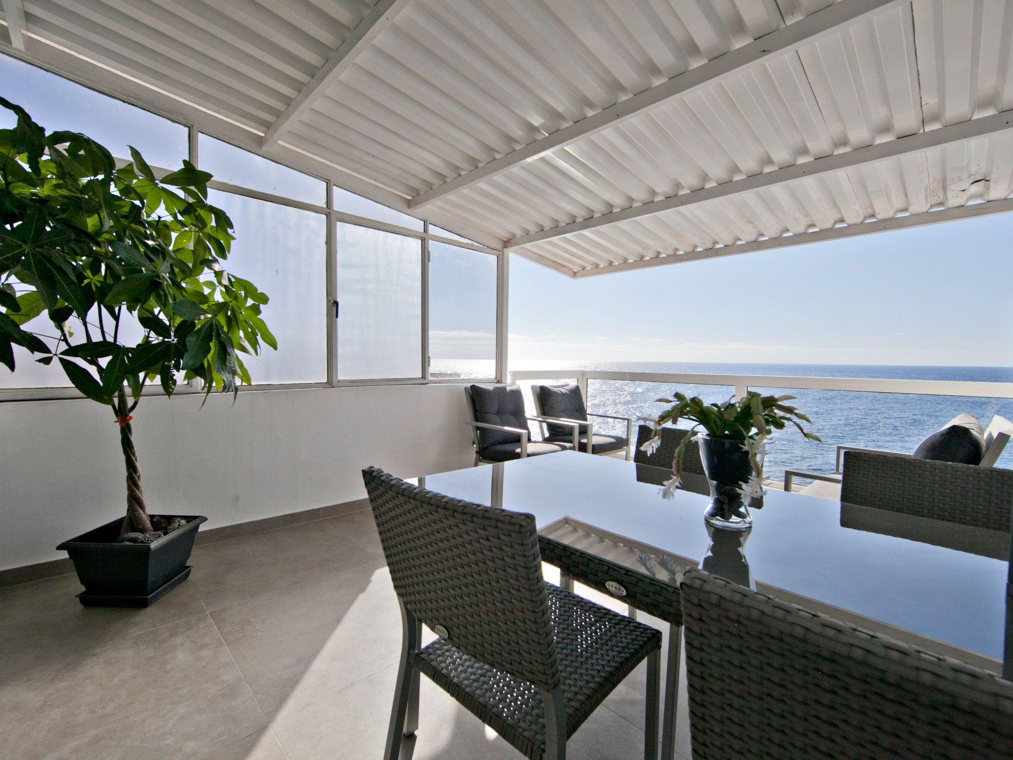 It is distributed in 2 floors and has a small patio at the entrance. Once inside you find a bathroom to your left hand containing a sink, build in shower and a toilet. On the other side of the bathroom you find the stairs to go up to the first floor. As a decoration detail you can still see a vulcanical rock that teaches us about the mountain on which the House is built. Below the staircase you find the lobby. Following you find a room with a three beds bunkbed in loft-style. This space is also covers a large wardrobe of 2 meters wide, 2.40 meters high and 90 cm deep. This is also the washing machine cabinet. Sliding doors separate this area from the main bedroom. In the master bedroom you find a 160 cm by 200cm bed. Also there are two bedside tables and lights to read. The special appeal of this bedroom are its large windows that lead onto a private balcony and giving a panoramic view to the Atlantic Ocean. You can sit on the balcony watching the dawn from comfortable chairs on the terrace. Rising to the first floor there is a well equipped kitchen dishwasher, Dolce Gusto coffee machine, refrigerator and freezer, induction cooker, sink and a microwave with oven function. In the kitchen you will find pots, pans, and everything you need for cooking. You have at your disposal a wide table with 4 chairs and a sofa bed. The living room also features a Smart TV with international satellite TV. From the lounge you can open huge windows to access the more than 15 m2 big terrace. The glass balustrade of the terrace create an aspect of infinity that will give you the feeling that you are in the sea. The terrace has a dining area with a table and 4 chairs and a chill-out area to relax and enjoy the Sun and the views. The House is easy to keep clean and recently refurbished using materials of high quality such as a high end porcelain stoneware floor. Also worth mentioning is that the House has a connection to the internet with a download speed of 300 Mb using a network cable. The WiFi router is placed in the Centre of the room giving coverage to the entire space. The total area of the House is more than 70m 2