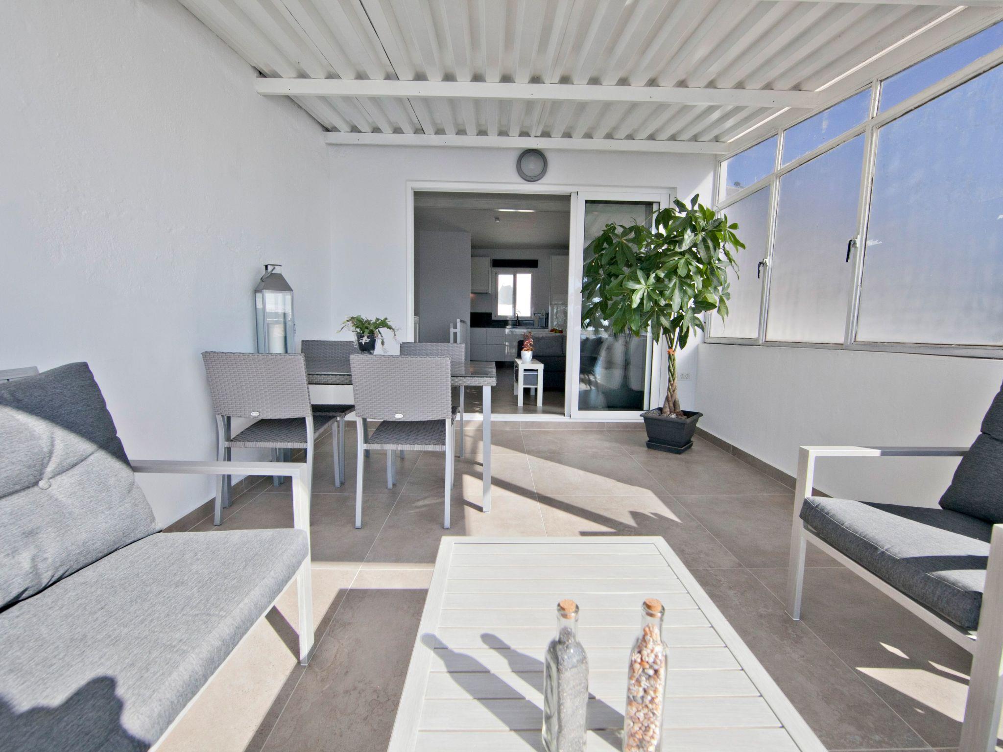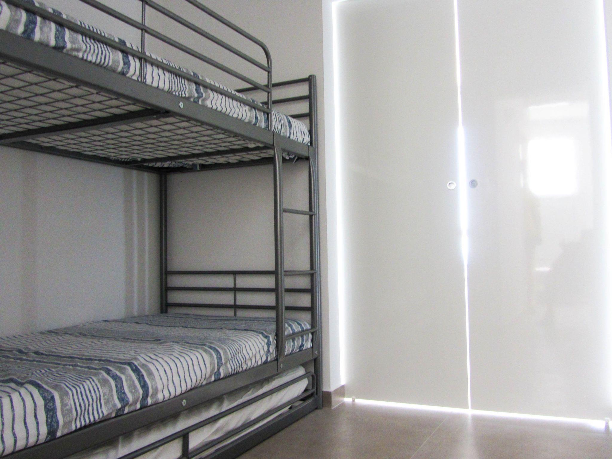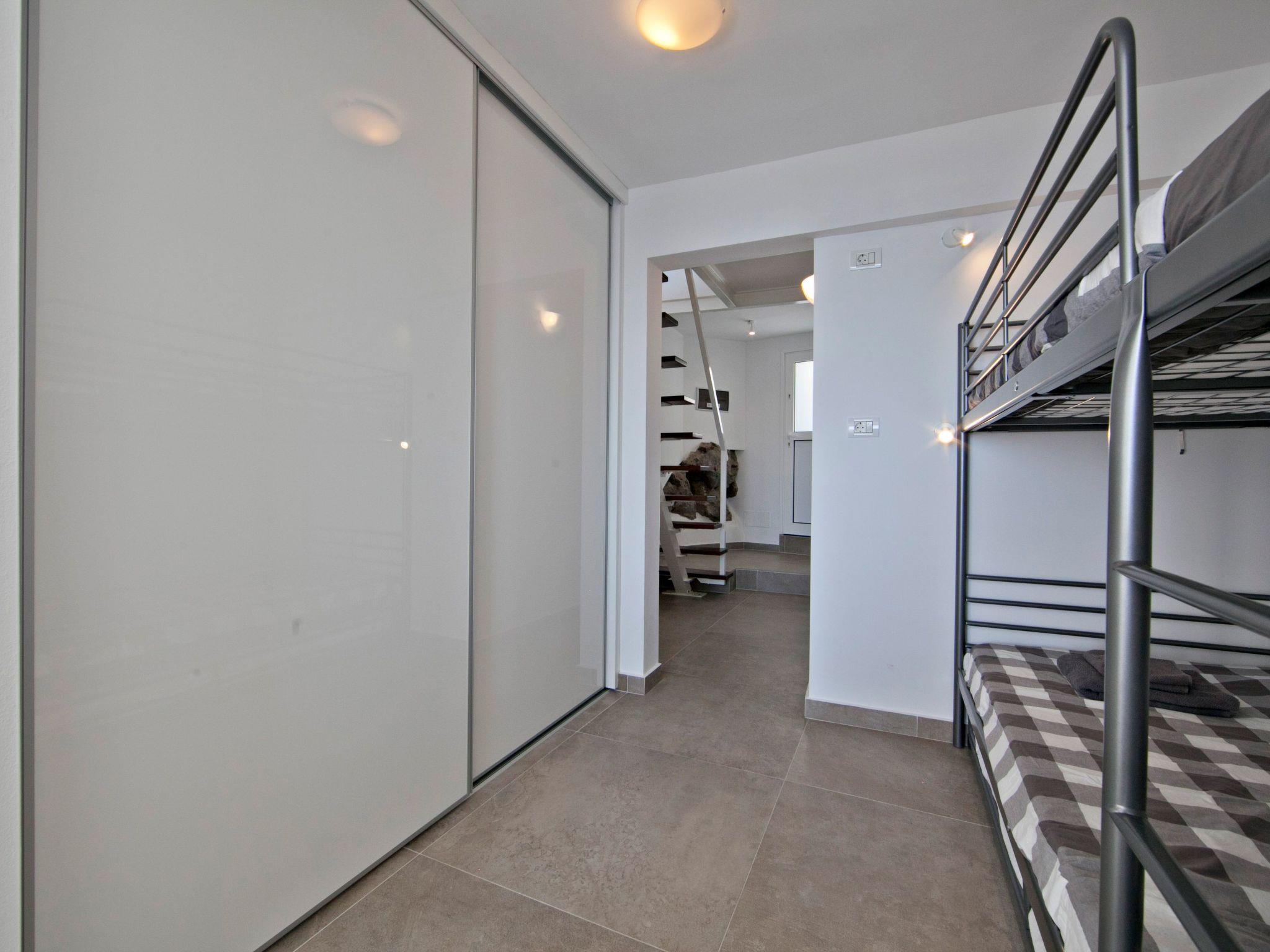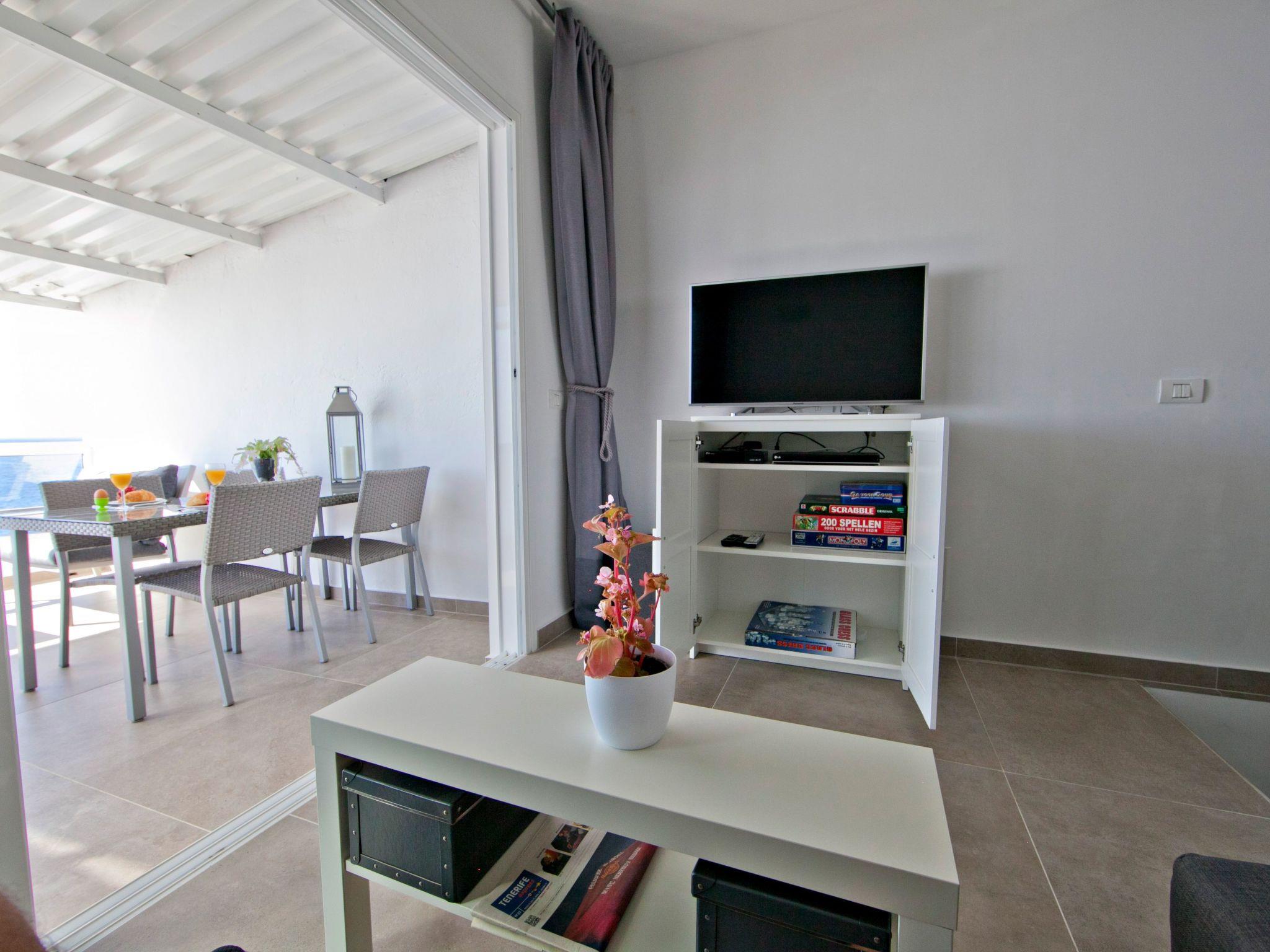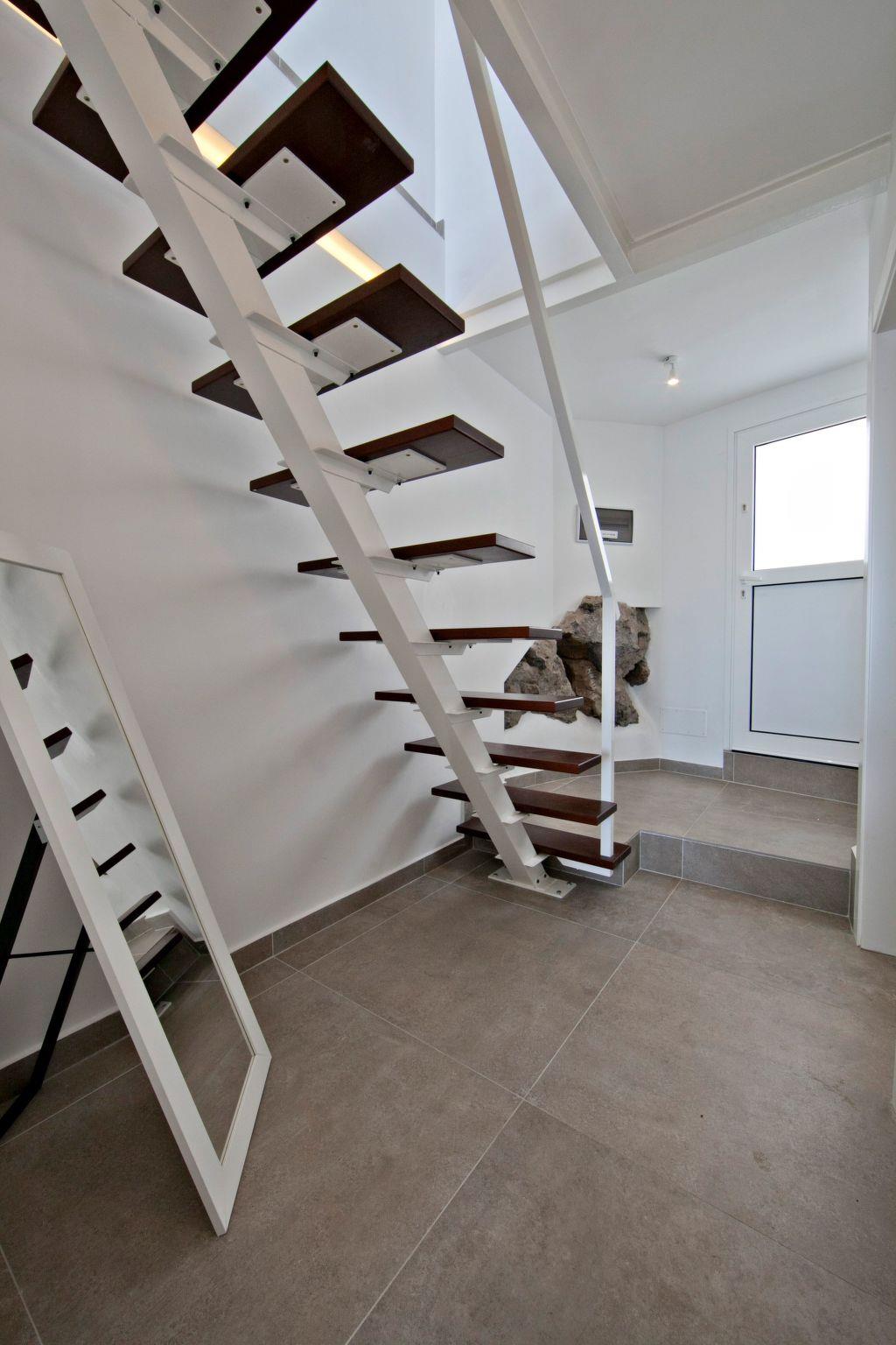 It is distributed in 2 floors and has a small patio at the entrance. Once inside you find a bathroom to your left hand containing a sink, build in shower and a toilet. On the other side of the bathroom you find the stairs to go up to the first floor. As a decoration detail you can still see a vulcanical rock that teaches us about the mountain on which the House is built. Below the staircase you find the lobby. Following you find a room with a three beds bunkbed in loft-style. This space is also covers a large wardrobe of 2 meters wide, 2.40 meters high and 90 cm deep. This is also the washing machine cabinet. Sliding doors separate this area from the main bedroom. In the master bedroom you find a 160 cm by 200cm bed. Also there are two bedside tables and lights to read. The special appeal of this bedroom are its large windows that lead onto a private balcony and giving a panoramic view to the Atlantic Ocean. You can sit on the balcony watching the dawn from comfortable chairs on the terrace. Rising to the first floor there is a well equipped kitchen dishwasher, Dolce Gusto coffee machine, refrigerator and freezer, induction cooker, sink and a microwave with oven function. In the kitchen you will find pots, pans, and everything you need for cooking. You have at your disposal a wide table with 4 chairs and a sofa bed. The living room also features a Smart TV with international satellite TV. From the lounge you can open huge windows to access the more than 15 m2 big terrace. The glass balustrade of the terrace create an aspect of infinity that will give you the feeling that you are in the sea. The terrace has a dining area with a table and 4 chairs and a chill-out area to relax and enjoy the Sun and the views. The House is easy to keep clean and recently refurbished using materials of high quality such as a high end porcelain stoneware floor. Also worth mentioning is that the House has a connection to the internet with a download speed of 300 Mb using a network cable. The WiFi router is placed in the Centre of the room giving coverage to the entire space. The total area of the House is more than 70m 2