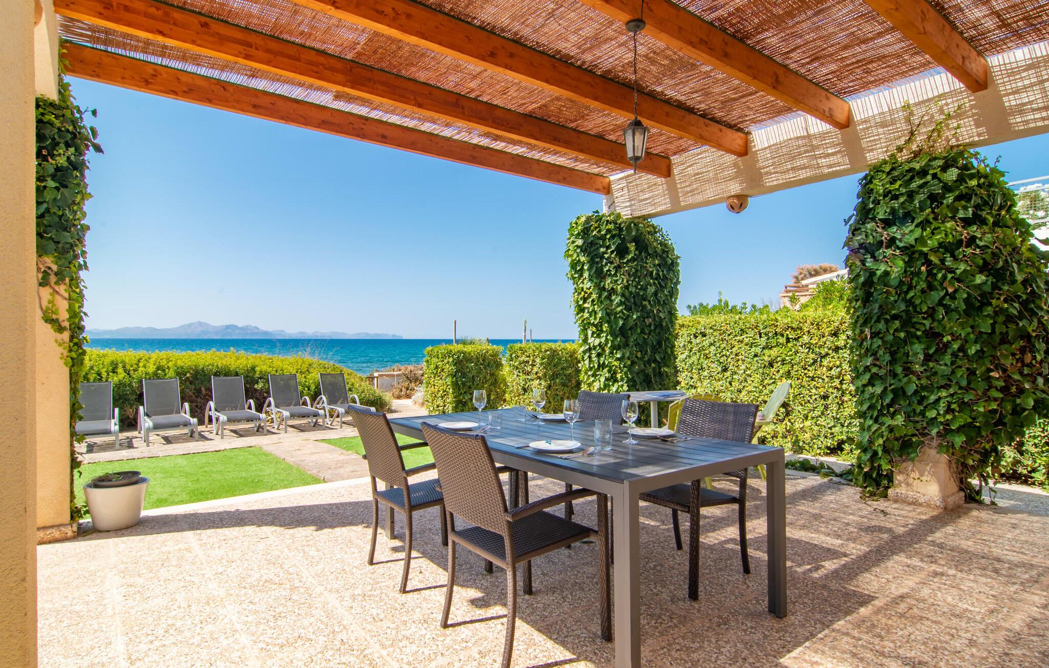 Hvis I ønsker at tilbringe jeres ferie i et smukt strandhus i Colonia Sant Pere, er dette det rigtige sted for jer. I kan lytte til lyden af havets bølger og se mod den modsatte kyst af Alcúdia-bugten. Selve villaen ligger direkte ved havet. Det er fordelt på tre etager. På toppen er der en tagterrasse med en vidunderlig havudsigt. På den nederste overdækkede terrasse kan I nyde en lækker morgenmad og det unikke panorama om morgenen. Derudover kan I afslutte en travl feriedag i en vidunderlig atmosfære og se de blinkende lys i det fjerne. Måske har I lyst til at forsyne jer med regionale delikatesser på de omkringliggende markeder og nyde dem ved en aftengrill. For nemheds skyld finder I en bruser ved siden af hækken i haven, så I kan skylle saltvandet af. I kan slappe af i middelhavssolen af hjertens lyst på liggestolene, der er tilgængelige i den lille, men dejlige have. Det er bedst at parkere jeres bil i siden af vejen lige foran huset. Indenfor har villaen “Randemar” et dobbeltværelse, et værelse med to enkeltsenge, to badeværelser, et køkken og en stue/spisestue. Både soveværelserne og stuen er udstyret med varm/kold aircondition, så en behagelig temperatur kan indstilles til enhver tid. I husets stueetage er der stue/spisestue og det åbne køkken samt brusebadeværelse. Stuen har et originalt og muntert design. I kan gøre jer vidunderlig godt tilpas i hjørnesofaen, og de typiske gyngestole inviterer jer også til at blive hængende. Når temperaturerne er køligere, kan I varme jer behageligt med pejsen. Her er fladskærms-tv'et også bekvemt placeret, så intet står i vejen for en afslappende filmaften. Det åbne køkken er fuldt udstyret med køleskab med fryser, opvaskemaskine, dobbeltvask, keramisk kogeplade, ovn, emhætte, mikroovn, brødrister, elkedel og kaffemaskine. Her kan I endda have havudsigt, mens I har travlt i køkkenet! Vaskemaskinen står i depotrummet. Badeværelset er indrettet i typisk mallorcansk stil og har forsænkede spejle med dekorative flisekanter. Før I falder i søvn, kan I se lysene i Alcúdia; Når I vågner, funkler morgensolens stråler allerede på havet. Skodderne i begge soveværelser kan hæves eller sænkes ved hjælp af en fjernbetjening. Villaen "Randemar" er beliggende ved Alcúdia-bugten i byen S'Estanyol i Colonia San Pere, en del af kommunen Artà. Dette sted er meget stille, og der er kun en håndfuld huse i området. I umiddelbar nærhed finder I den lange strand S'Arenal de Sa Canova. I kan nemt nå dertil på tre minutter til fods. Kysten her er smukt uberørt. Stranden og interiøret er naturreservater. Selv midt om sommeren er der ingen menneskemængder at se. Hvis I vil, kan I tage på kilometerlange vandreture her. Omkring to kilometer fra villaen, mod øst, ligger Colonia San Pere-bugten, ideel til svømning, med en strandpromenade, restauranter og en marina. Promenaden er beskyttet af en badebro, og det rolige vand med let skrånende kyst er meget populær blandt børnefamilier. Stranden lige foran villaen er en stenstrand. Så snart I går i vandet, rammer I sand. Sørg for at pakke svømmebriller, for i de små lavninger i klipperne finder I smukke undervandsplanter, bittesmå glitrende fisk og endda krabber. En fantastisk villa ved havet, hvor I kan nyde en ideel, fredelig, stressfri familieferie! Den kærligt designede villa "Randemar" ligger direkte på stranden i Colònia de Sant Pere, på den nordøstlige side af øen. Kun en havelåge adskiller ejendommen fra stranden. De lange sandstrande i Alcúdia-bugten kan nås på cirka 10 minutter. I Colonia kan I shoppe, slentre langs havnen eller prøve lækre middelhavsretter i fremragende restauranter lige ved havet. Rejsetiden med bil til Palma de Mallorca Lufthavn er cirka en time.