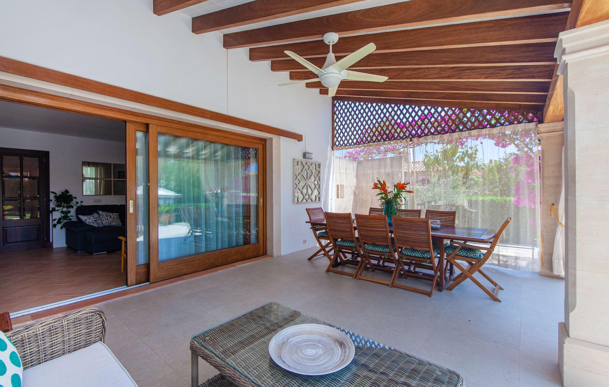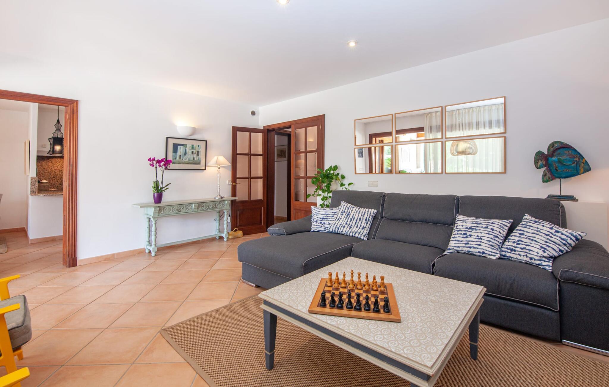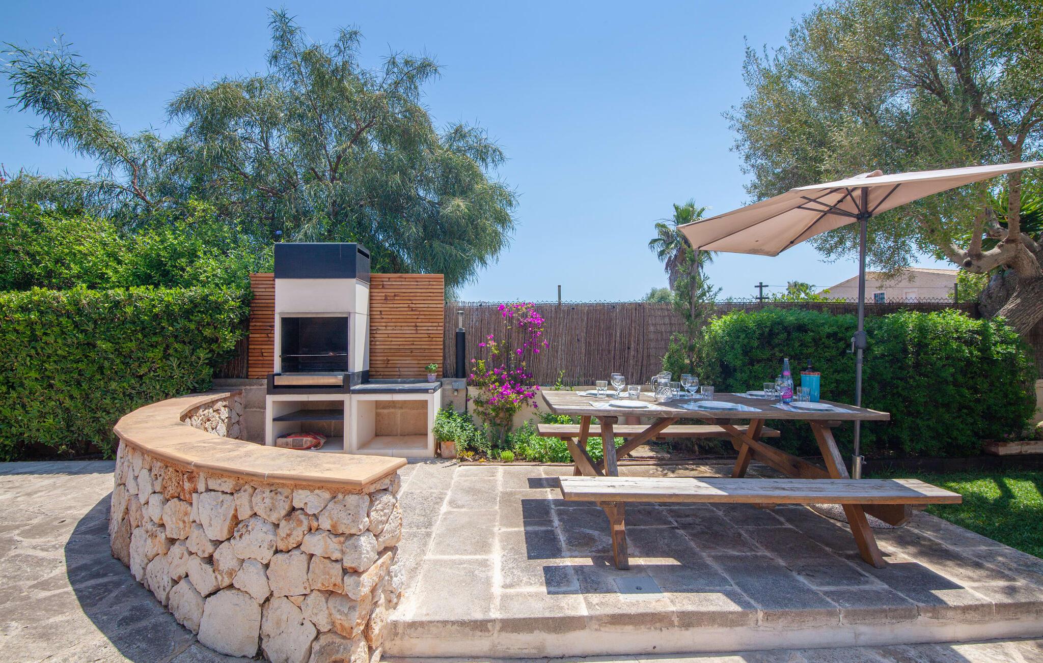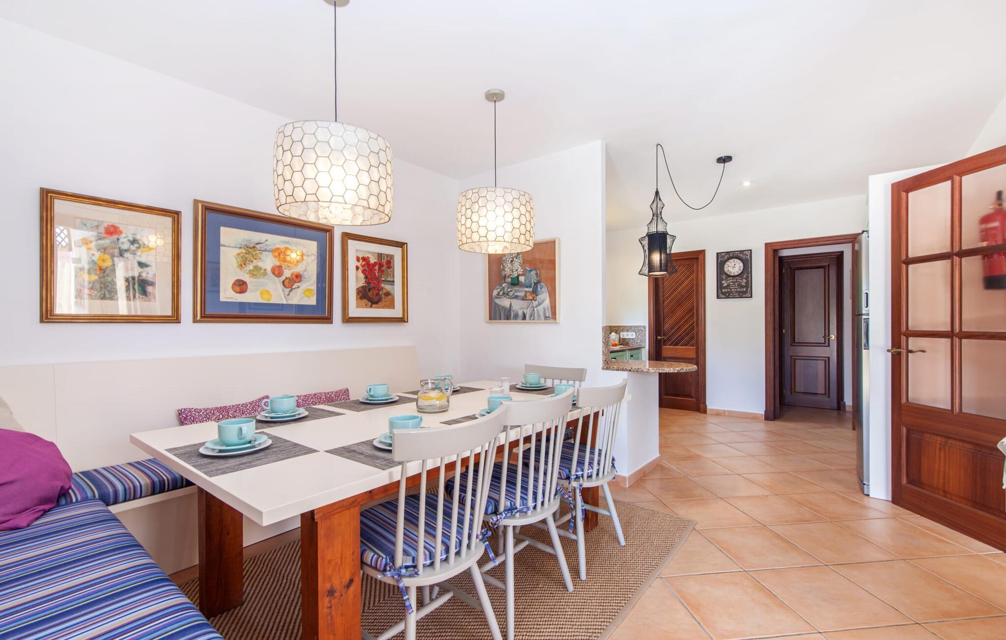 Villa "Rico" vil I ikke spilde noget tid - fra det første øjeblik af jeres ophold vil I nyde en perfekt atmosfære, der taler for sig selv: utallige træer omgiver ejendommen og sikrer privatliv og sikkerhed ved at beskytte jer mod nysgerrige øjne. I kan nyde udeområdet, her er trods alt ikke kun normale havemøbler - i dette tilfælde lavet af fint træ - men også en udendørs sofa og en seng, så når temperaturerne er milde kan I sove under stjernerne eller tag et bad Skøder i måneskin i den komfortable pool, der er tilgængelig via en græsk trappe. Den delvise overdækning af terrassen på huset sikrer, at jeres hud får en kort pause fra solen, inden I skubber en af liggestolene tilbage på den frodige grønne græsplæne eller forkæler jer selv med en plads på kanten af poolen ved stenbruddet på stenplader for at slappe af for at dedikere jer til en ferieroman, mens I langsomt opbygger en appetit, næret af den behagelige, aromatiske saltluft. Det er okay, fordi denne villa har en meget moderne installeret grill, der giver jer masser af plads til at marinere og tilberede jeres delikatesser. Det let hævede terrasseområde med veranda og opholdsområde, der er tilgængeligt via få trin, er omgivet af imponerende blomster; Variationen af planter her er meget forskelligartet, og selv store palmer får jer til at føle, at I er i en lille hyggelig park. Der mangler intet inde i villaen. Fra den stilrene stue, som er udstyret med fladskærms-tv, moderne pejs og en sofa, der inviterer til afslapning og afslapning, træder I ind i spisestuen, som flyder ud i det åbne køkken. Træmøblernes farver harmonerer med de lyse, klare linjer og giver jer følelsen af at have fundet jeres perfekte midlertidige hjem. De store arbejdsflader i køkkenet giver jer plads nok til at tilberede større retter uden at løbe tør for plads. Udover gæstetoilet finder I også tre af soveværelserne og to badeværelser (det ene af dem en-suite) i stueetagen, som er placeret mod husets bagside. Arkitekterne lod generøsiteten råde i badeværelserne, også i brugen af materialer. Træ- og marmorelementer smelter smukt sammen og efterlader ingen tvivl om, at I har valgt et førsteklasses hjem. I kan nå en varm kandidat til jeres yndlingssted via trappen til øverste etage: Her flyder soveværelset og badeværelsesområdet direkte ind i hinanden. I kan nyde en imponerende udsigt fra tagterrassen, det ideelle sted at sidde sammen og planlægge ture til den smukke østlige del af øen. Når I forlader villaen, når I det romantiske centrum af Portocolom på ingen tid. Lige ved havet finder I mange fotomuligheder, hvormed I senere kan skabe en Mallorca-kalender fuld af øjeblikke, der får jeres hjerte til at banke hurtigere. Villaen har en urban karakter, så I kan fordybe jer midt i livet: Gaden løber direkte forbi huset og, selvom den er hørbar, bruges den kun af beboerne, så støjniveauet er til at tåle. De utallige bådhavne og pastelfarvede huse langs byens kyst udstråler en smuk ø-charme. Byen er opdelt i et gammelt byområde omkring havnen og urbaniseringen i syd på den smukke Cala Marcal bugt; I kan bestemme, om I hellere vil shoppe og slentre gennem de smukke gader eller svømme i det salte blå. Portocolom blev bygget som en havn for byen Felanitx. Fiskerbyen er officielt en del af Felanitx, hvor I bestemt bør besøge det ugentlige marked for at opdage lækkerier, som I senere kan smide på grillen. Den charmerende villa "Rico" ligger i den idylliske fiskerby Portocolom - der er kun 400 meter til fods til centrum. Og I er klar til havet! Udover et udvalg af indkøbsmuligheder har Portocolom også mange hyggelige barer og gode restauranter. De meget attraktive strande på østkysten, "Calas de Mallorca", med deres finkornede sand, kan hurtigt og nemt nås i bil.