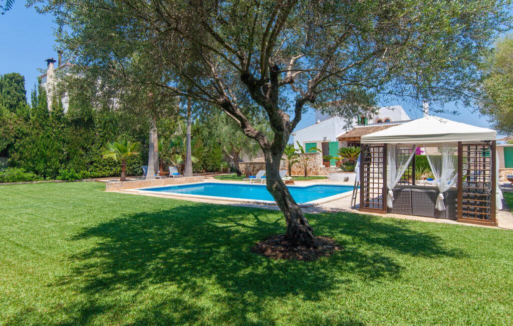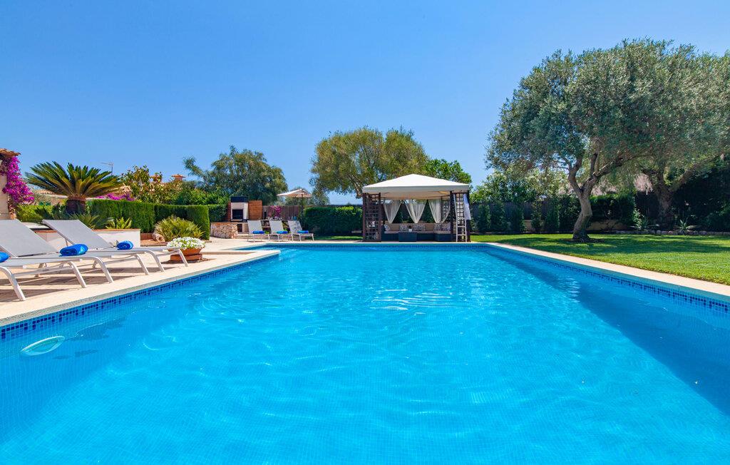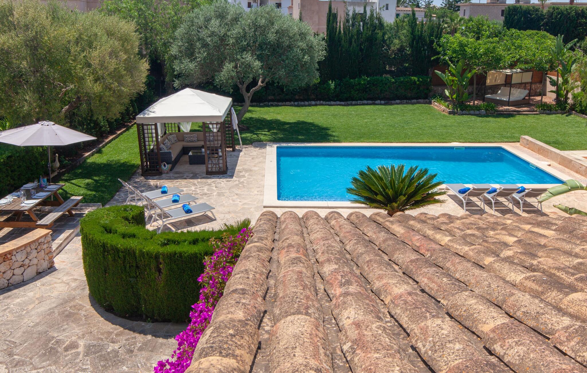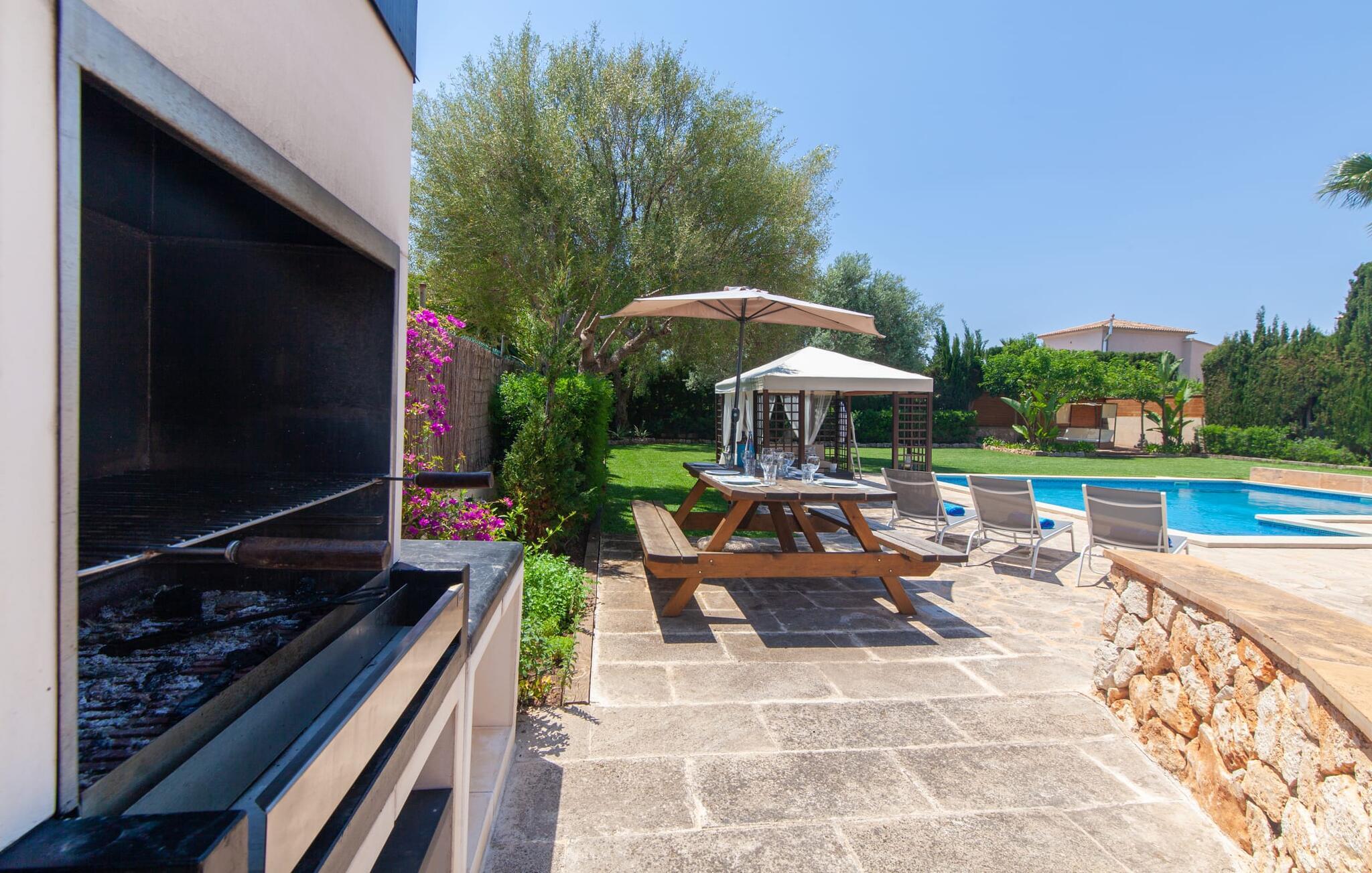 Villa "Rico" vil I ikke spilde noget tid - fra det første øjeblik af jeres ophold vil I nyde en perfekt atmosfære, der taler for sig selv: utallige træer omgiver ejendommen og sikrer privatliv og sikkerhed ved at beskytte jer mod nysgerrige øjne. I kan nyde udeområdet, her er trods alt ikke kun normale havemøbler - i dette tilfælde lavet af fint træ - men også en udendørs sofa og en seng, så når temperaturerne er milde kan I sove under stjernerne eller tag et bad Skøder i måneskin i den komfortable pool, der er tilgængelig via en græsk trappe. Den delvise overdækning af terrassen på huset sikrer, at jeres hud får en kort pause fra solen, inden I skubber en af liggestolene tilbage på den frodige grønne græsplæne eller forkæler jer selv med en plads på kanten af poolen ved stenbruddet på stenplader for at slappe af for at dedikere jer til en ferieroman, mens I langsomt opbygger en appetit, næret af den behagelige, aromatiske saltluft. Det er okay, fordi denne villa har en meget moderne installeret grill, der giver jer masser af plads til at marinere og tilberede jeres delikatesser. Det let hævede terrasseområde med veranda og opholdsområde, der er tilgængeligt via få trin, er omgivet af imponerende blomster; Variationen af planter her er meget forskelligartet, og selv store palmer får jer til at føle, at I er i en lille hyggelig park. Der mangler intet inde i villaen. Fra den stilrene stue, som er udstyret med fladskærms-tv, moderne pejs og en sofa, der inviterer til afslapning og afslapning, træder I ind i spisestuen, som flyder ud i det åbne køkken. Træmøblernes farver harmonerer med de lyse, klare linjer og giver jer følelsen af at have fundet jeres perfekte midlertidige hjem. De store arbejdsflader i køkkenet giver jer plads nok til at tilberede større retter uden at løbe tør for plads. Udover gæstetoilet finder I også tre af soveværelserne og to badeværelser (det ene af dem en-suite) i stueetagen, som er placeret mod husets bagside. Arkitekterne lod generøsiteten råde i badeværelserne, også i brugen af materialer. Træ- og marmorelementer smelter smukt sammen og efterlader ingen tvivl om, at I har valgt et førsteklasses hjem. I kan nå en varm kandidat til jeres yndlingssted via trappen til øverste etage: Her flyder soveværelset og badeværelsesområdet direkte ind i hinanden. I kan nyde en imponerende udsigt fra tagterrassen, det ideelle sted at sidde sammen og planlægge ture til den smukke østlige del af øen. Når I forlader villaen, når I det romantiske centrum af Portocolom på ingen tid. Lige ved havet finder I mange fotomuligheder, hvormed I senere kan skabe en Mallorca-kalender fuld af øjeblikke, der får jeres hjerte til at banke hurtigere. Villaen har en urban karakter, så I kan fordybe jer midt i livet: Gaden løber direkte forbi huset og, selvom den er hørbar, bruges den kun af beboerne, så støjniveauet er til at tåle. De utallige bådhavne og pastelfarvede huse langs byens kyst udstråler en smuk ø-charme. Byen er opdelt i et gammelt byområde omkring havnen og urbaniseringen i syd på den smukke Cala Marcal bugt; I kan bestemme, om I hellere vil shoppe og slentre gennem de smukke gader eller svømme i det salte blå. Portocolom blev bygget som en havn for byen Felanitx. Fiskerbyen er officielt en del af Felanitx, hvor I bestemt bør besøge det ugentlige marked for at opdage lækkerier, som I senere kan smide på grillen. Den charmerende villa "Rico" ligger i den idylliske fiskerby Portocolom - der er kun 400 meter til fods til centrum. Og I er klar til havet! Udover et udvalg af indkøbsmuligheder har Portocolom også mange hyggelige barer og gode restauranter. De meget attraktive strande på østkysten, "Calas de Mallorca", med deres finkornede sand, kan hurtigt og nemt nås i bil.