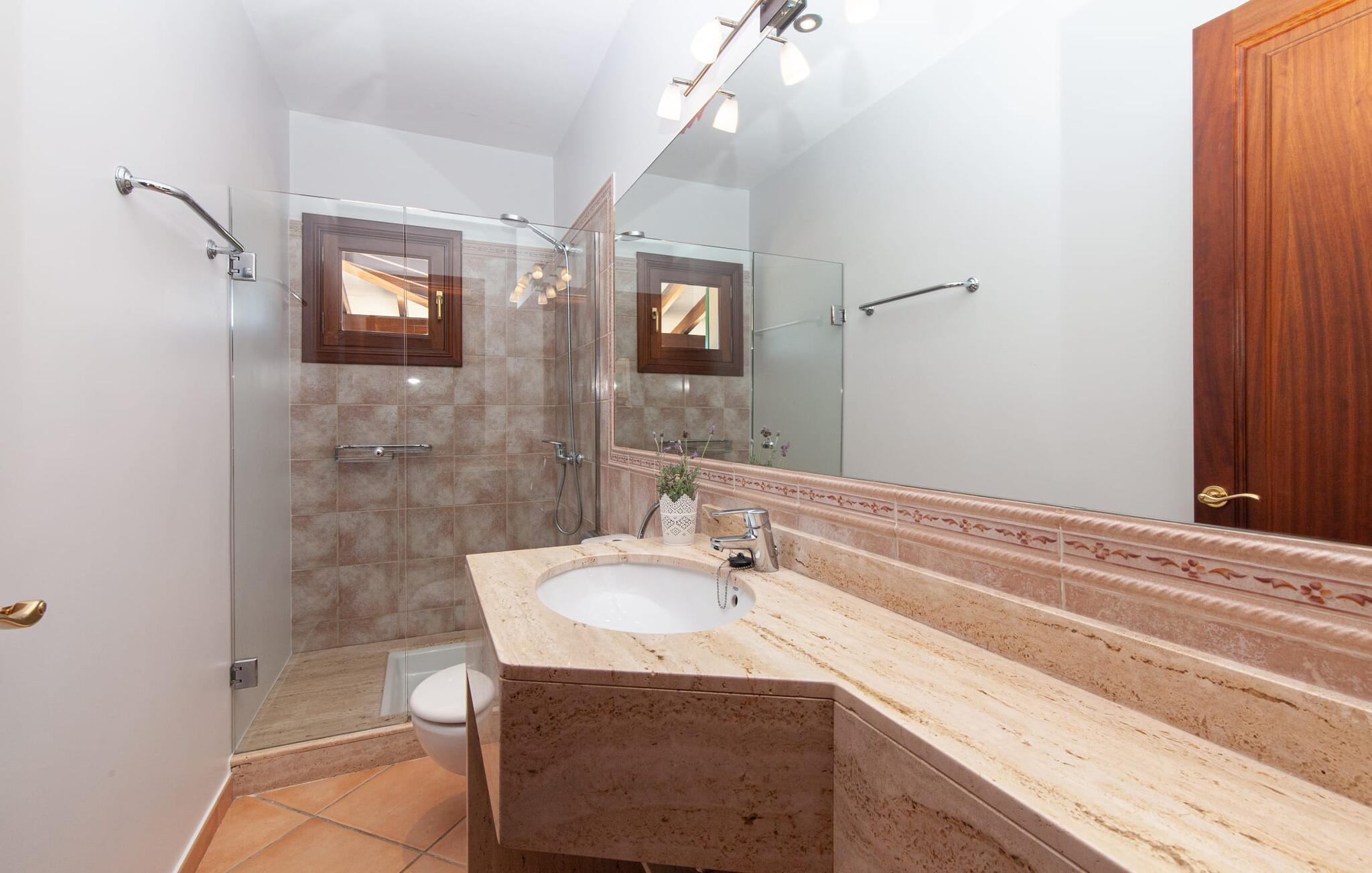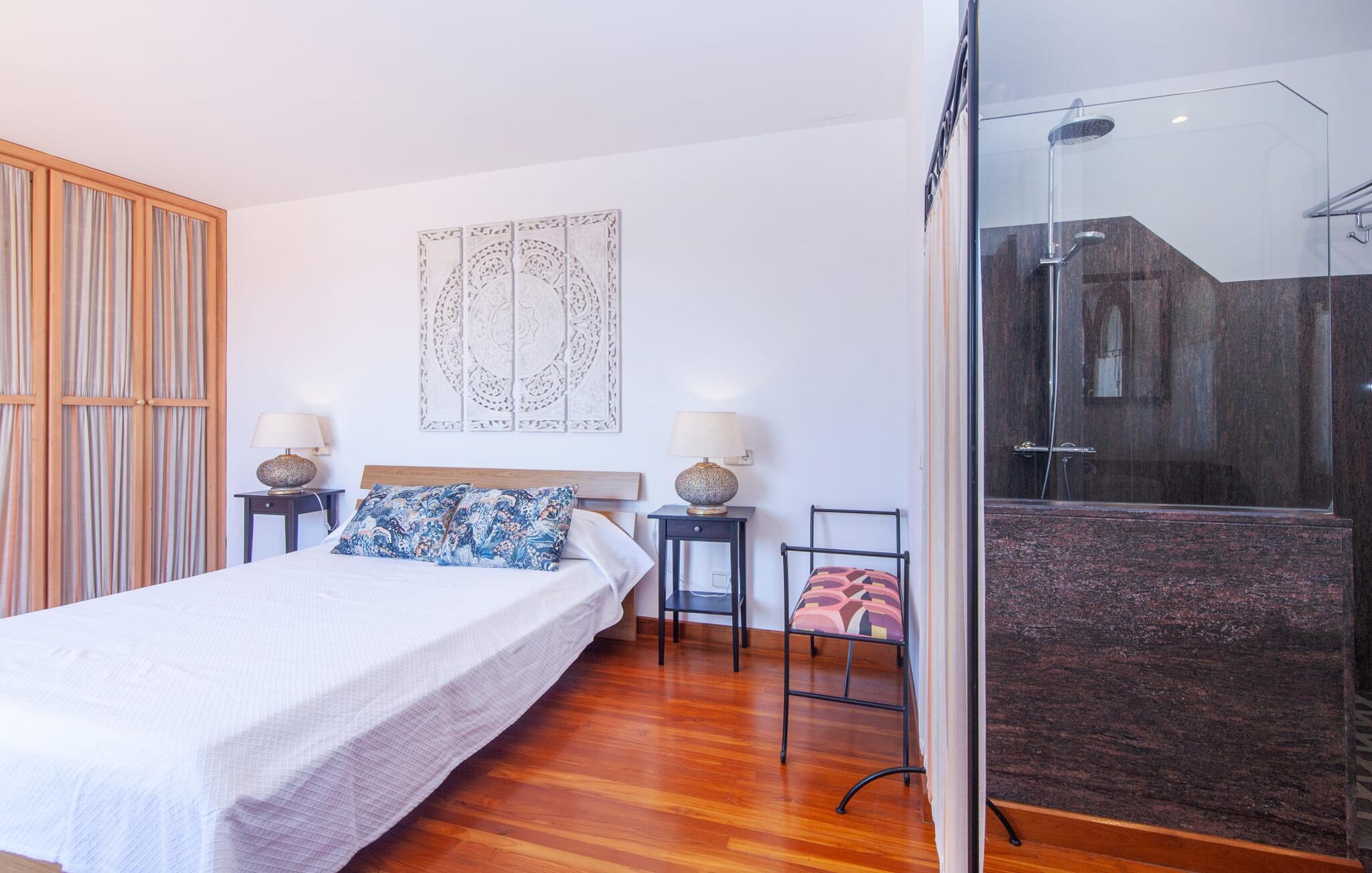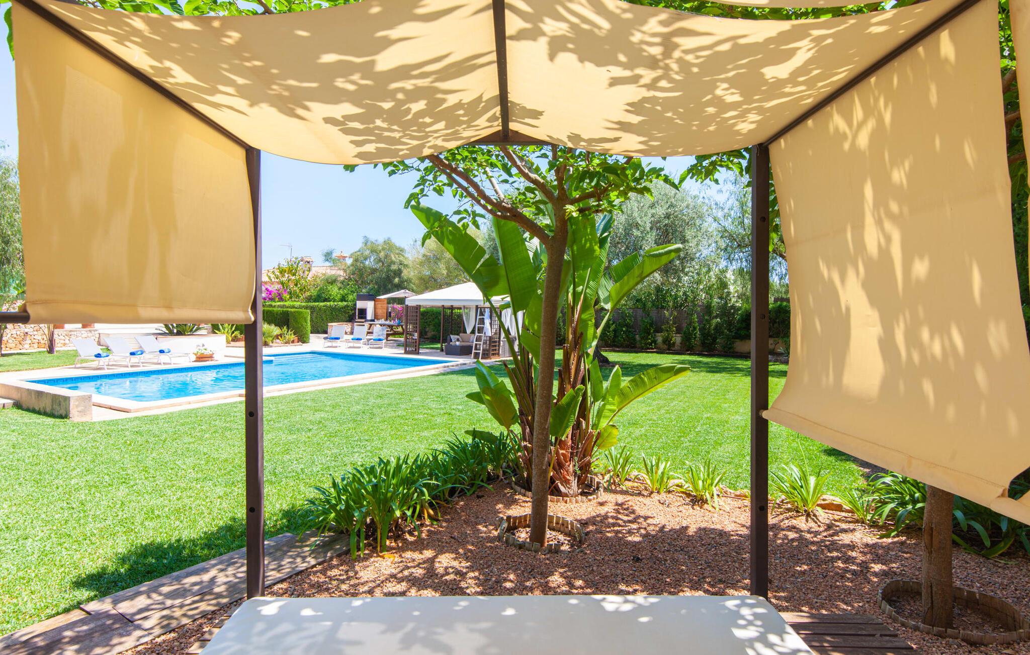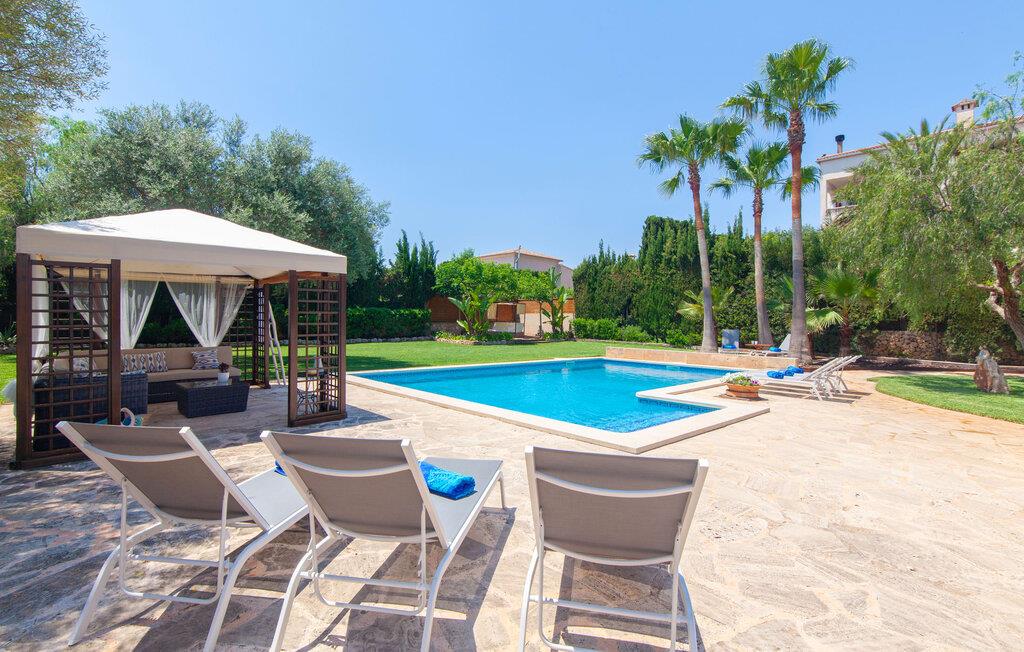 Villa "Rico" vil I ikke spilde noget tid - fra det første øjeblik af jeres ophold vil I nyde en perfekt atmosfære, der taler for sig selv: utallige træer omgiver ejendommen og sikrer privatliv og sikkerhed ved at beskytte jer mod nysgerrige øjne. I kan nyde udeområdet, her er trods alt ikke kun normale havemøbler - i dette tilfælde lavet af fint træ - men også en udendørs sofa og en seng, så når temperaturerne er milde kan I sove under stjernerne eller tag et bad Skøder i måneskin i den komfortable pool, der er tilgængelig via en græsk trappe. Den delvise overdækning af terrassen på huset sikrer, at jeres hud får en kort pause fra solen, inden I skubber en af liggestolene tilbage på den frodige grønne græsplæne eller forkæler jer selv med en plads på kanten af poolen ved stenbruddet på stenplader for at slappe af for at dedikere jer til en ferieroman, mens I langsomt opbygger en appetit, næret af den behagelige, aromatiske saltluft. Det er okay, fordi denne villa har en meget moderne installeret grill, der giver jer masser af plads til at marinere og tilberede jeres delikatesser. Det let hævede terrasseområde med veranda og opholdsområde, der er tilgængeligt via få trin, er omgivet af imponerende blomster; Variationen af planter her er meget forskelligartet, og selv store palmer får jer til at føle, at I er i en lille hyggelig park. Der mangler intet inde i villaen. Fra den stilrene stue, som er udstyret med fladskærms-tv, moderne pejs og en sofa, der inviterer til afslapning og afslapning, træder I ind i spisestuen, som flyder ud i det åbne køkken. Træmøblernes farver harmonerer med de lyse, klare linjer og giver jer følelsen af at have fundet jeres perfekte midlertidige hjem. De store arbejdsflader i køkkenet giver jer plads nok til at tilberede større retter uden at løbe tør for plads. Udover gæstetoilet finder I også tre af soveværelserne og to badeværelser (det ene af dem en-suite) i stueetagen, som er placeret mod husets bagside. Arkitekterne lod generøsiteten råde i badeværelserne, også i brugen af materialer. Træ- og marmorelementer smelter smukt sammen og efterlader ingen tvivl om, at I har valgt et førsteklasses hjem. I kan nå en varm kandidat til jeres yndlingssted via trappen til øverste etage: Her flyder soveværelset og badeværelsesområdet direkte ind i hinanden. I kan nyde en imponerende udsigt fra tagterrassen, det ideelle sted at sidde sammen og planlægge ture til den smukke østlige del af øen. Når I forlader villaen, når I det romantiske centrum af Portocolom på ingen tid. Lige ved havet finder I mange fotomuligheder, hvormed I senere kan skabe en Mallorca-kalender fuld af øjeblikke, der får jeres hjerte til at banke hurtigere. Villaen har en urban karakter, så I kan fordybe jer midt i livet: Gaden løber direkte forbi huset og, selvom den er hørbar, bruges den kun af beboerne, så støjniveauet er til at tåle. De utallige bådhavne og pastelfarvede huse langs byens kyst udstråler en smuk ø-charme. Byen er opdelt i et gammelt byområde omkring havnen og urbaniseringen i syd på den smukke Cala Marcal bugt; I kan bestemme, om I hellere vil shoppe og slentre gennem de smukke gader eller svømme i det salte blå. Portocolom blev bygget som en havn for byen Felanitx. Fiskerbyen er officielt en del af Felanitx, hvor I bestemt bør besøge det ugentlige marked for at opdage lækkerier, som I senere kan smide på grillen. Den charmerende villa "Rico" ligger i den idylliske fiskerby Portocolom - der er kun 400 meter til fods til centrum. Og I er klar til havet! Udover et udvalg af indkøbsmuligheder har Portocolom også mange hyggelige barer og gode restauranter. De meget attraktive strande på østkysten, "Calas de Mallorca", med deres finkornede sand, kan hurtigt og nemt nås i bil.