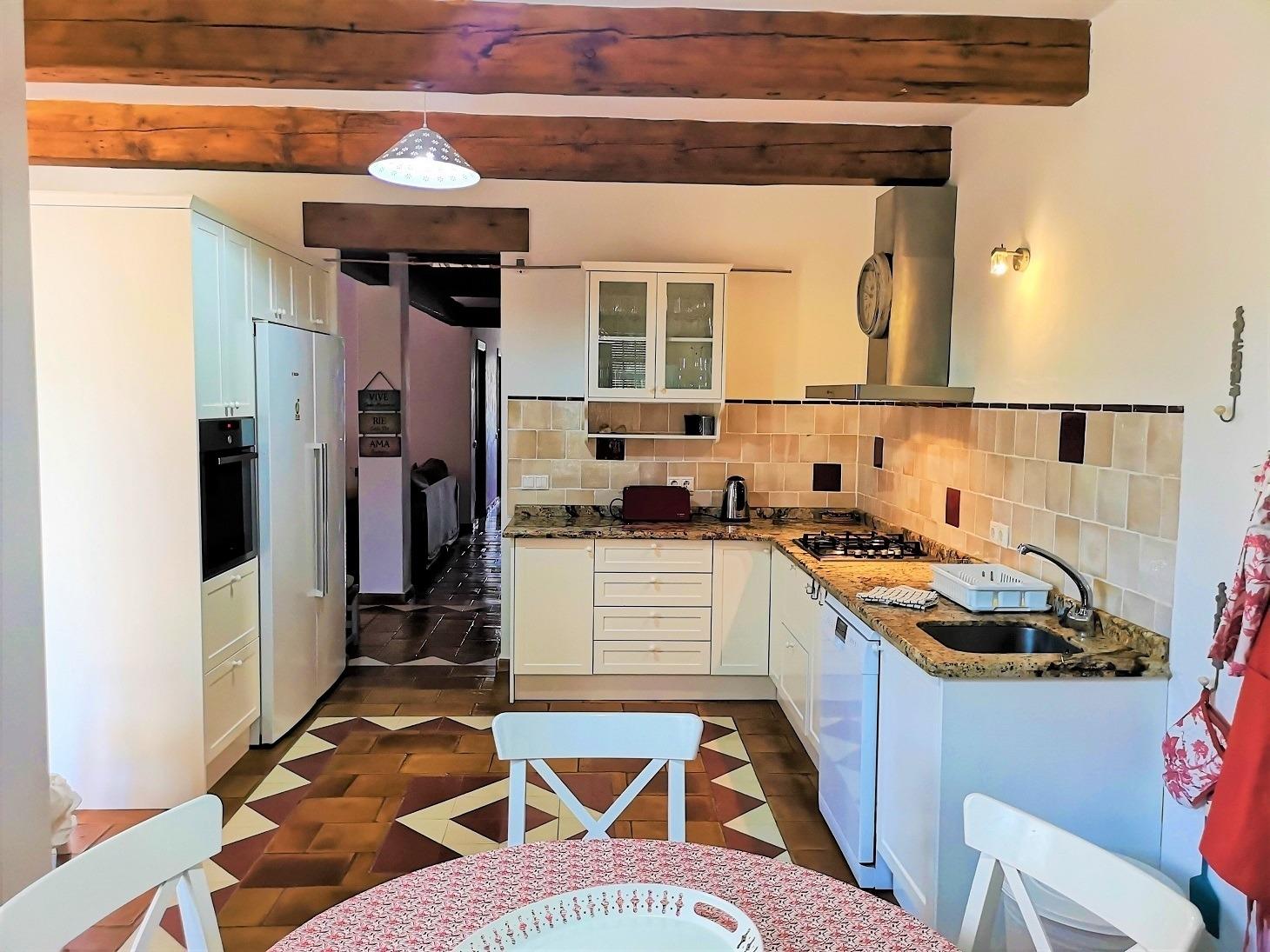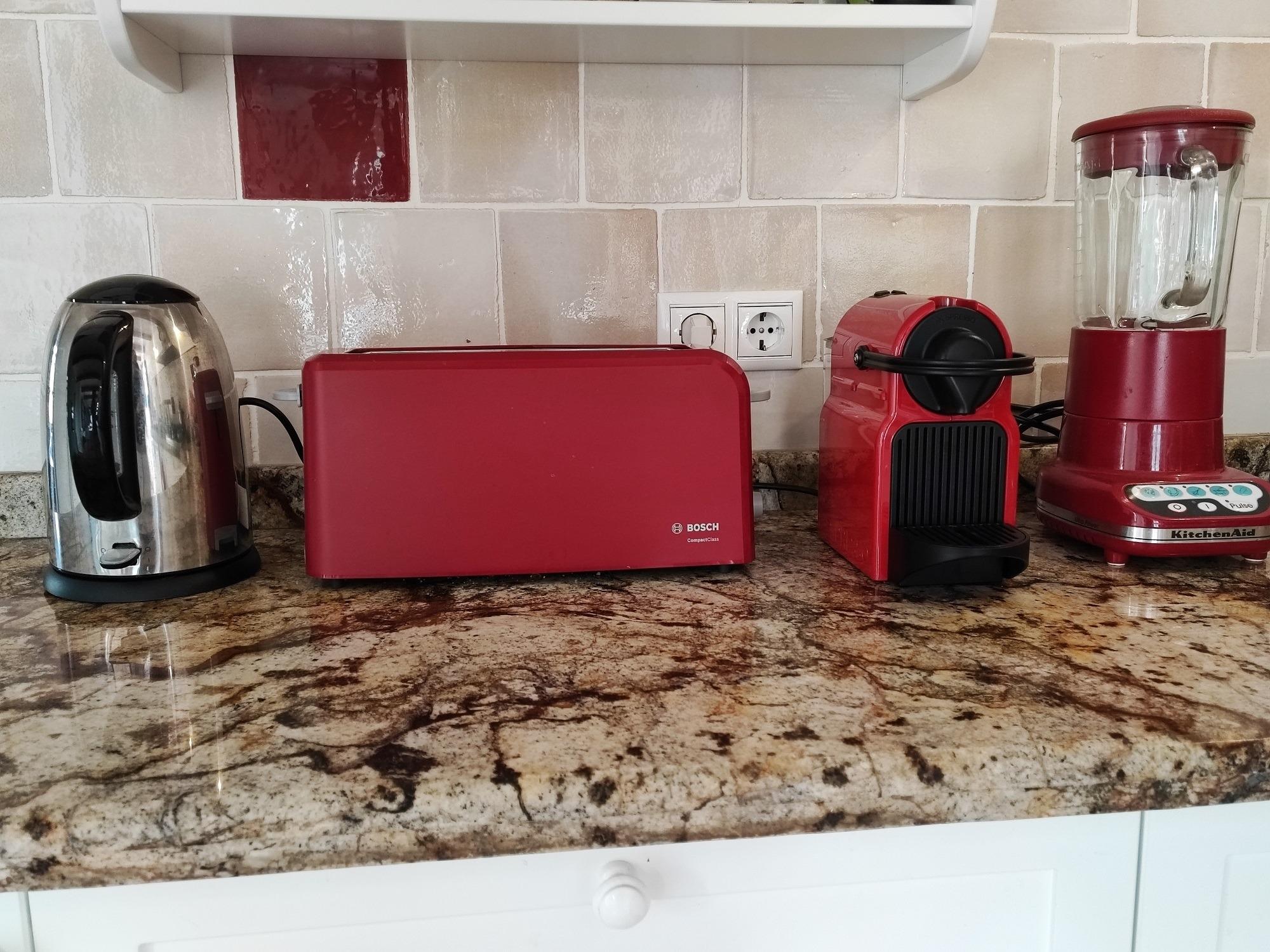 - Voll ausgestattete Küche mit hochwertigen Markengeräten: großer Kühlgefrierschrank, Elektro-Backofen, Gasherd, Mikrowelle, Geschirrspülmaschine, Toaster, Mixer, Nespresso-Maschine, Wasserkocher, zudem Esstisch mit sechs Stühlen für gesellige Runden, gemeinsames Kochen, essen, plaudern oder Gesellschaftsspiele. Inklusive Erstausstattung Spülmaschinentabs, Spülmittel, Geschirrhandtücher und Topflappen