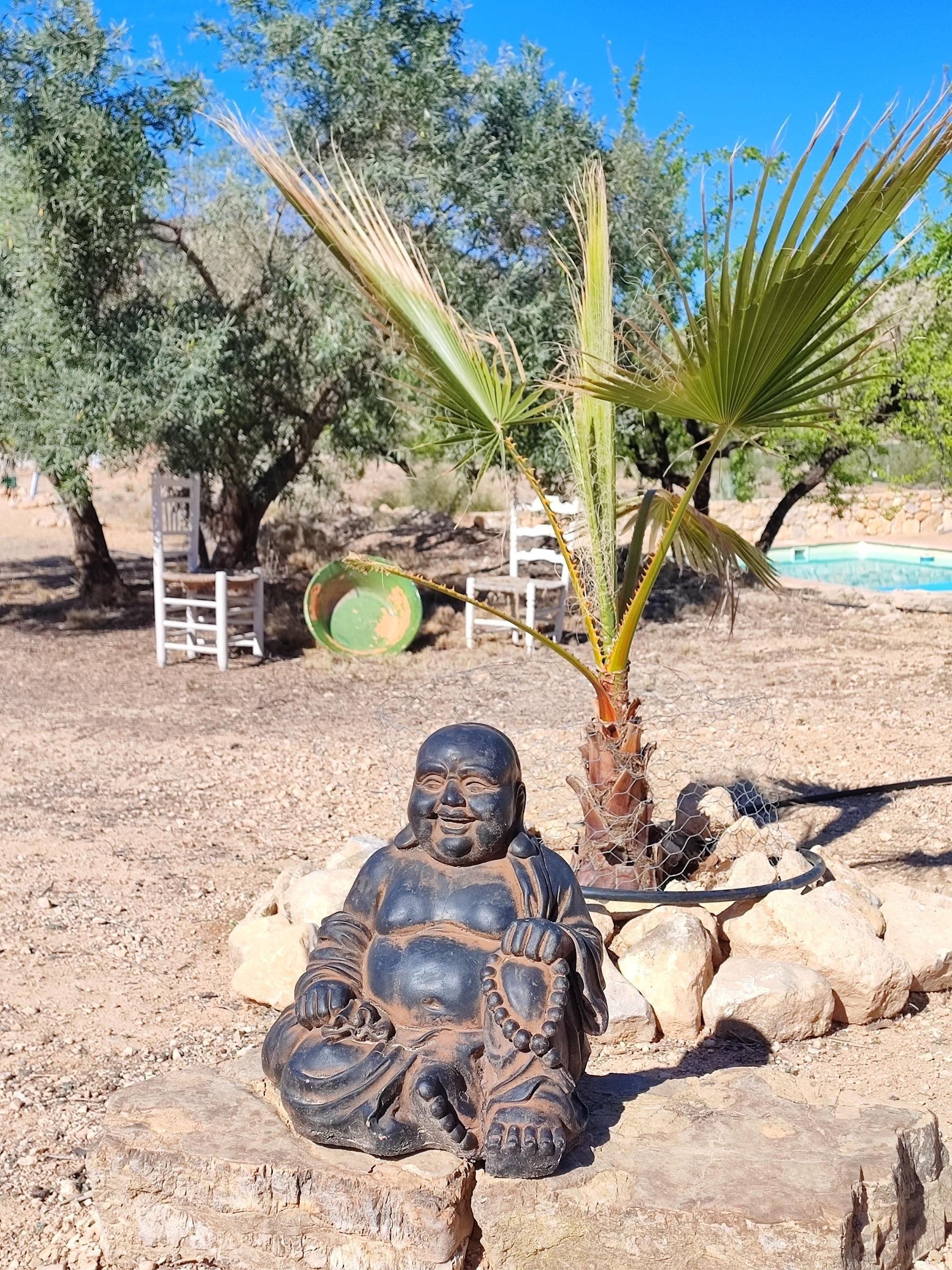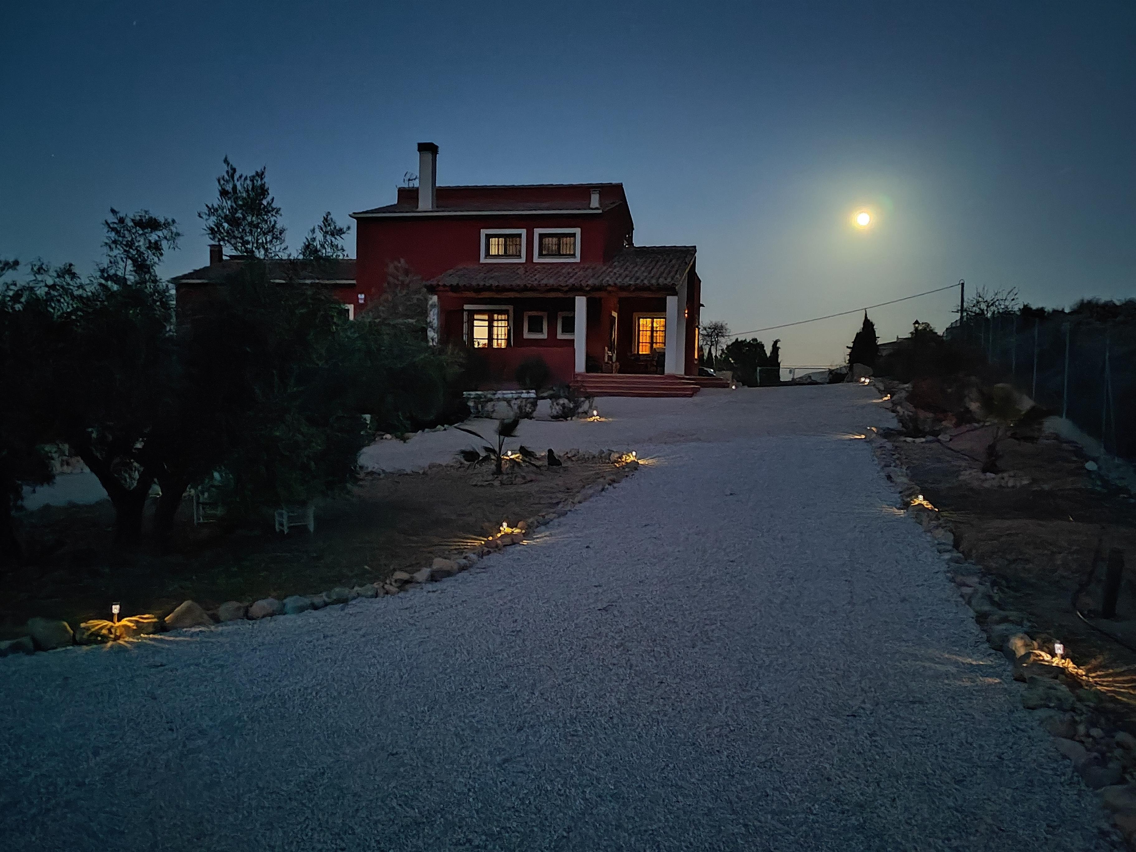 Die direkt von der Küche zugängliche Terrasse ist mit BBQ und Outdoor-Sitzgruppe der Garant für kurze Wege und Grillerlebnisse mit fantastischem Ausblick in die Berge. Insgesamt vier möblierte, teilweise überdachte Terrassen mit Blick in alle vier Himmelsrichtungen laden tagsüber zum Entspannen oder nachts zum Sternegucken und Mondbaden ein. Der herrlich in die Landschaft eingebettete Privatpool bietet für Sonnenhungrige Poolliegen, für den Plausch mit Familie und Freunden eine überdachte Lounge-Ecke und für Wasserfans natürlich Abkühlung und Vergnügen. In der Hängematte ist "Seele baumeln lassen" angesagt. Das 9000 qm große, komplett umzäunte Grundstück (Zaunhöhe 1,80m, Maschendraht) ist mit den auf dem Campo typischen Oliven- und Mandelbäumen, mit Oleanderbüschen sowie einer Vielfalt an Bäumen und Sträuchern bewachsen. Die breite Einfahrt mit verschließbarem Tor grenzt zur wenig befahrenen, aber geteerten Straße. Parkplatzmöglichkeiten sind auf dem Gelände ausreichend vorhanden.