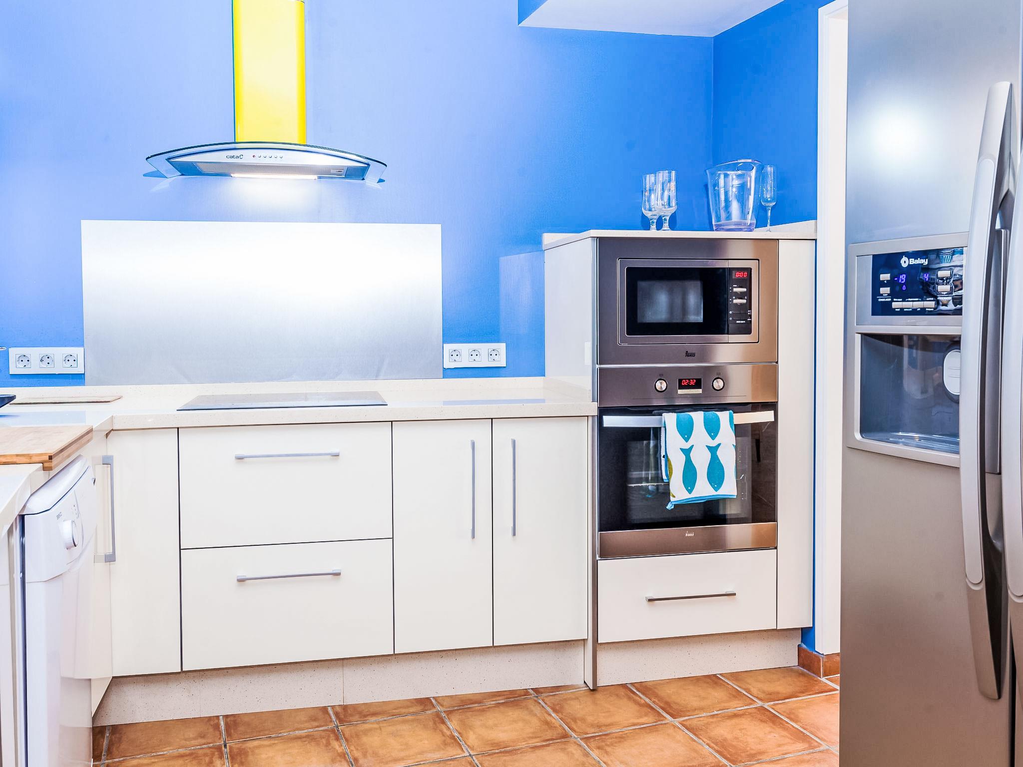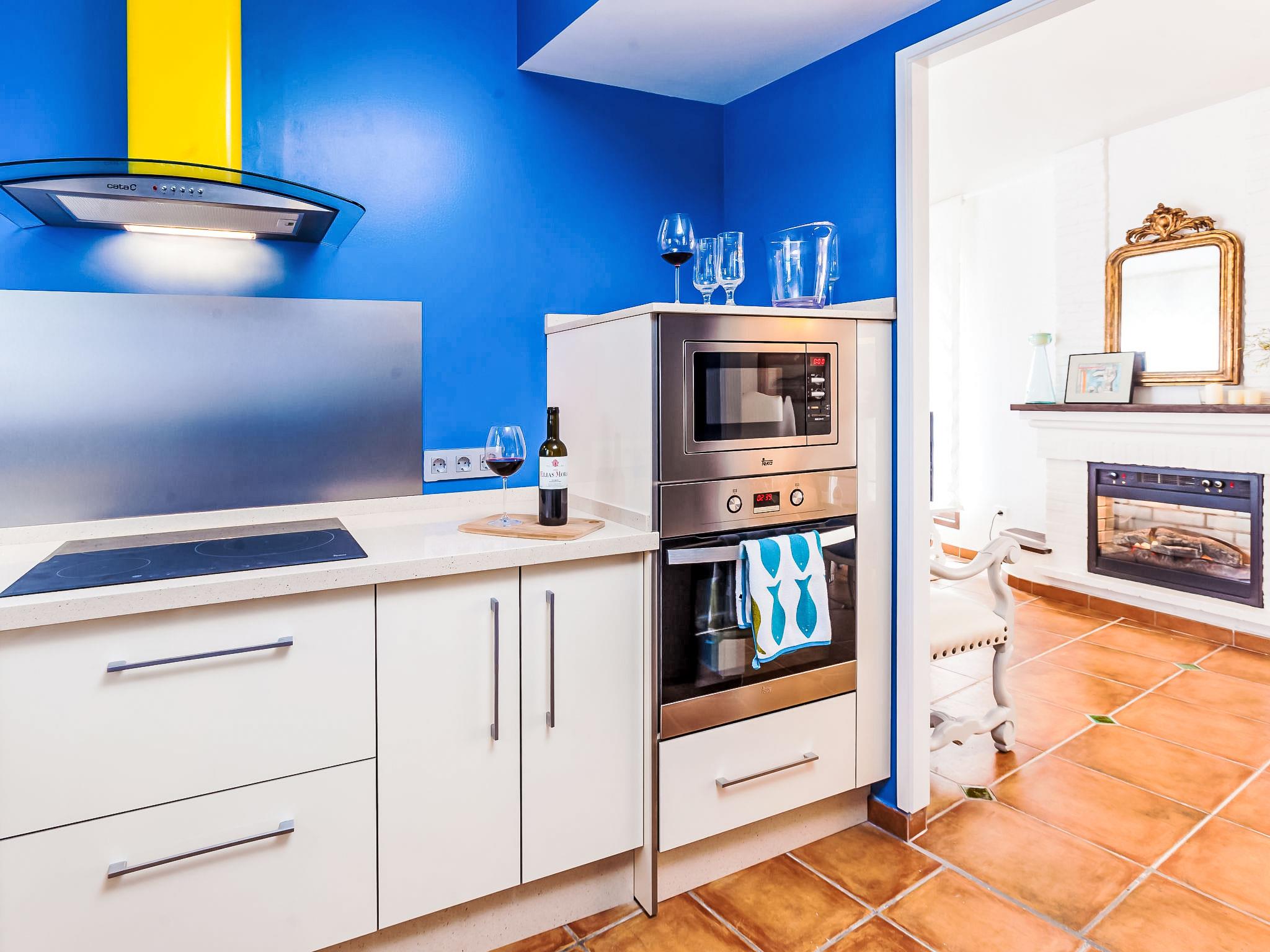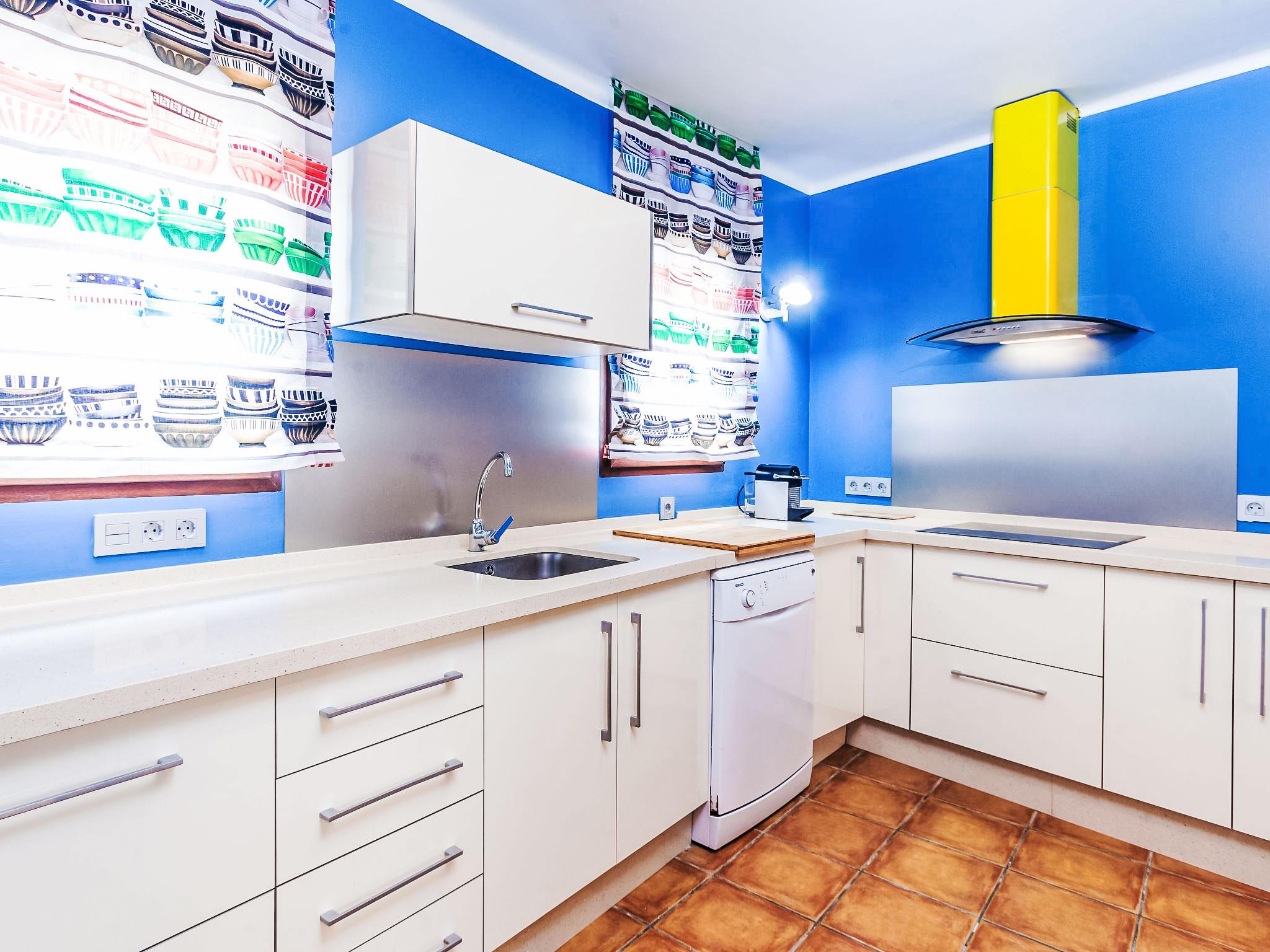 "Zurbarán by the Sea", 4-room villa 150 m2, south-east facing position. Spacious, fully renovated in 2016, very beautiful and modern furnishings: living/dining room with open-hearth fireplace, TV and digital TV. Exit to the patio. 1 room with 1 bed (150 cm). 1 room with 2 beds (90 cm). 1 room with 1 bed (150 cm), bath/WC and hydro massage bath. Kitchen (oven, dishwasher, 3 induction hot plates, toaster, kettle, microwave, freezer). 2 showers/WC. Large terrace 44 m2, south facing position. Terrace furniture, barbecue, deck chairs, covered balcony. Very beautiful view of the sea. Facilities: washing machine, iron, hair dryer. Internet (WiFi, free). Garage. Please note: suitable for families. TV only ES. CTC-2017044731 // Reg. Nr.: ESFCTU00002902500028921200000000000000CTC-20170447318