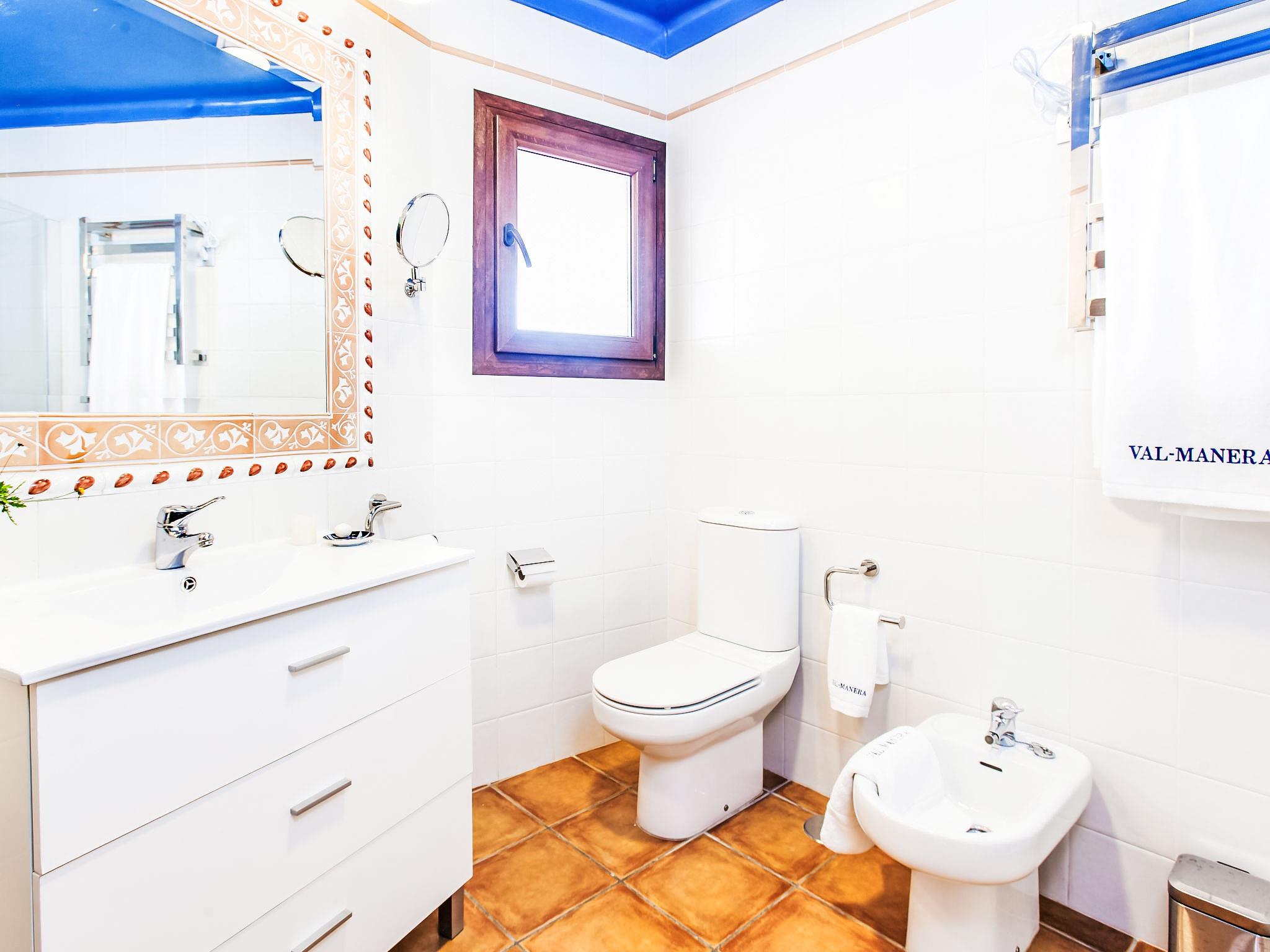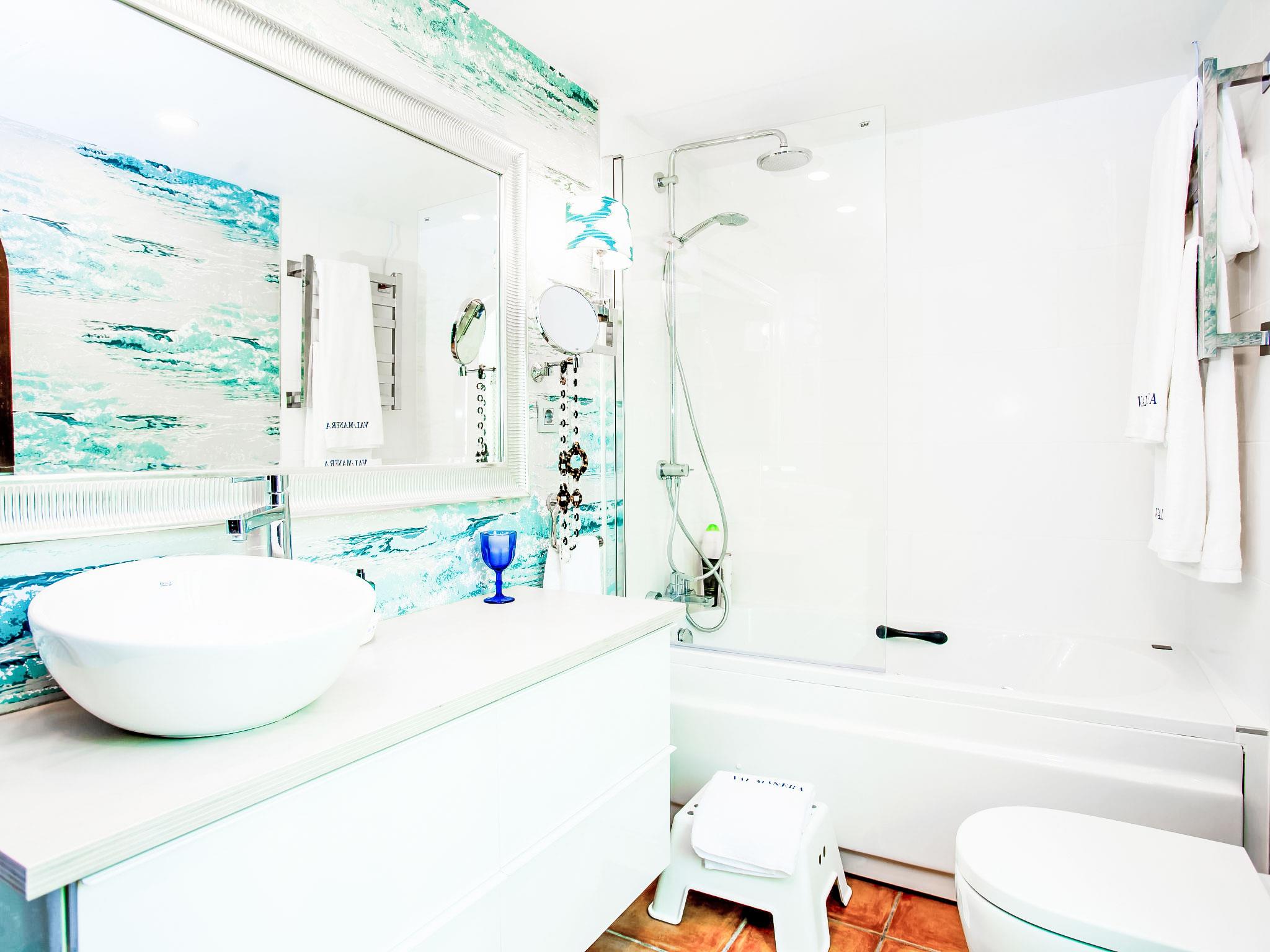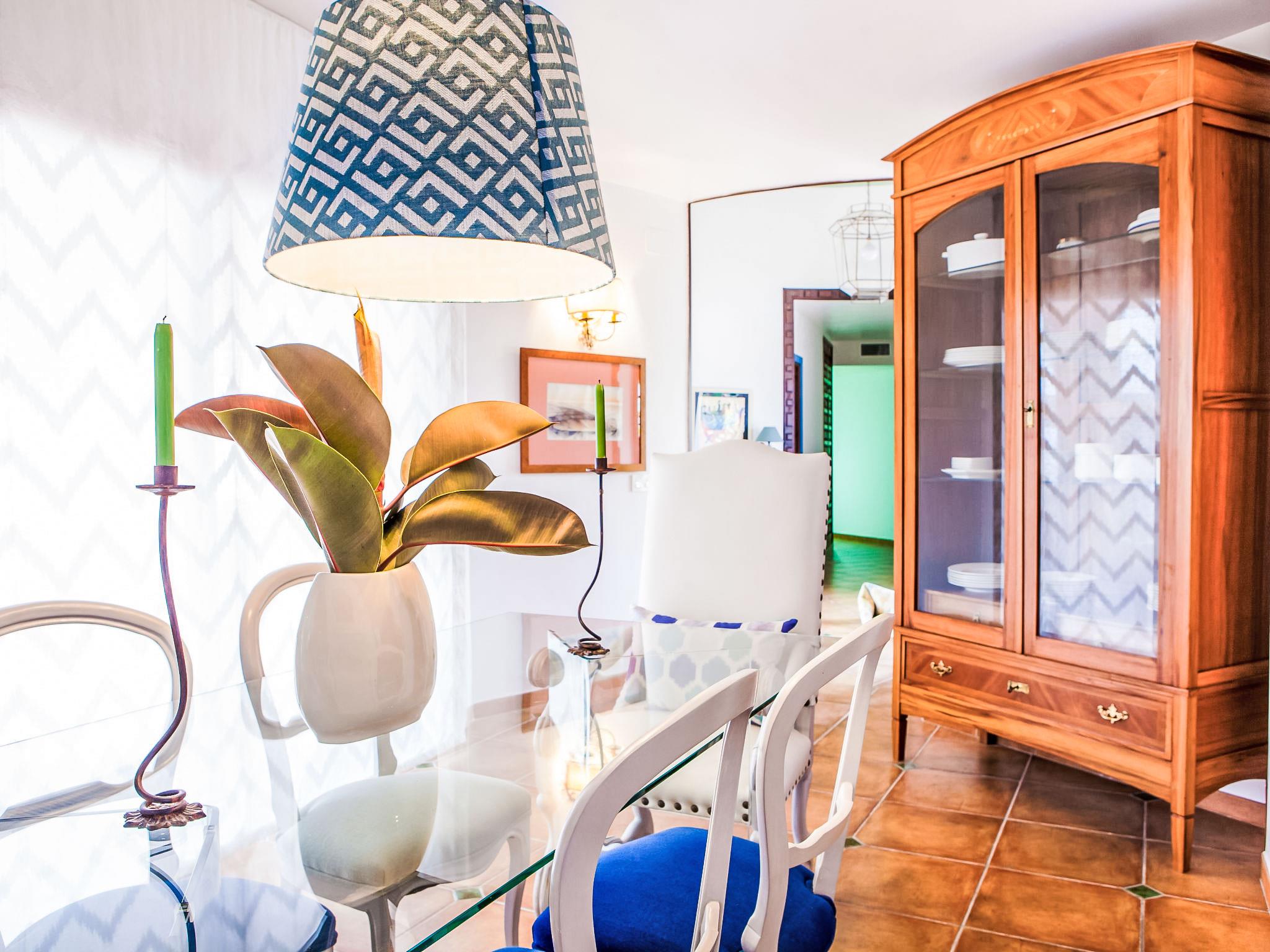 "Zurbarán by the Sea", 4-room villa 150 m2, south-east facing position. Spacious, fully renovated in 2016, very beautiful and modern furnishings: living/dining room with open-hearth fireplace, TV and digital TV. Exit to the patio. 1 room with 1 bed (150 cm). 1 room with 2 beds (90 cm). 1 room with 1 bed (150 cm), bath/WC and hydro massage bath. Kitchen (oven, dishwasher, 3 induction hot plates, toaster, kettle, microwave, freezer). 2 showers/WC. Large terrace 44 m2, south facing position. Terrace furniture, barbecue, deck chairs, covered balcony. Very beautiful view of the sea. Facilities: washing machine, iron, hair dryer. Internet (WiFi, free). Garage. Please note: suitable for families. TV only ES. CTC-2017044731 // Reg. Nr.: ESFCTU00002902500028921200000000000000CTC-20170447318