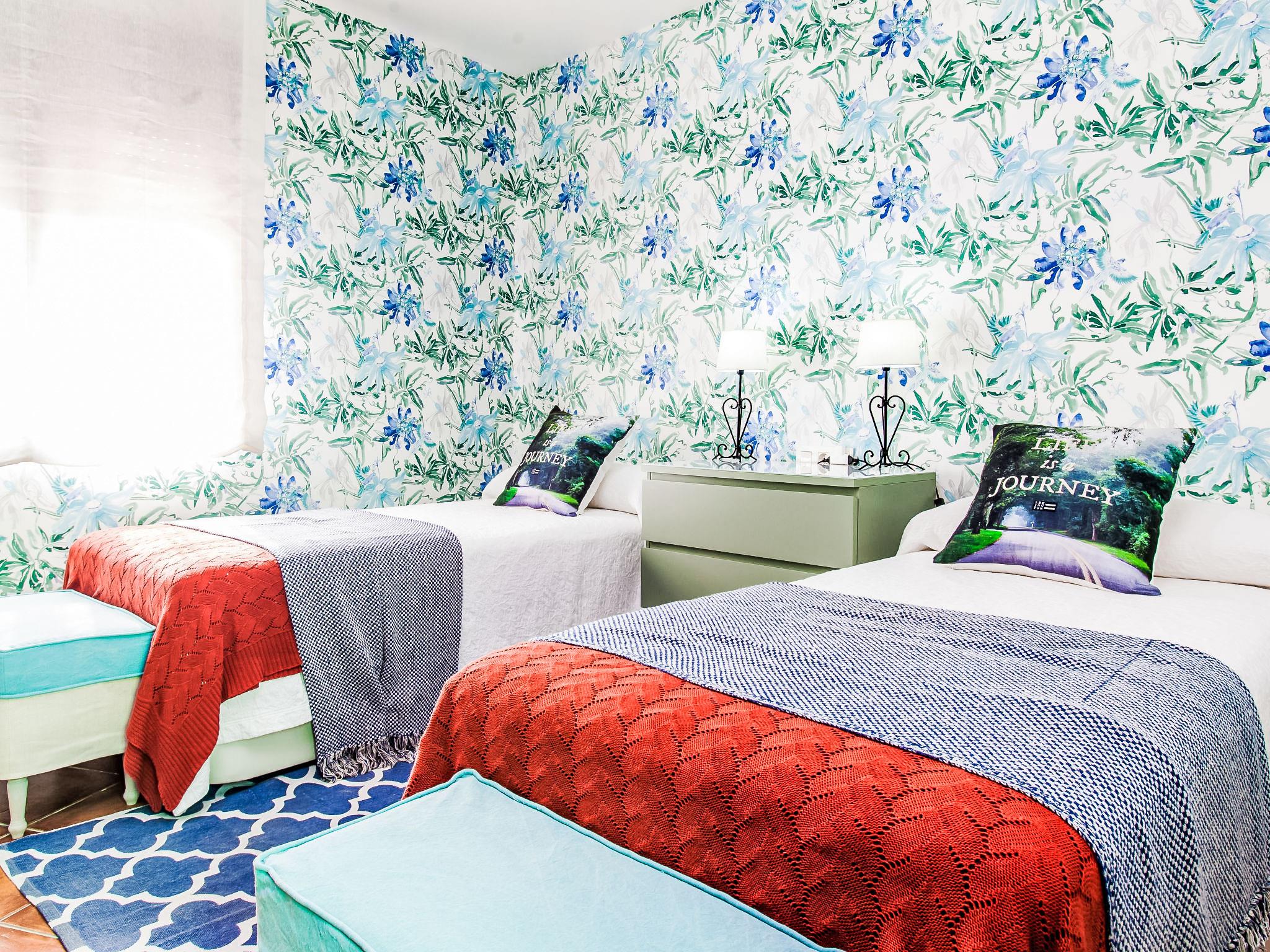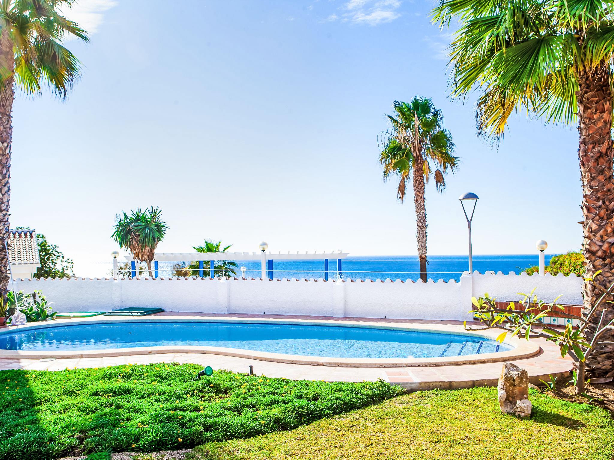 Rincon de la victoria: Very beautiful, comfortable villa "Zurbarán by the Sea". In the resort 800 m from the centre of Rincón de la Victoria, in a quiet, sunny position, 300 m from the sea, south-east facing position. Private: large, beautiful garden with lawn 470 m2 wildlife garden, swimming pool kidney shaped (8 x 3 m, seasonal availability: 01.Jan. - 31.Dec.) with salt water. Garden furniture, barbecue, pool maintenance by the owner/gardener. In the house: WiFi, central heating system, air conditioning, washing machine. Supermarket 500 m, shopping centre 2 km, café 400 m, bus stop 300 m, sandy beach "walking distance" 300 m. Golf course (18 hole) 5 km. Please note: baby equipment on request (extra). Groups of teenagers on request only.