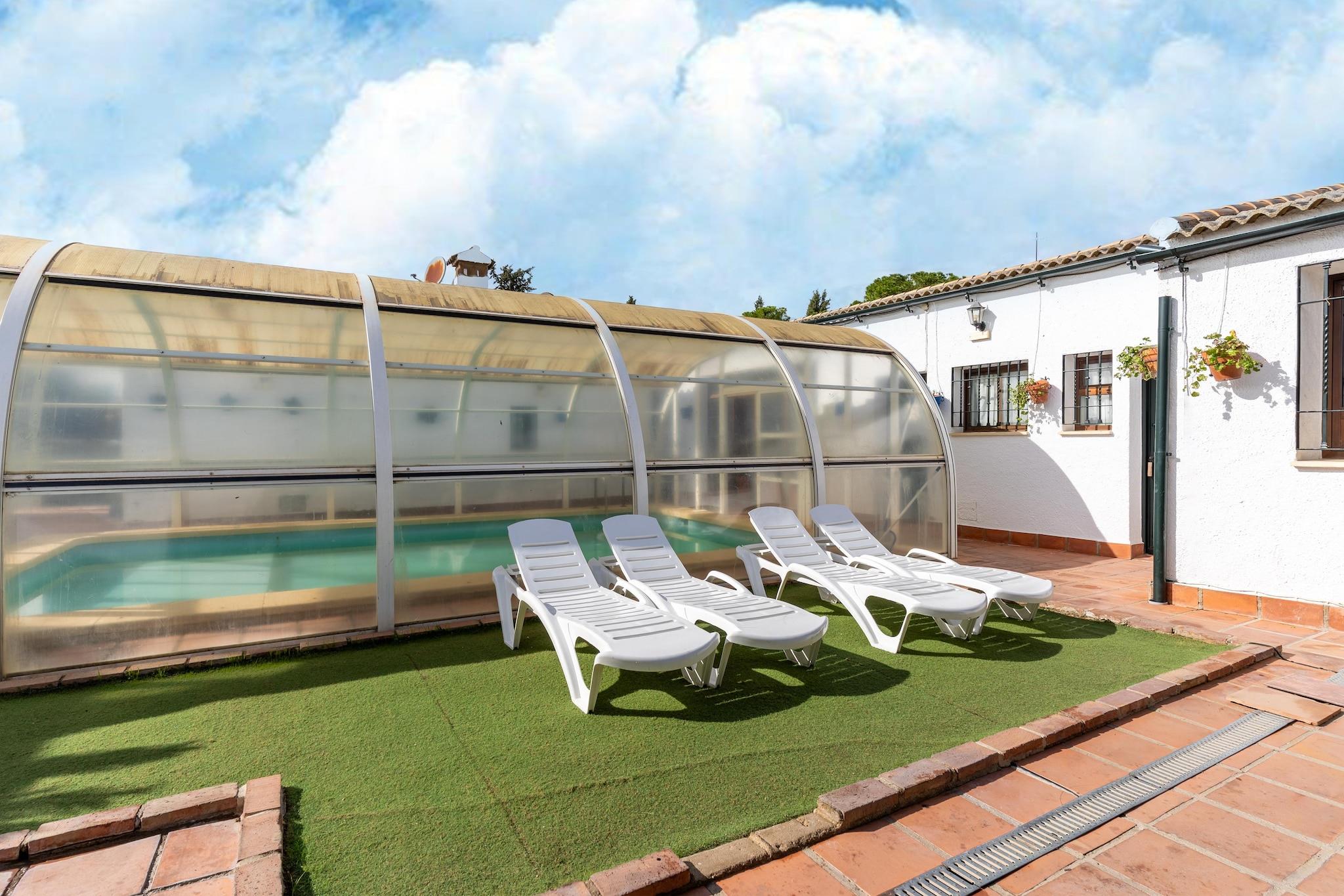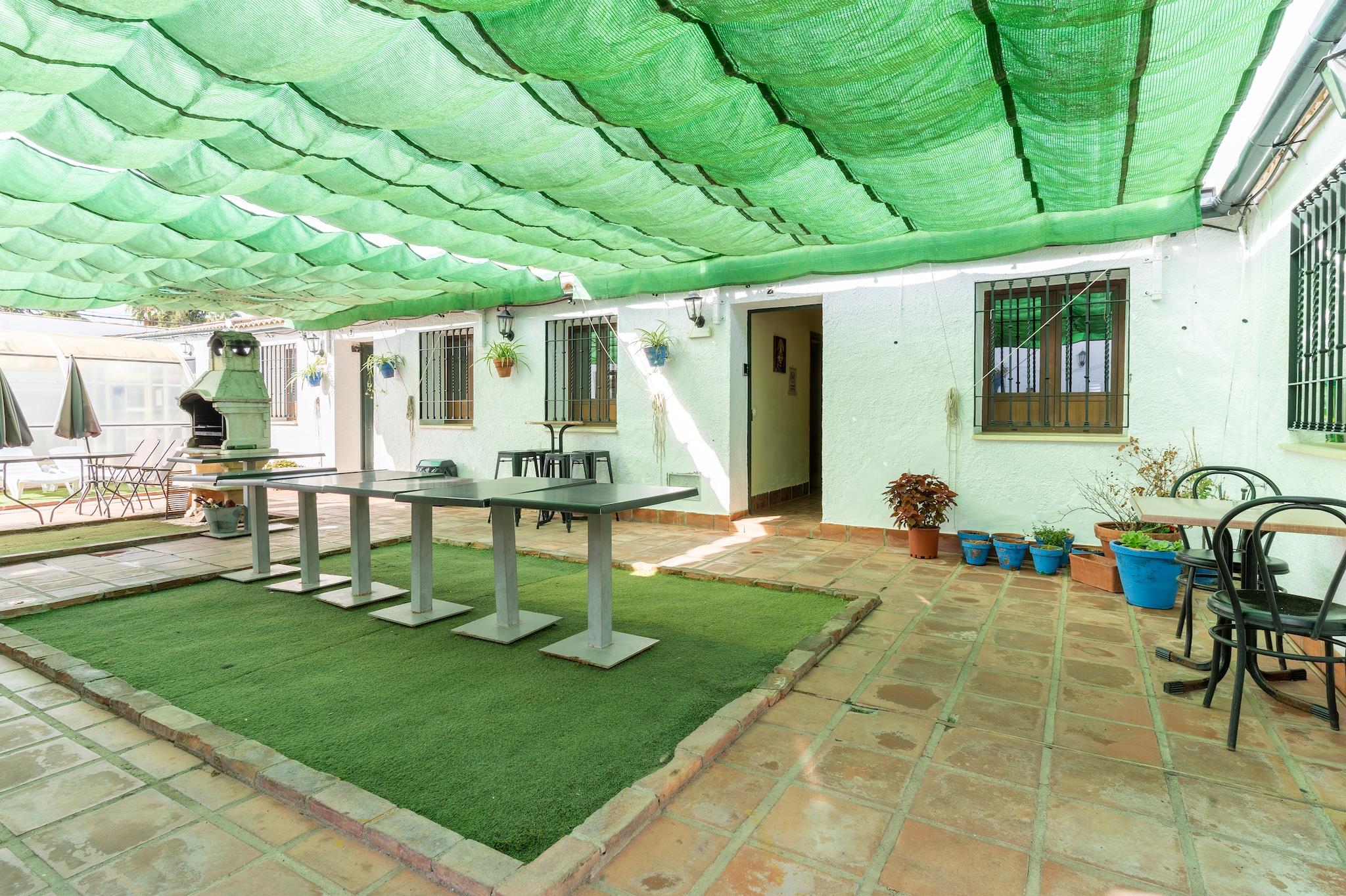 Dette rummelige og smukt restaurerede landlige sommerhus i Rivero de Posadas er det ideelle tilflugtssted for store grupper og familier, der ønsker at nyde skønheden og arven i det sydlige Spanien. Beliggende i hjertet af Guadalquivir-dalen tilbyder hytten mange hyggelige soveværelser, tilhørende badeværelser og rigelige fællesarealer, herunder en hyggelig stue/spisestue med pejs og bar, et fuldt udstyret køkken og en privat gårdhave. Ejendommen er bygget på stedet for en tidligere gård og har en stor terrasse, en overdækket privat swimmingpool og et grillområde - perfekt til at nyde varme andalusiske aftener. For ekstra bekvemmelighed inkluderer hjemmet aircondition, en vaskemaskine, en tørretumbler, cykler og endda en børneseng, hvilket gør det til et ægte hjem væk fra hjemmet. Kun 2 km fra den pulserende by Posadas kan gæsterne nyde lokale restauranter og shopping. For naturelskere ligger Sierrezuela Park kun 1,5 km væk og byder på vandrestier, legepladser og picnicområder. I nærheden er også den fantastiske Hornachuelos Naturpark, et paradis af skovklædte bakker, og Almodóvar del Río Slot, en smukt bevaret fæstning, der er blevet berømt for sin optræden i Game of Thrones. Denne placering er også perfekt beliggende for dagsture til nogle af Andalusiens mest ikoniske byer: Córdoba med dens berømte Mezquita, Sevillas livlige gader, kystcharmen ved Huelva og Cádiz, og endda de kulturelle perler i Málaga og Jaén – alt sammen inden for to og en halv times kørsel. Med sin perfekte blanding af ro, charme og tilgængelighed er dette feriehus den perfekte base for at opdage hjertet af Andalusien.